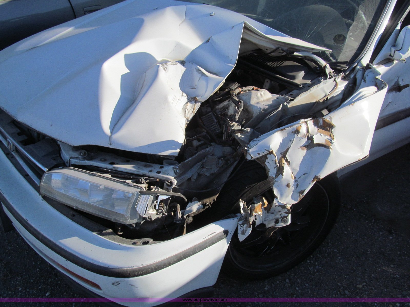 Purple Wave is selling a used Passenger Vehicle in Kansas. This item is a 1992 Honda Accord EX with the following: 206,761 miles on odometer, 2.2L L4 SOHC 16V gas engine, Automatic transmission, AC and heat, Tilt, Cruise, After-market AM/FM/CD, Power windows and locks, Cloth interior, Sunroof, 205/65R15 tires, Interior/exterior cosmetic damage, Cracked windshield, Body damage, Front end damage, Driver's door sprung, Window missing, Passenger door window down, Right front tire and wheel damage, Wrecked, Case# 14C516528