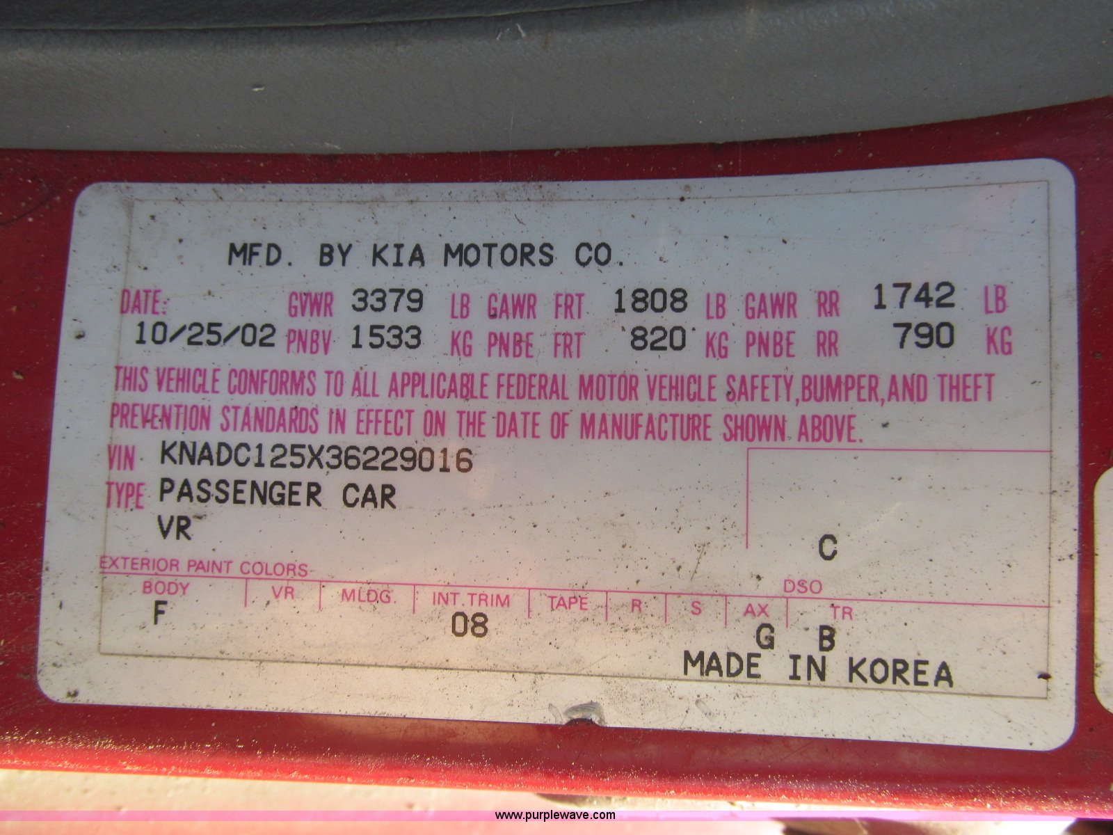 Purple Wave is selling a used Passenger Vehicle in Kansas. This item is a 2003 Kia Rio with the following: Unknown miles on odometer, 1.6L L4 DOHC 16V gas engine, Automatic transmission, AC and heat, Tilt, AM/FM/CD, Manual windows and locks, Cloth interior, 175/65R14 tires, Interior/exterior cosmetic damage, Cracked windshield, Hail damage, Scratches, Dents, Key hole tumbler removed from trunk lid, Case# 14C58809