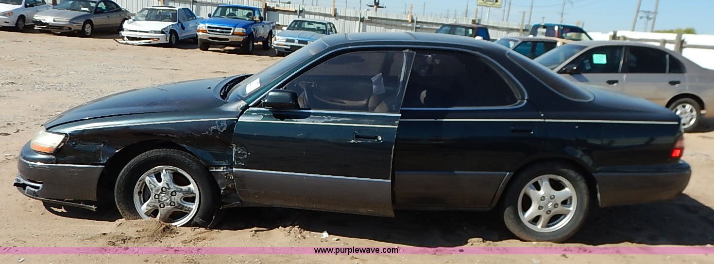 Purple Wave is selling a used Passenger Vehicle in Kansas. This item is a 1995 Lexus ES300 with the following: Unknown miles on odometer, 3.0L V6 DOHC 24V gas engine, Automatic transmission, AC and heat, Tilt, Cruise, AM/FM/cassette, Power windows, locks, mirrors, and seats, Ignition key, Moonroof, 205/65R15 tires, Flat, Interior/exterior cosmetic damage, Doors locked, Driver side door partially open, Dents, Scratches, Paint peeling, Front tire blown, Major driver side damage, Unknown operating condition, Case# 14C056259