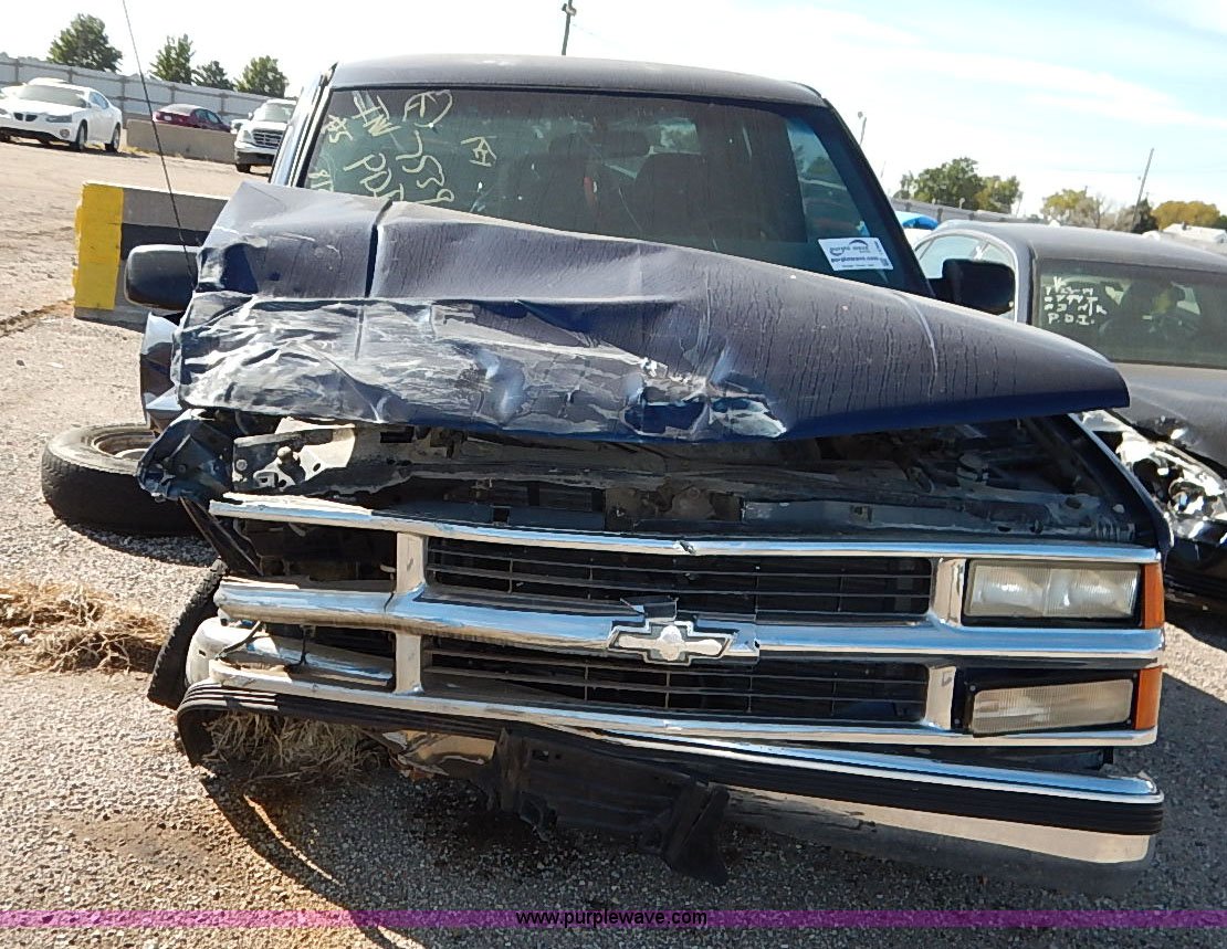 Purple Wave is selling a used 1/2 Ton Pickup or Van in Kansas. This item is a 1996 Chevrolet Silverado 1500 Ext. Cab pickup truck with the following: Unknown miles on odometer, 5.7L V8 OHV 16V gas engine, Long bed, Ball hitch, Receiver hitch, Trailer wiring, 235/75R15 tires, Interior/exterior cosmetic damage, Cracked windshield, Contents included, Major front end damage, Dents, Scratches, Doors locked, Unknown operating condition, Case# 14C56481