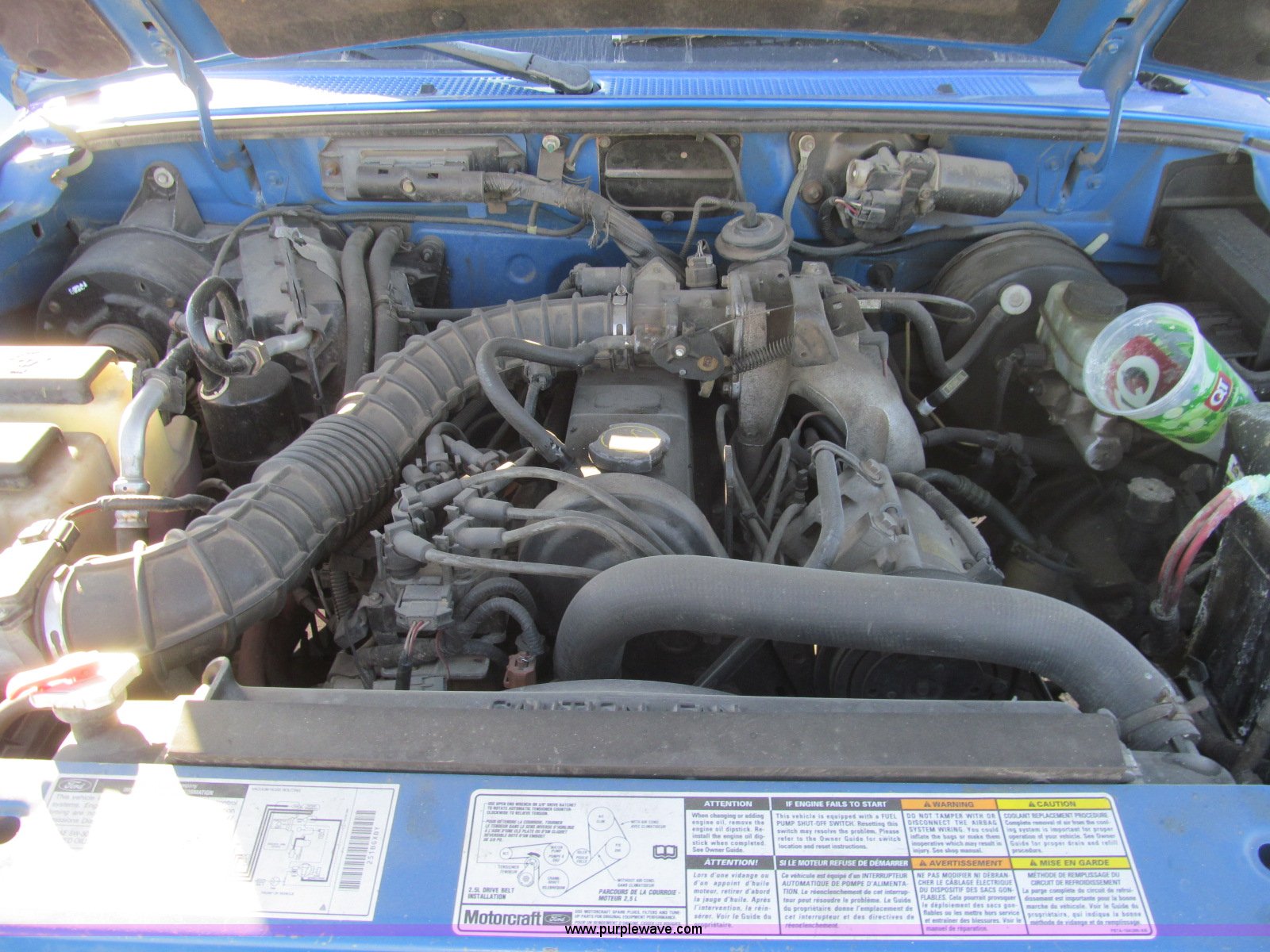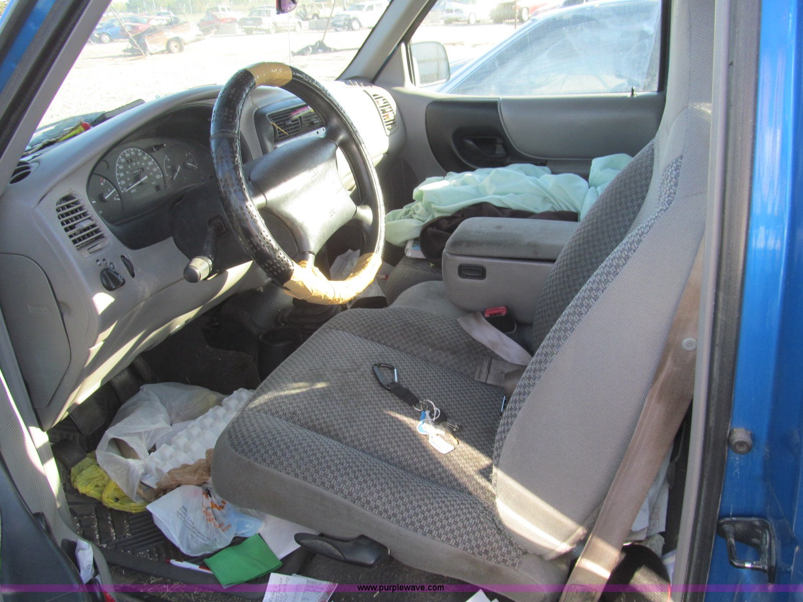 Purple Wave is selling a used Compact Pickup or Van in Kansas. This item is a 1999 Ford Ranger XLT pickup truck with the following: 210,911 miles on odometer, 2.5L L4 SOHC 8V gas engine, Four speed manual transmission, AC and heat, AM/FM/CD/cassette, Manual windows and locks, Cloth interior, Keys, P215/75R15 tires, Interior/exterior cosmetic damage, Contents included, Case# 14C59483