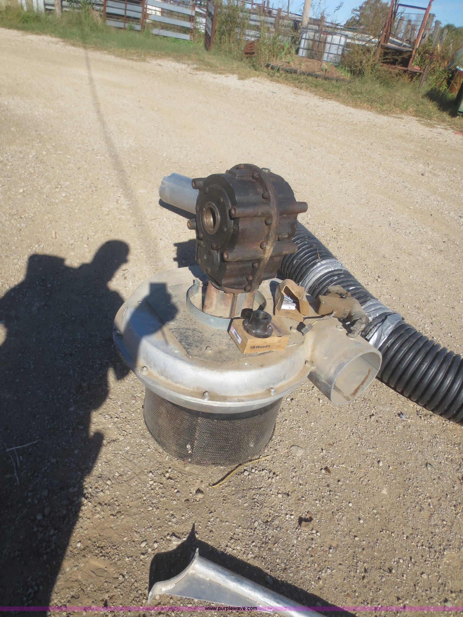 Crary CWS air reel. 30'W, 12" spacing, Aluminum construction, Model 2234 gear box, Blower and tubing included, Item will be removed from header prior to auction. Sammons Farms. 14375 York. Walnut, KS 66780