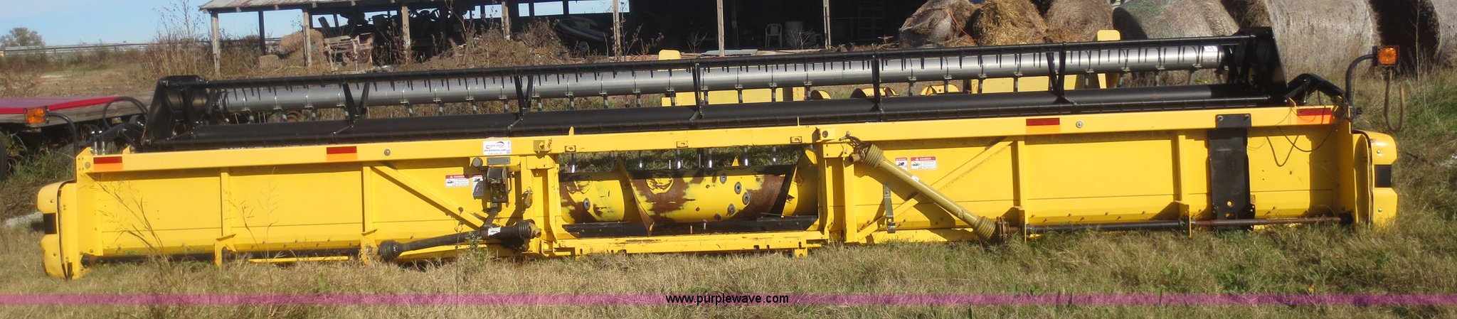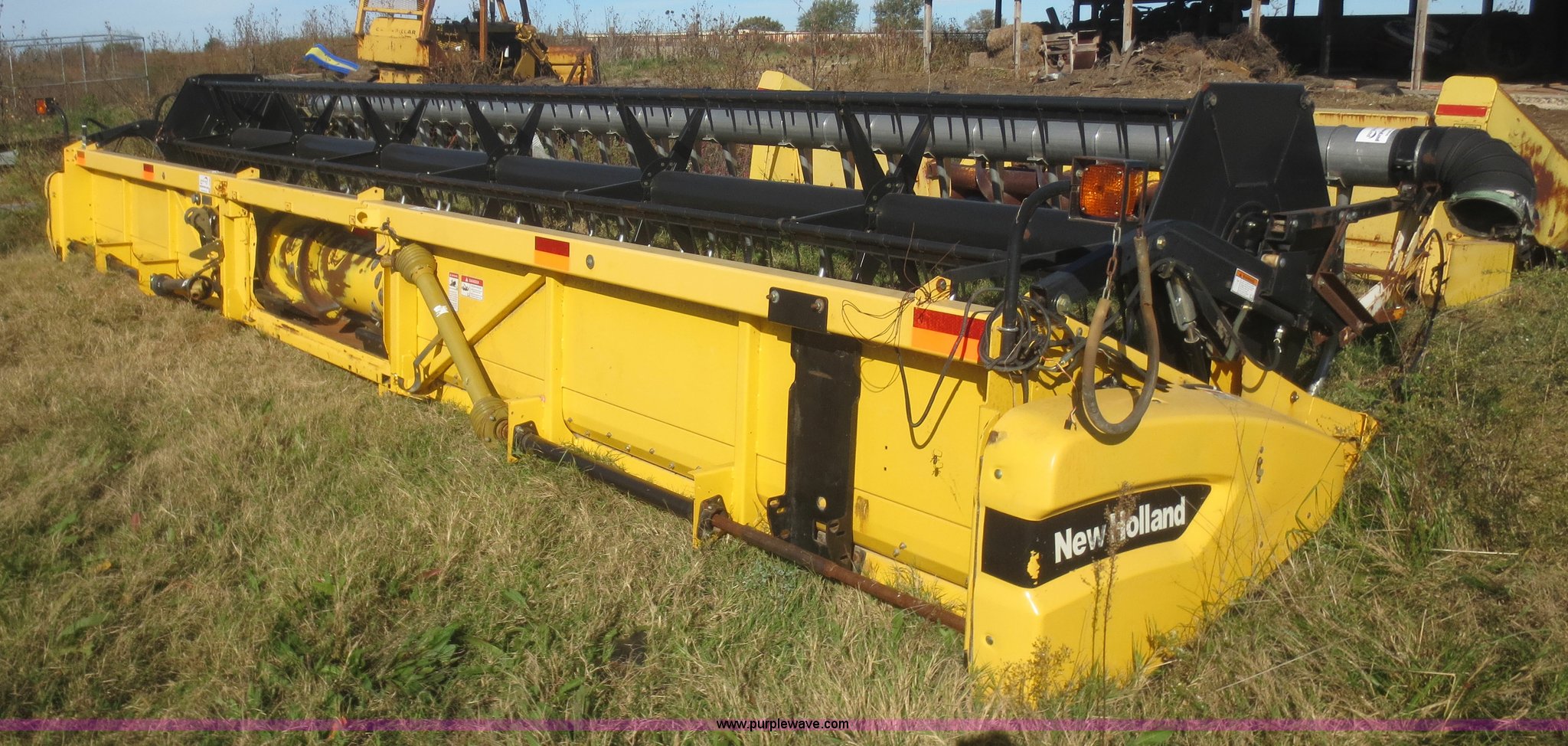 Purple Wave is selling a used Platform or Stripper Head in Kansas. This item is a New Holland 74C flex head with the following: 30'W, 3" sections, Plastic fingers on pipe reel, Full finger auger, Hydraulic quick connect, Set up for CR series, Crary CWS air reel not included, Serial PNL017400