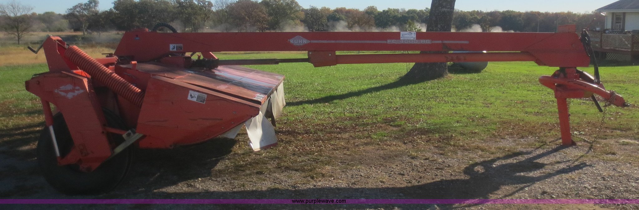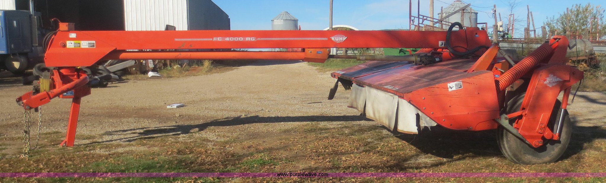 Purple Wave is selling a used Windrower Pull Type in Kansas. This item is a Kuhn FC4000RG mower conditioner with the following: Three point, 13'W, Hydraulic lift, 1000 PTO, 11.00-16.5L tires, Serial B0016
