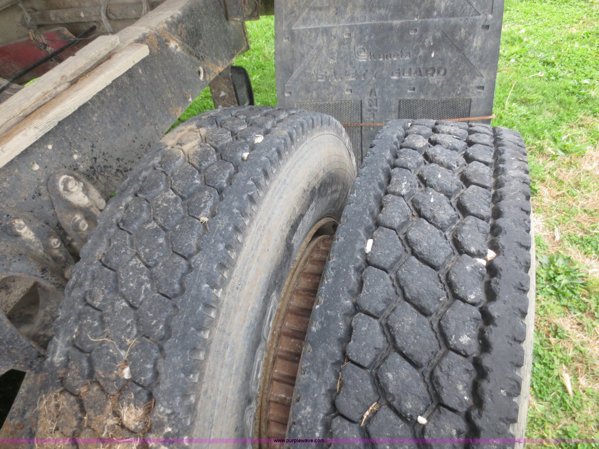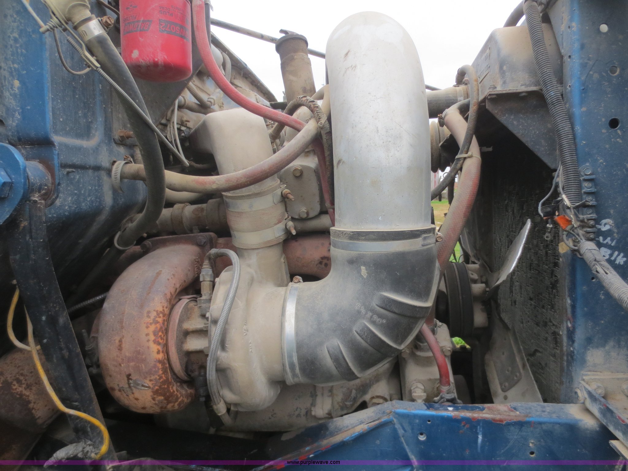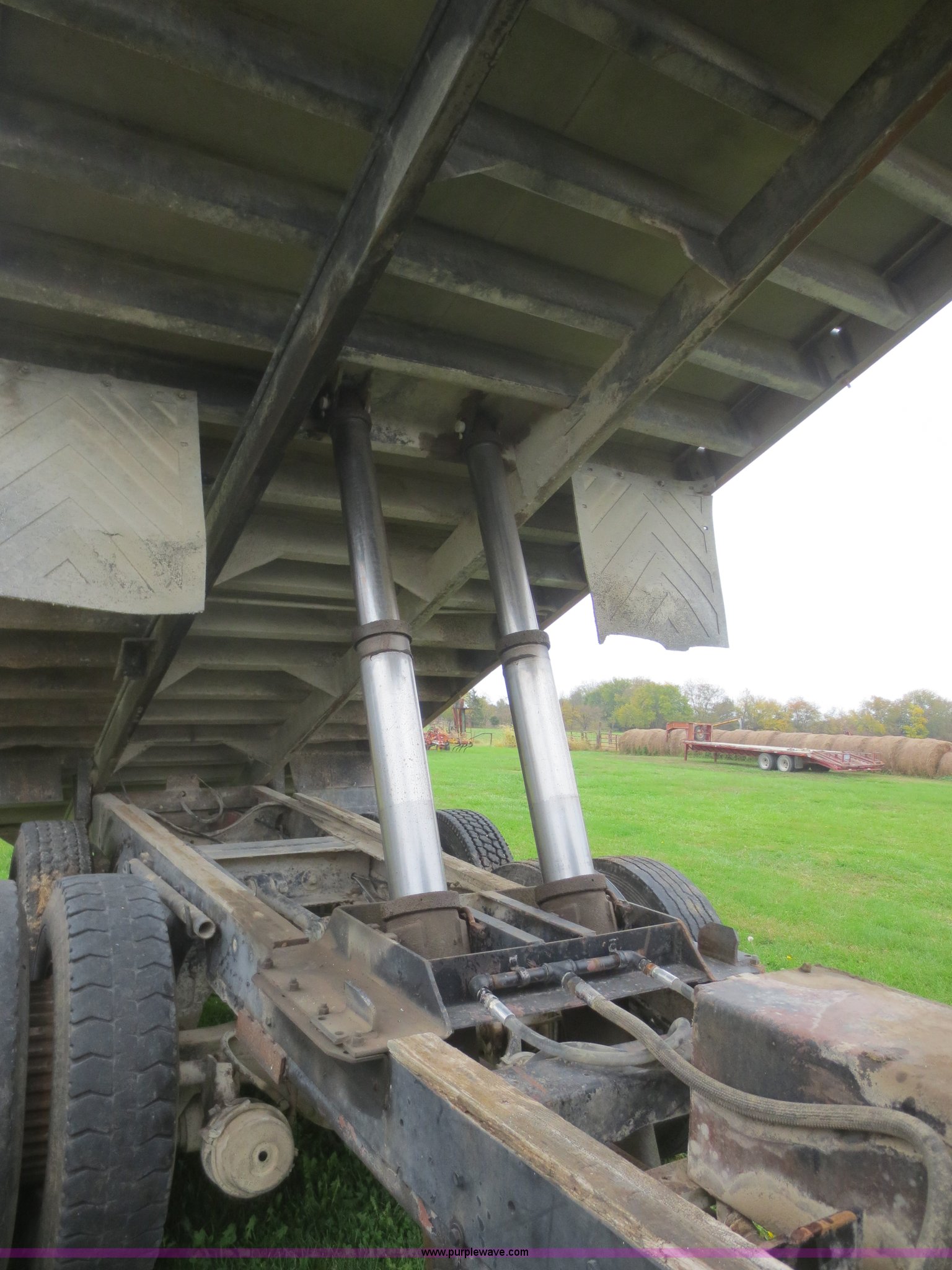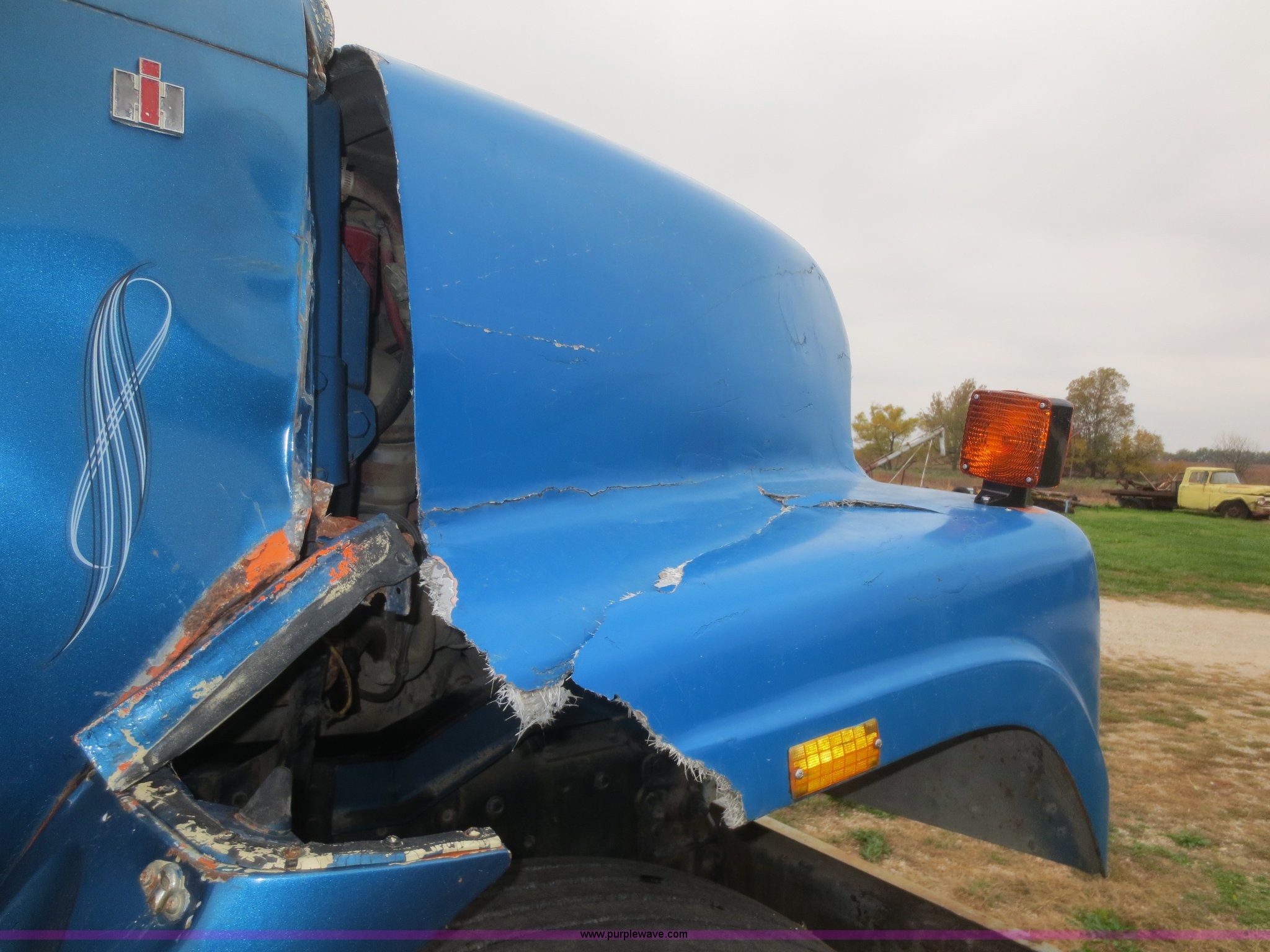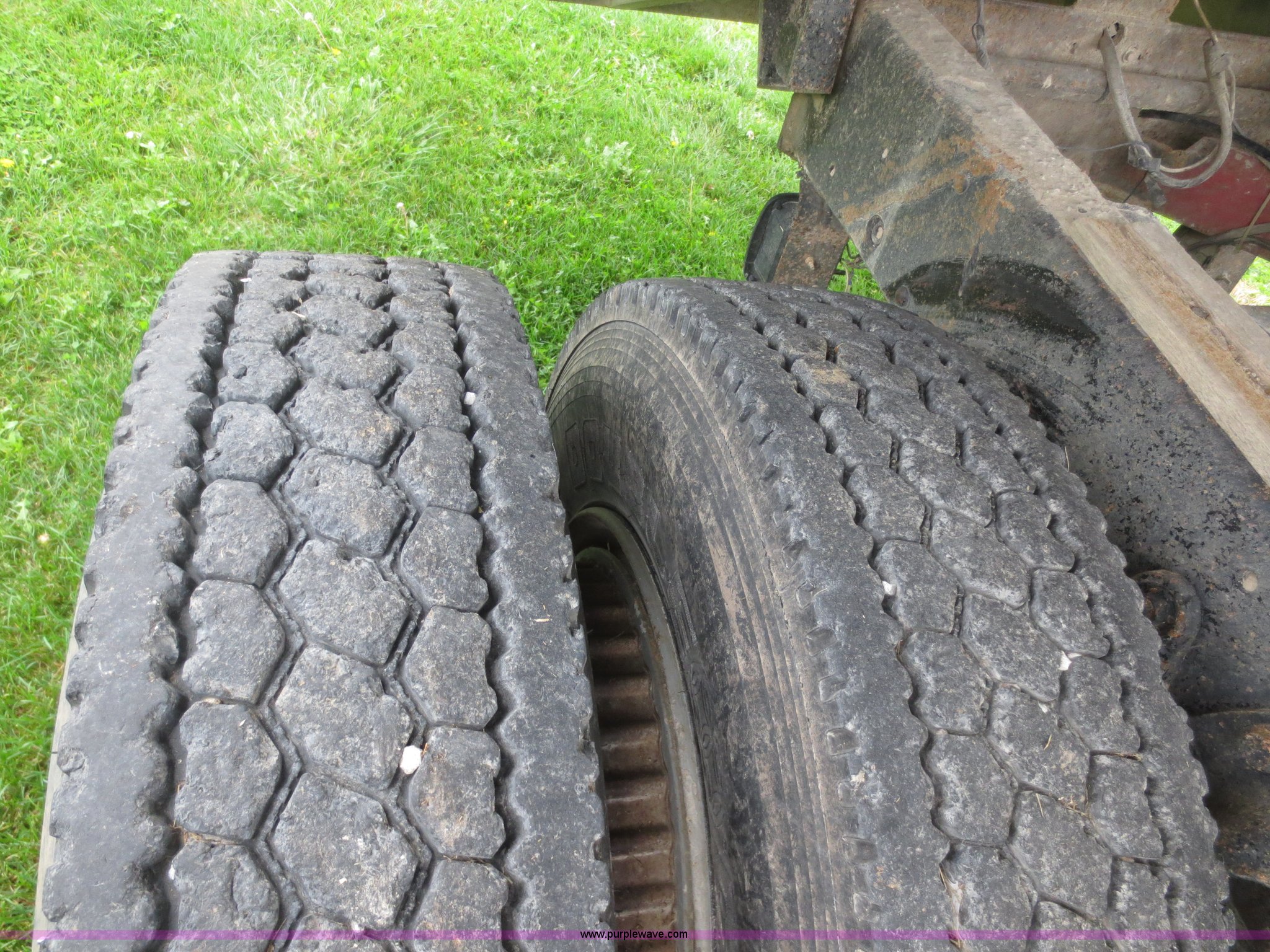 Purple Wave is selling a used Grain Truck in Kansas. This item is a 1975 International F2070A grain truck with the following: 63,297 miles on odometer, Cummins 855 C.I.D. six cylinder turbo diesel engine, 290 HP, 13 speed manual transmission, AC and heat, AC needs charged, 20' aluminum bed, Twin lift cylinders, Manual end gate, Chelsea PTO, Hendrickson spring suspension, 11R22.5 tires, 48,500 lbs, Cracked windshield, Truck was laid on its side, Frame bent/twisted