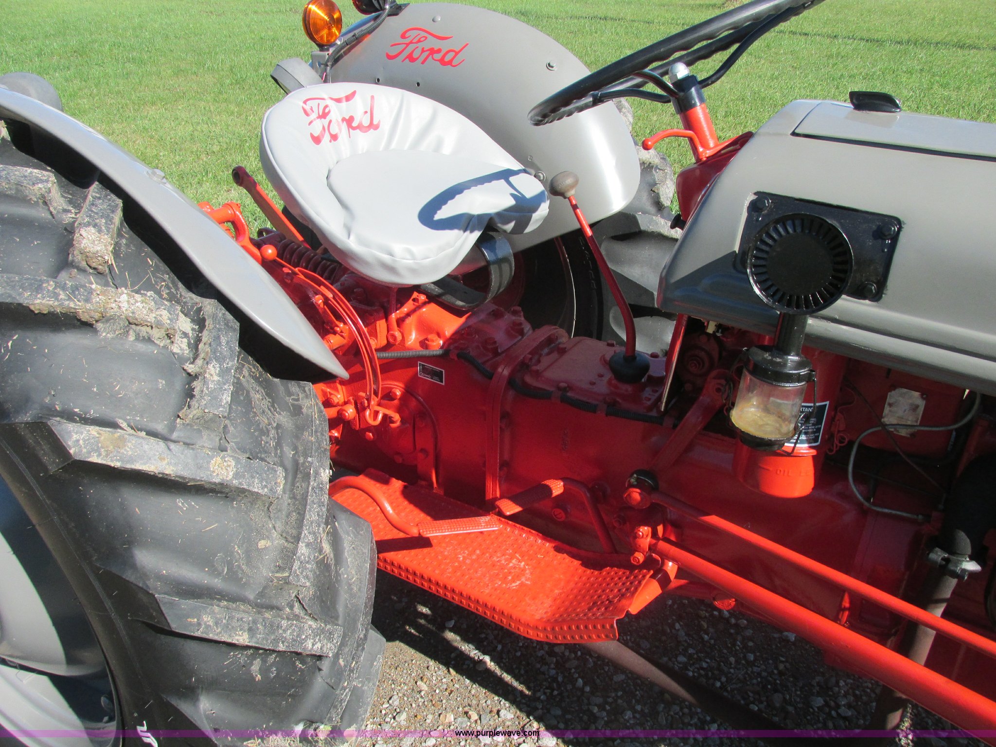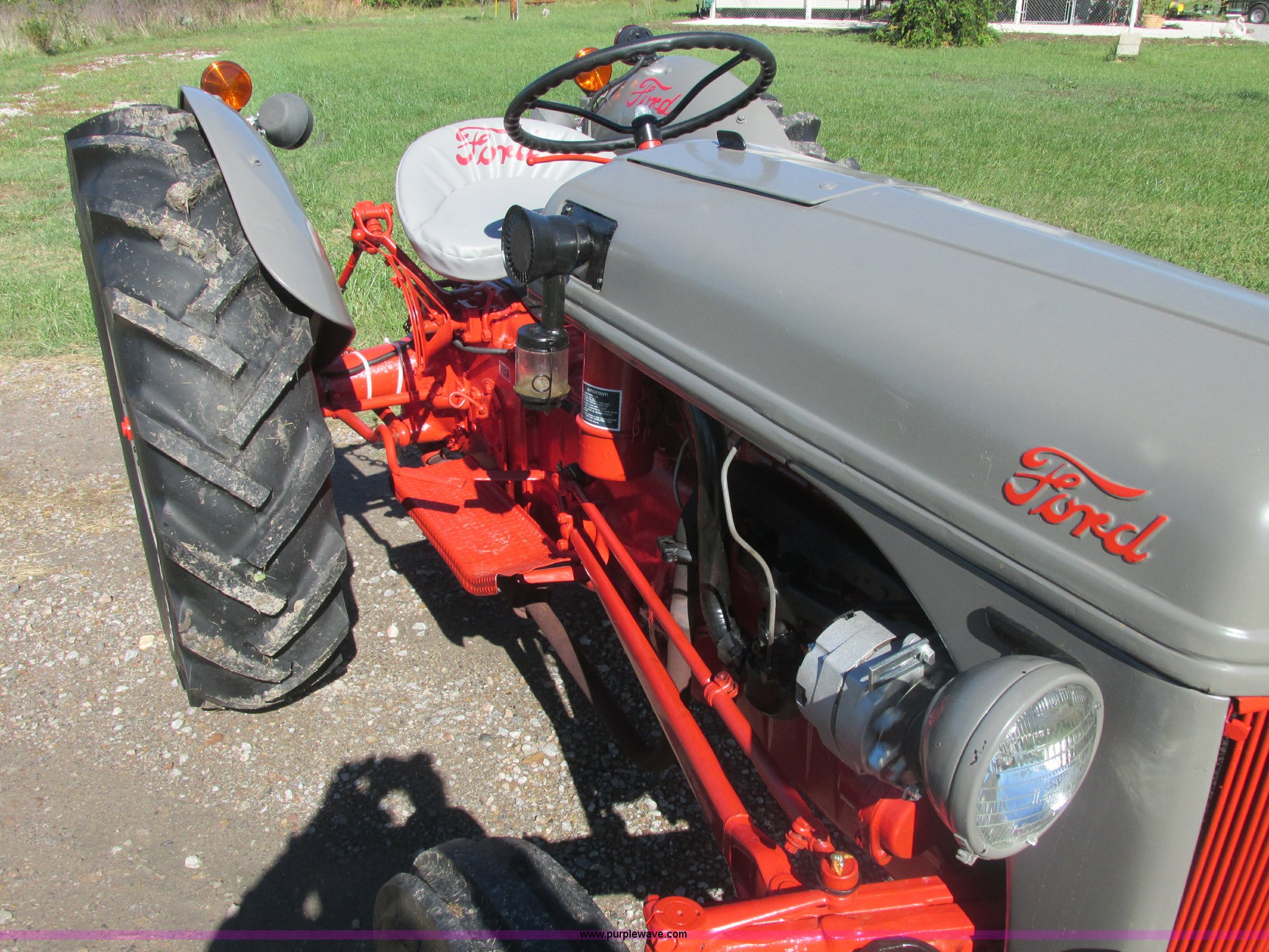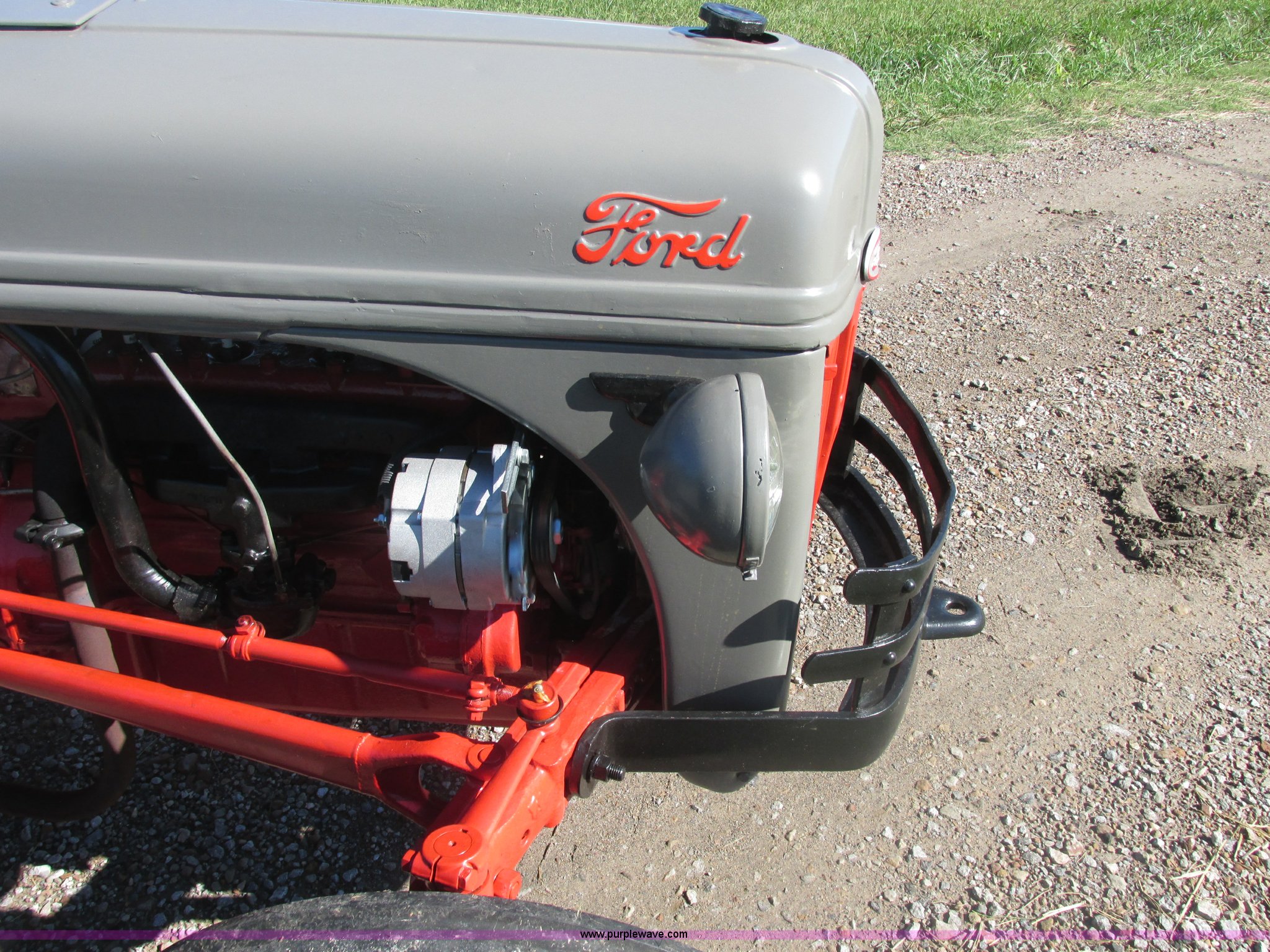 Purple Wave is selling a used Tractor in Oklahoma. This item is a 1948 Ford 8N tractor with the following: Ford four cylinder gas engine, 25 HP, Engine has been rebuilt, Replaced pistons, rings, cylinder walls, oil pump, wrist pins, and 12V alternator,, Manual transmission, 4F-1R gears, Three point, Draw bar bracket, 540 PTO, Brush guard, Front tow bracket, 6.00-16 front tires, 12.4-28 rear tires, Recently replaced front tires and one rear tire, Rebuilt carburetor, Recently replaced clutch, pressure plate, and throwout bearing, Recently replaced input shaft bearing and seal, Recently repainted and replaced decals, OEM hood emblem R0645, Recently replaced rear flashers, headlights, taillights, and work lights, Recently replaced gauges, wiring, switches, and steering wheel, Recently replaced padded seat cover, Recently replaced grease fittings, Recently replaced oil filter, oil, and hydraulic oil, Recently replaced battery, Serial 8N49108