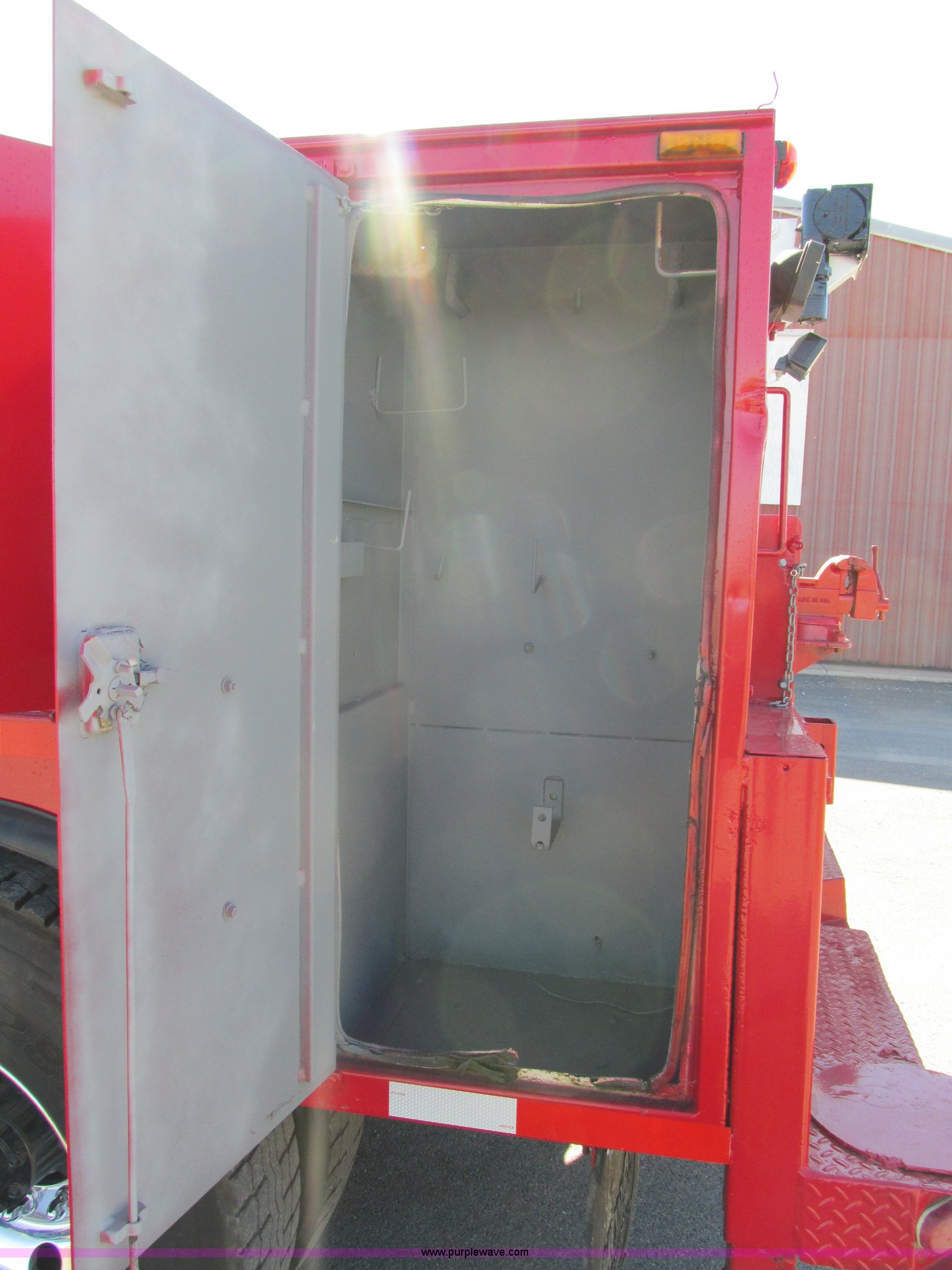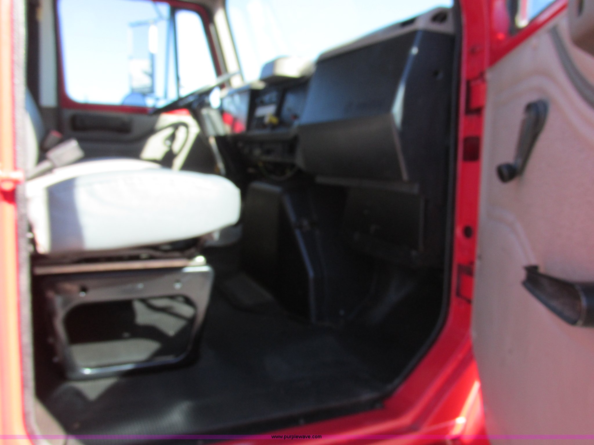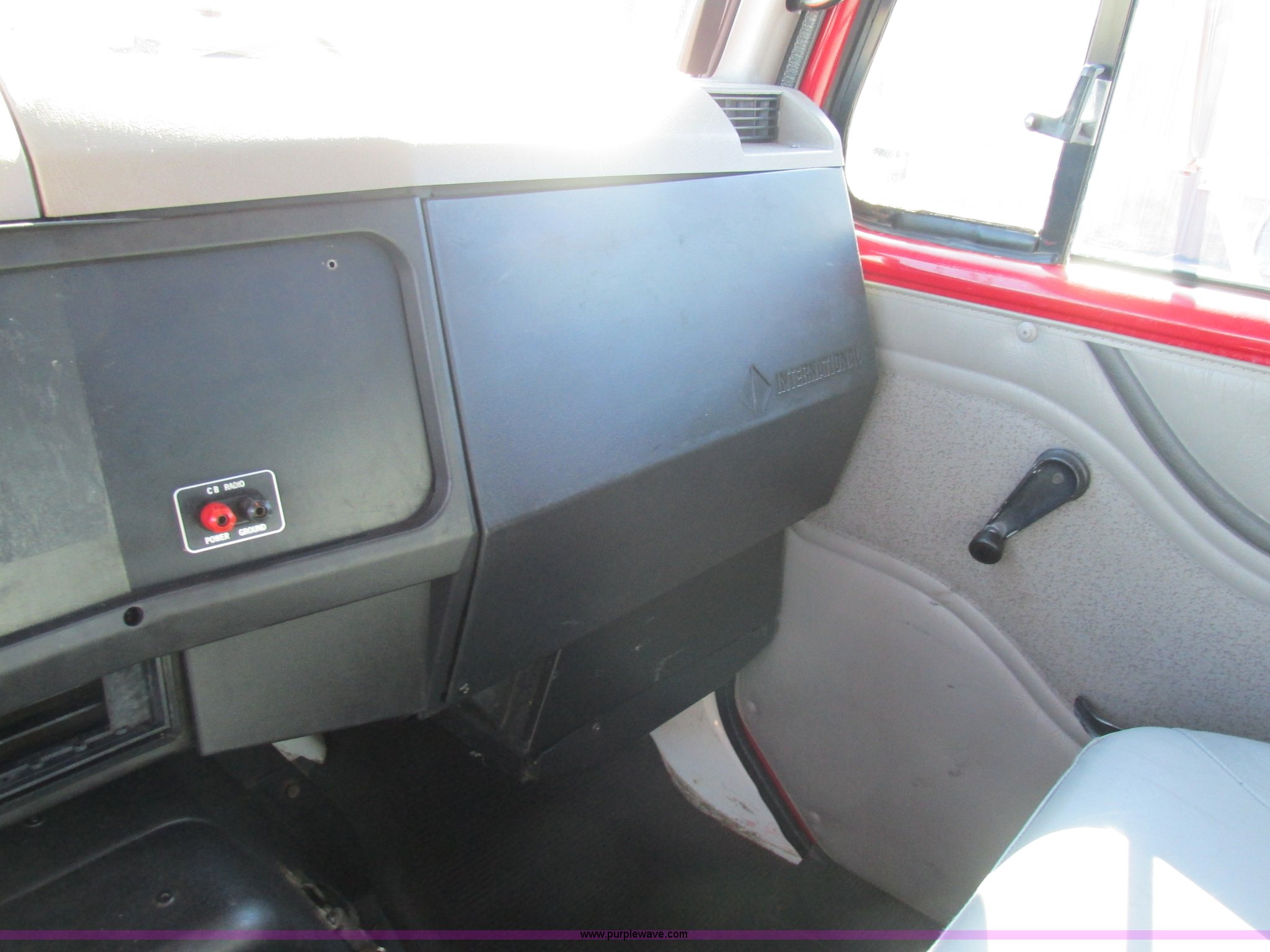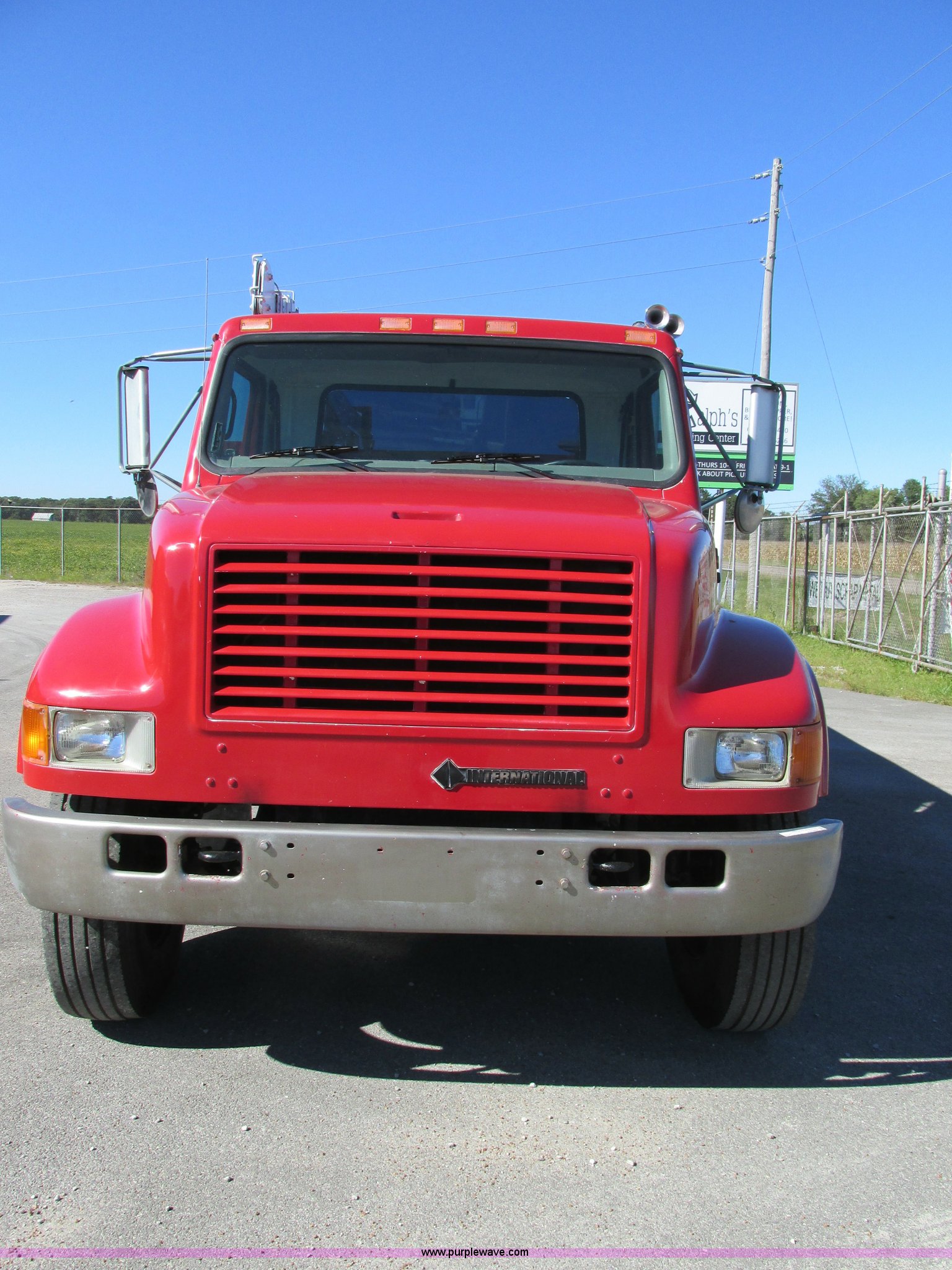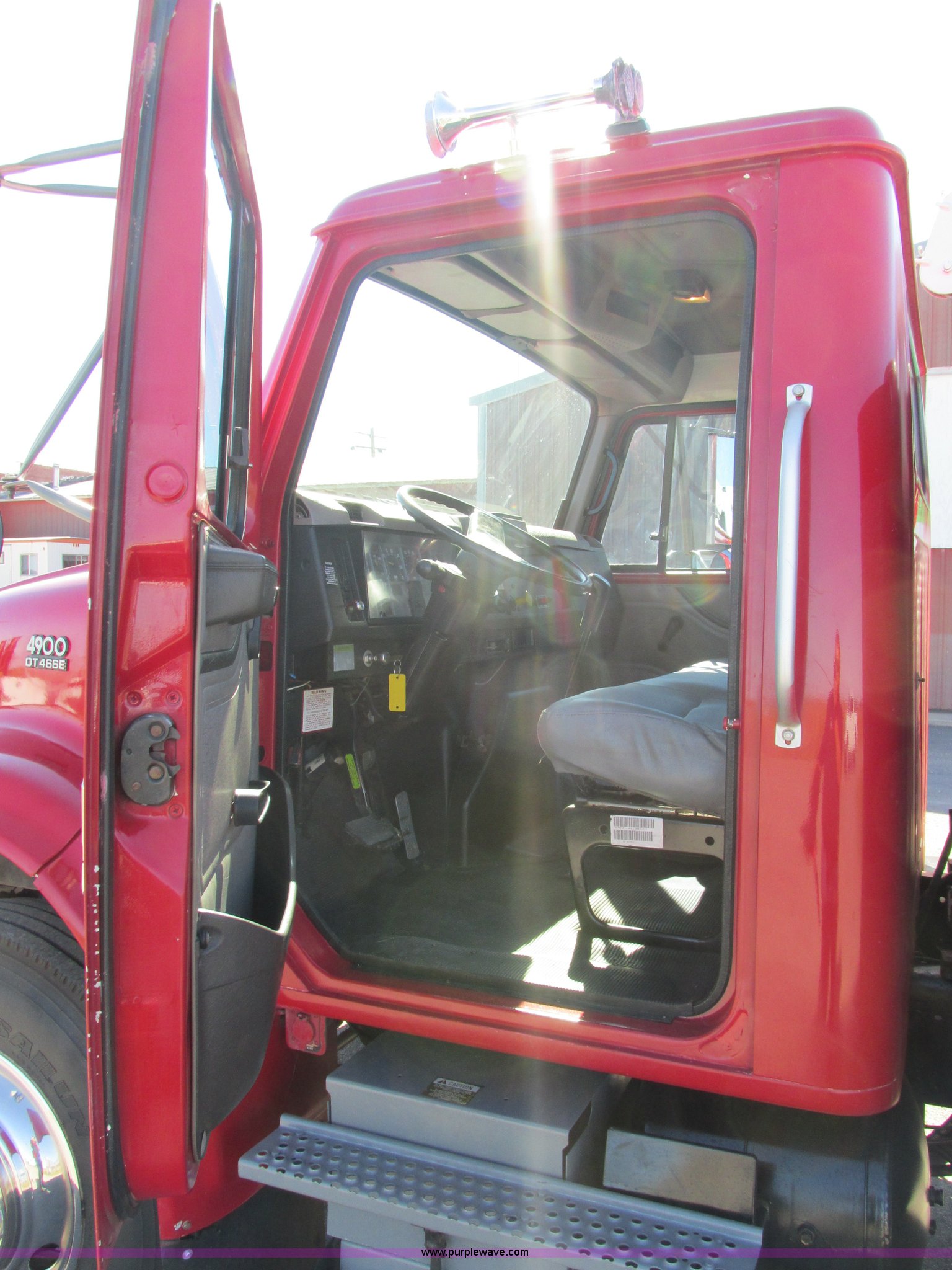 Purple Wave is selling a used Service Truck in Illinois. This item is a 2001 International 4900 service truck with crane with the following: 116,723 miles on odometer, International DT466E 7.6L L6 diesel engine, Six speed manual transmission, AC and heat, Cruise, AM/FM, Vinyl interior, 11'L x 90"W utility bed, Rear step bumper, Water cooler base, Rear vise, Exterior oxygen/acetylene tank brackets, Auxiliary 4' x 18" x 16" aluminum toolbox, 48"H boxes, Maintainer 3216 crane, Tethered remote, Dual hydraulic outriggers, Block heater, Front stainless steel simulator, Rear outer aluminum wheels, 188" wheelbase, 11R22.5 tires, GVWR 25,999 lbs