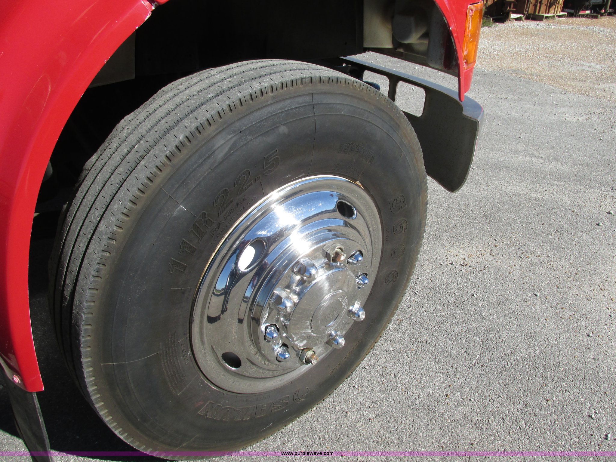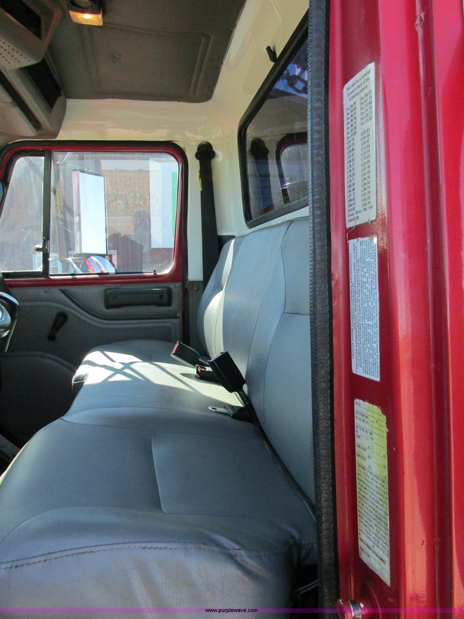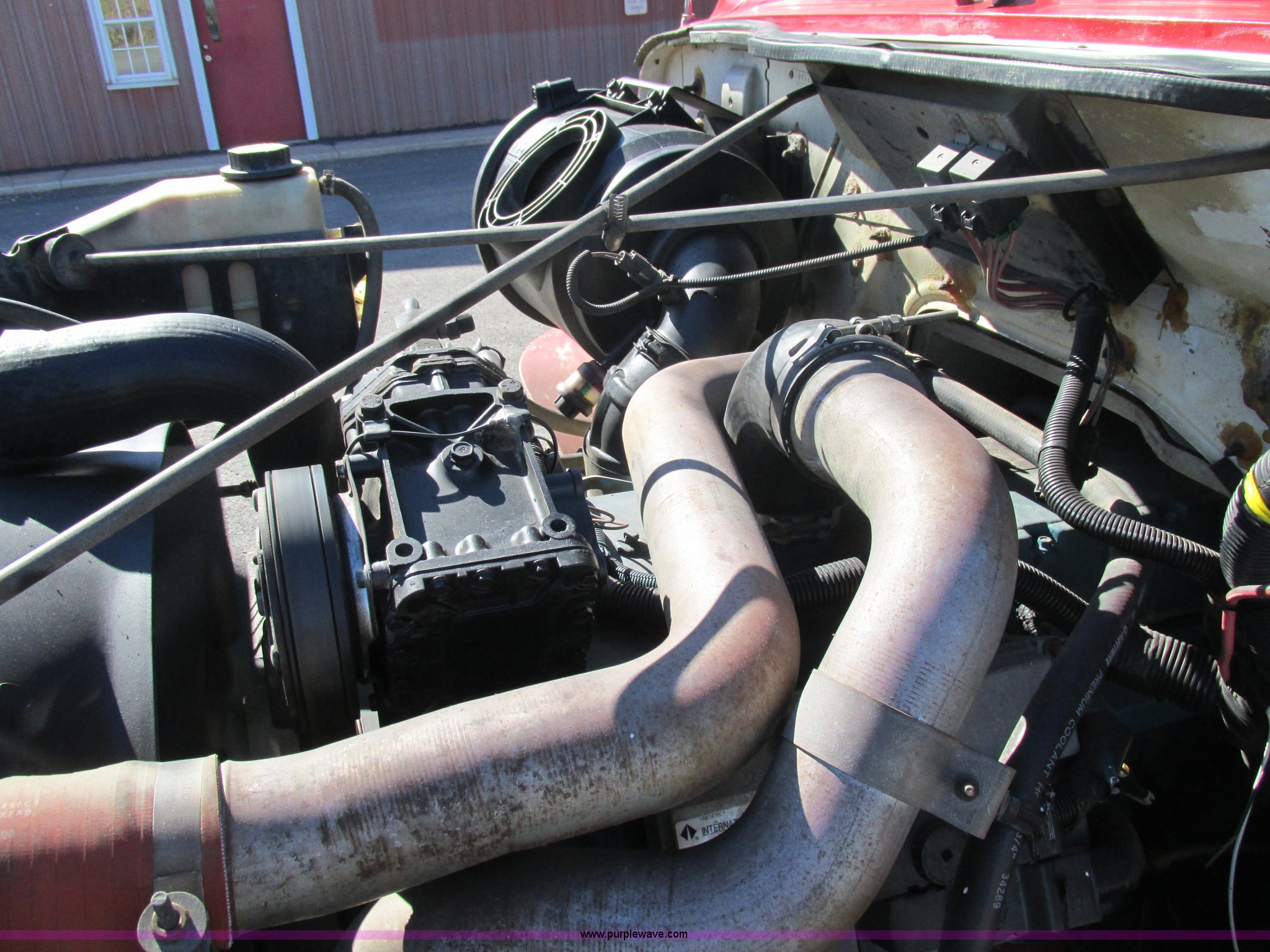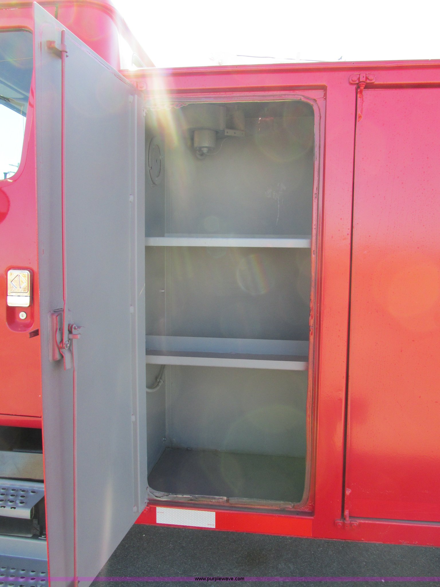 Purple Wave is selling a used Service Truck in Illinois. This item is a 2001 International 4900 service truck with crane with the following: 116,723 miles on odometer, International DT466E 7.6L L6 diesel engine, Six speed manual transmission, AC and heat, Cruise, AM/FM, Vinyl interior, 11'L x 90"W utility bed, Rear step bumper, Water cooler base, Rear vise, Exterior oxygen/acetylene tank brackets, Auxiliary 4' x 18" x 16" aluminum toolbox, 48"H boxes, Maintainer 3216 crane, Tethered remote, Dual hydraulic outriggers, Block heater, Front stainless steel simulator, Rear outer aluminum wheels, 188" wheelbase, 11R22.5 tires, GVWR 25,999 lbs
