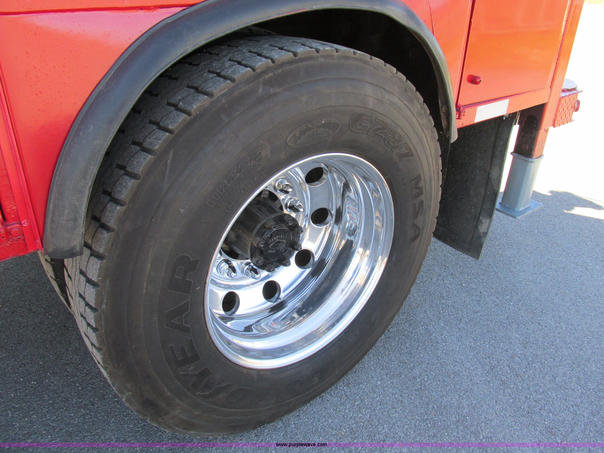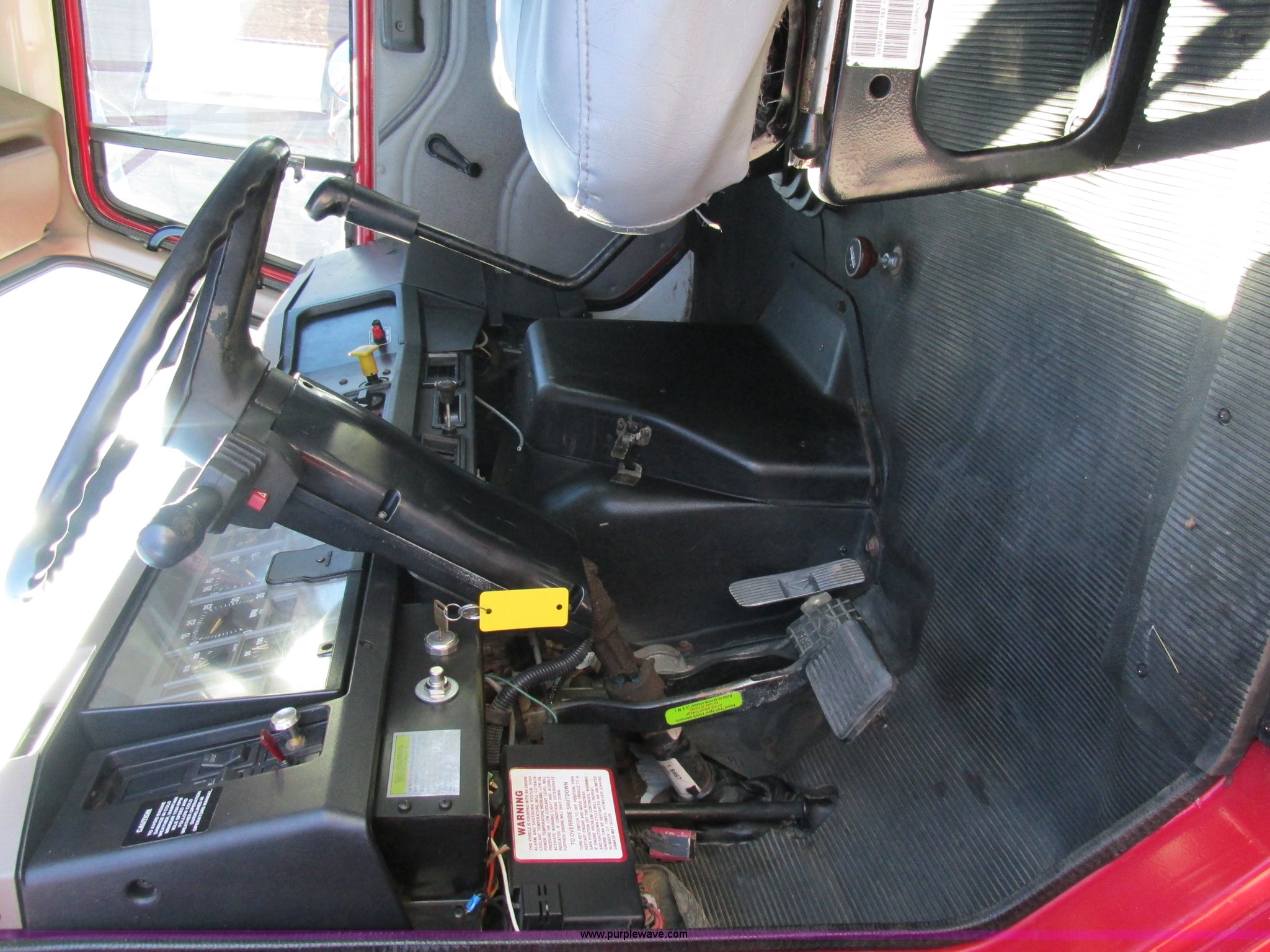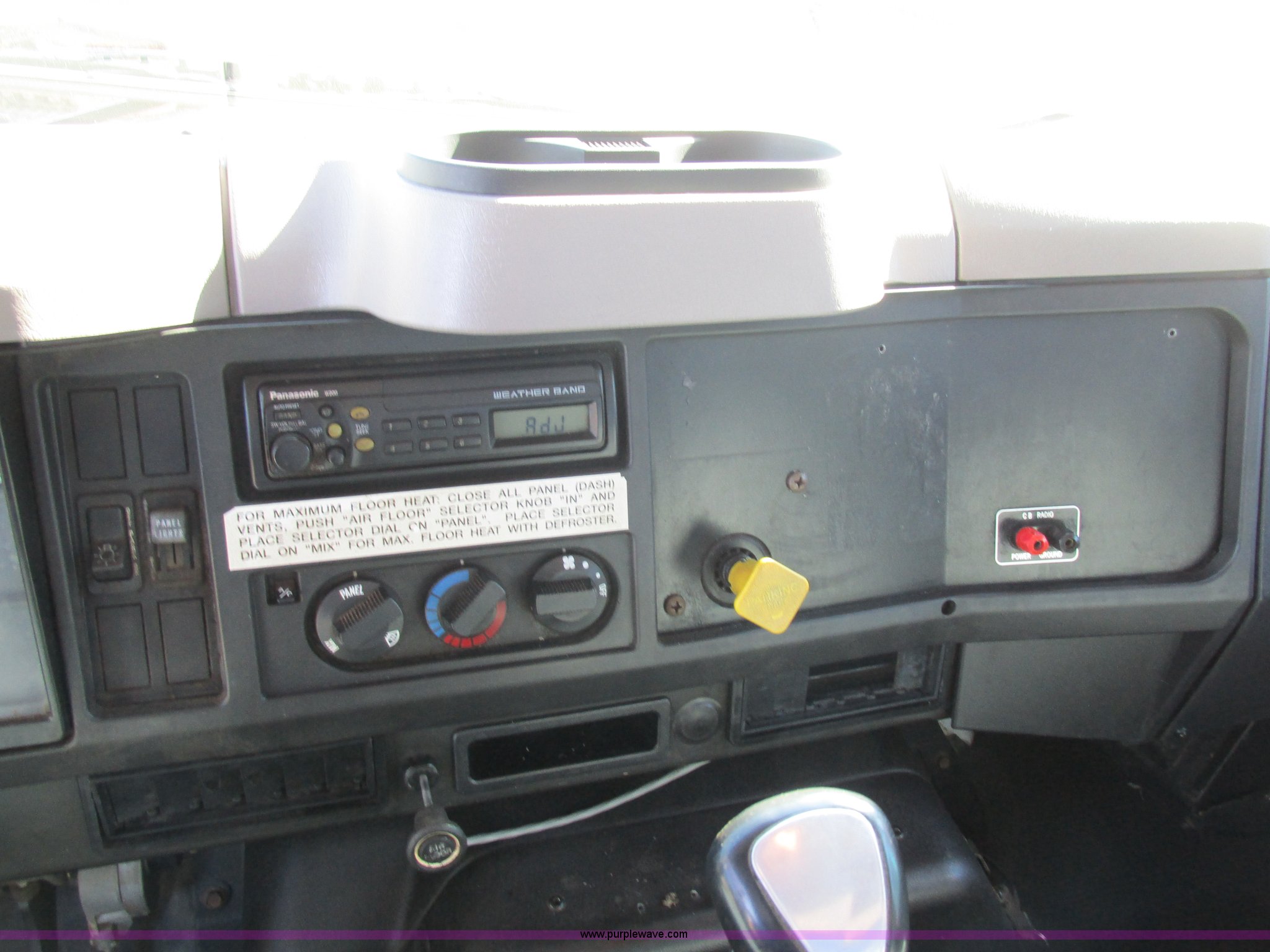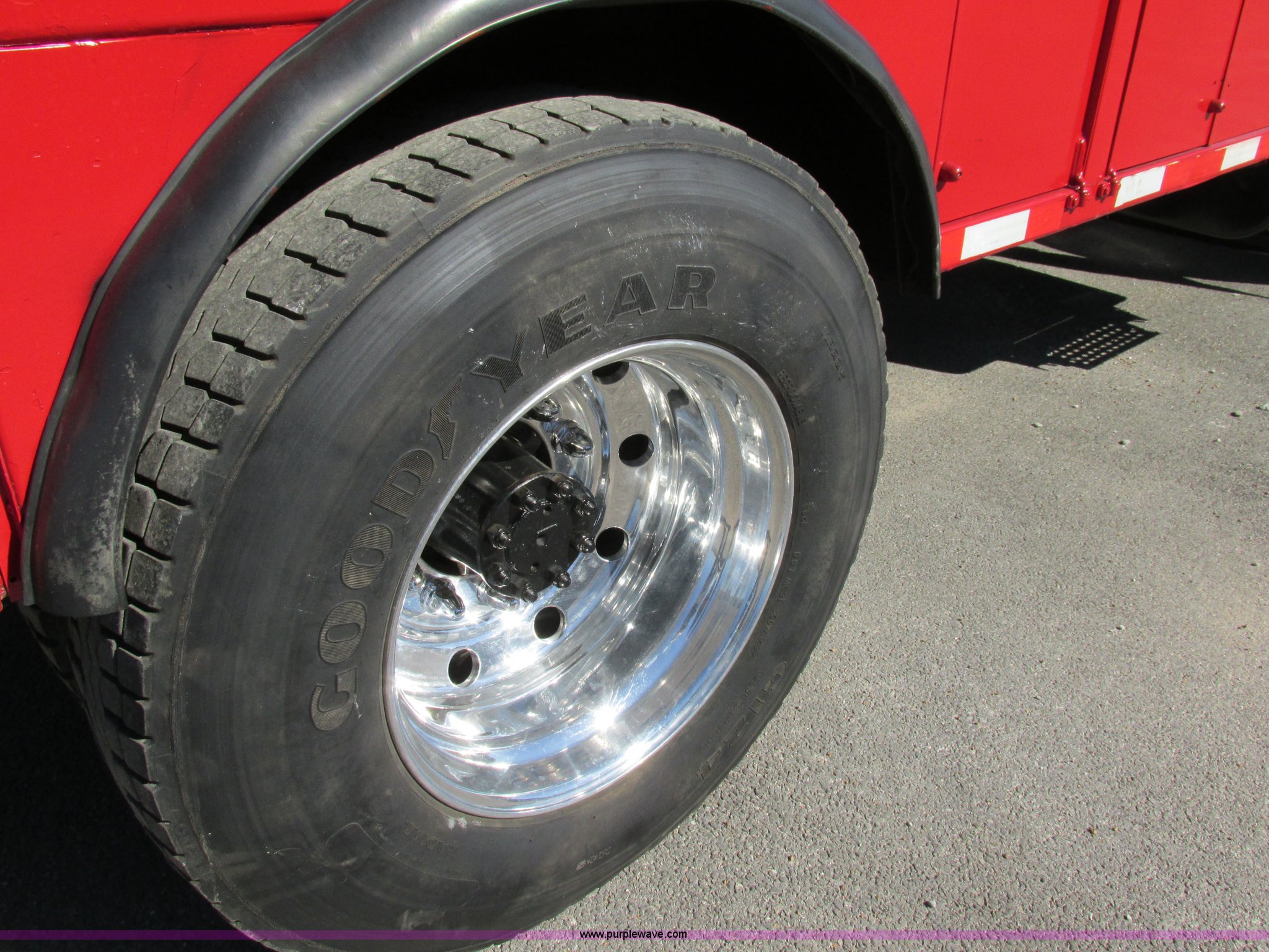 Purple Wave is selling a used Service Truck in Illinois. This item is a 2001 International 4900 service truck with crane with the following: 116,723 miles on odometer, International DT466E 7.6L L6 diesel engine, Six speed manual transmission, AC and heat, Cruise, AM/FM, Vinyl interior, 11'L x 90"W utility bed, Rear step bumper, Water cooler base, Rear vise, Exterior oxygen/acetylene tank brackets, Auxiliary 4' x 18" x 16" aluminum toolbox, 48"H boxes, Maintainer 3216 crane, Tethered remote, Dual hydraulic outriggers, Block heater, Front stainless steel simulator, Rear outer aluminum wheels, 188" wheelbase, 11R22.5 tires, GVWR 25,999 lbs