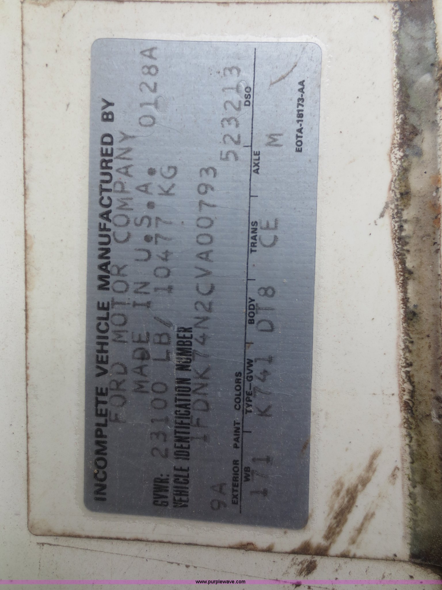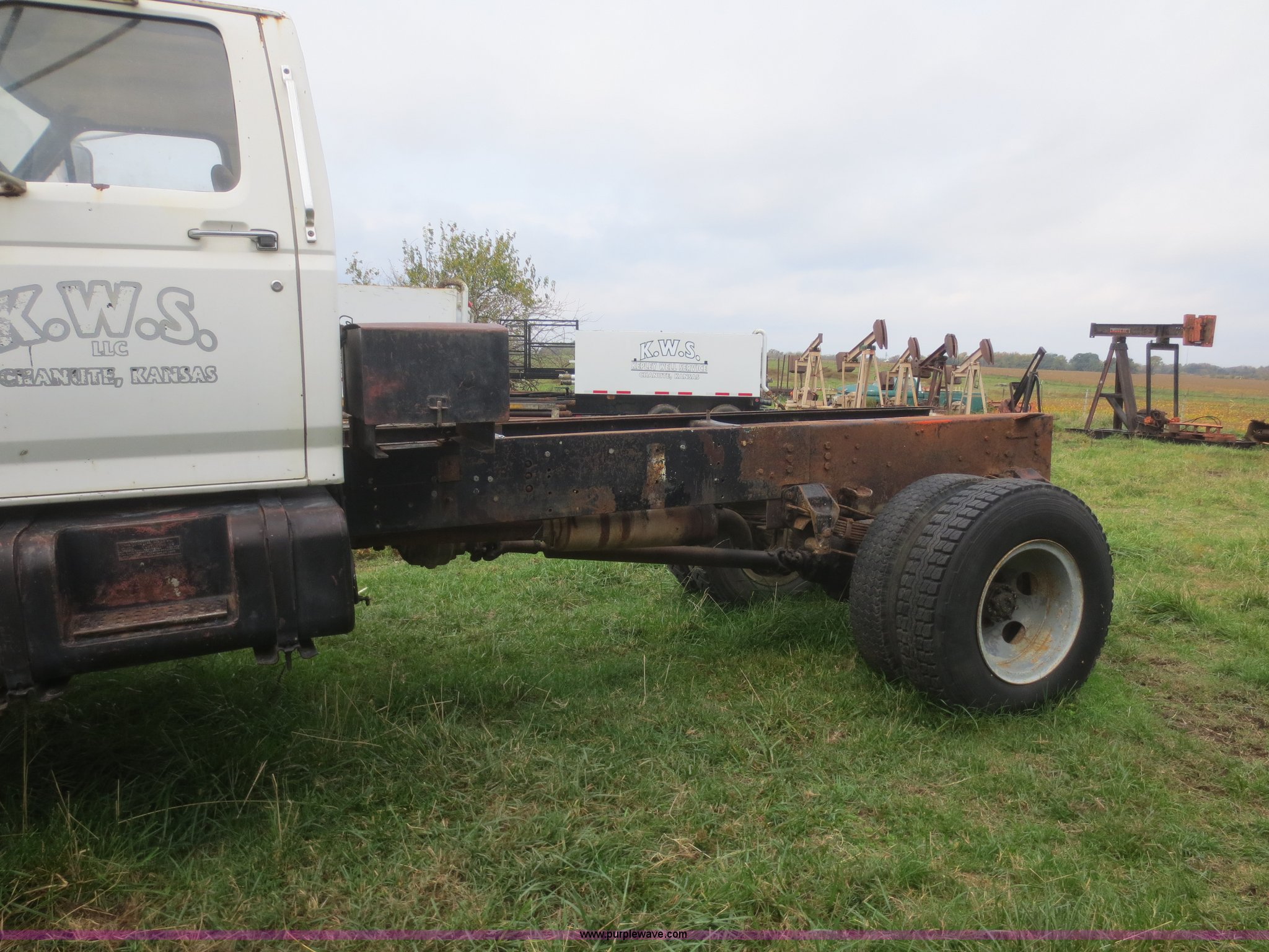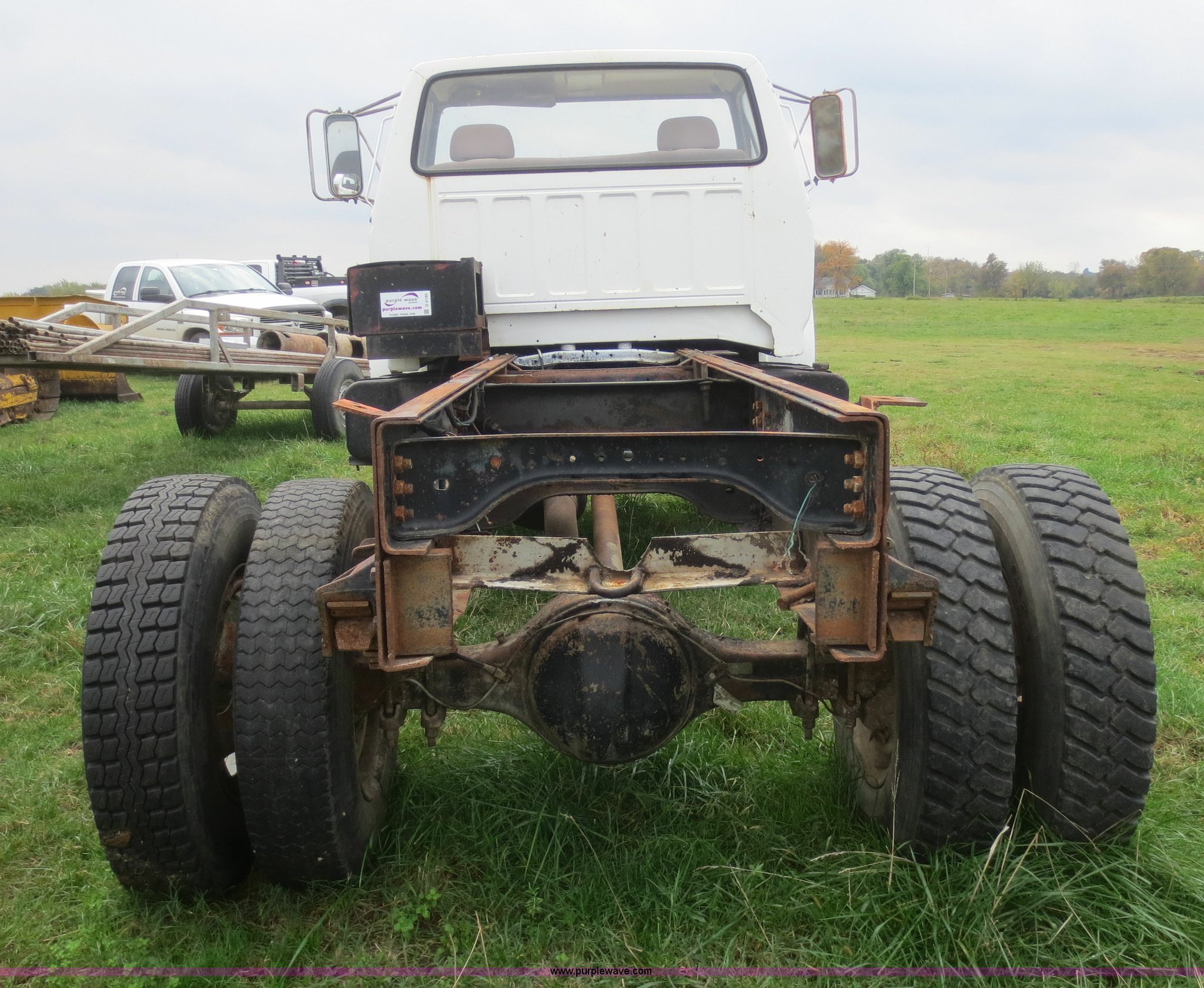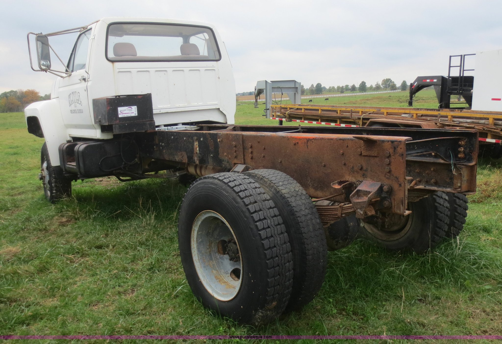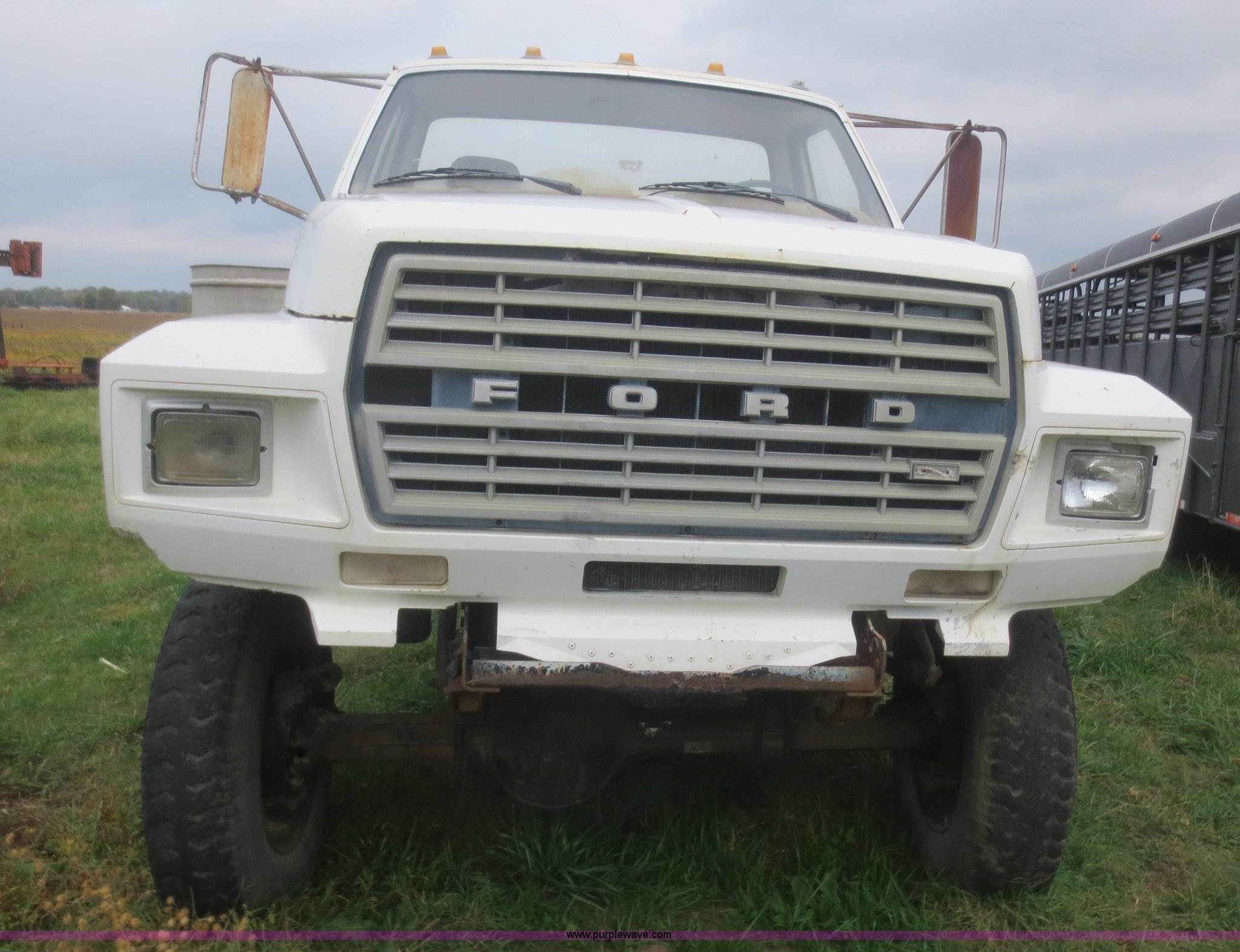 Purple Wave is selling a used Truck Chassis in Kansas. This item is a 1982 Ford F700 cab and chassis with the following: 28,570 miles on odometer, Actual mileage unknown, Detroit Diesel 8.2L V8 diesel engine, Five speed manual transmission, Four wheel drive, Heat, AM/FM/cassette, Cloth interior, Muncie PTO, Double frame, 171" wheelbase, Spring suspension, Hydraulic brakes, 9.00R20 tires, Wing window cracked, Batteries dead