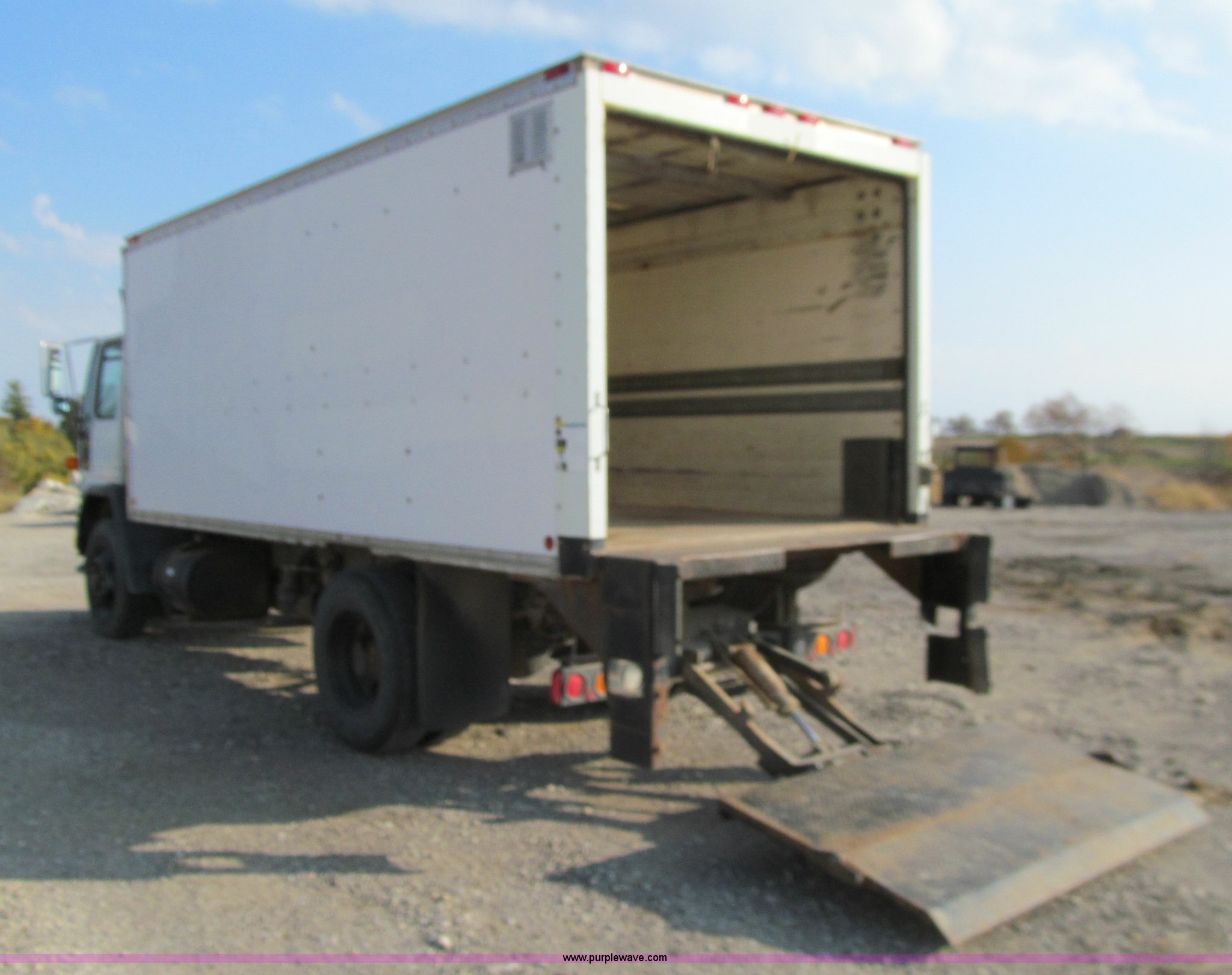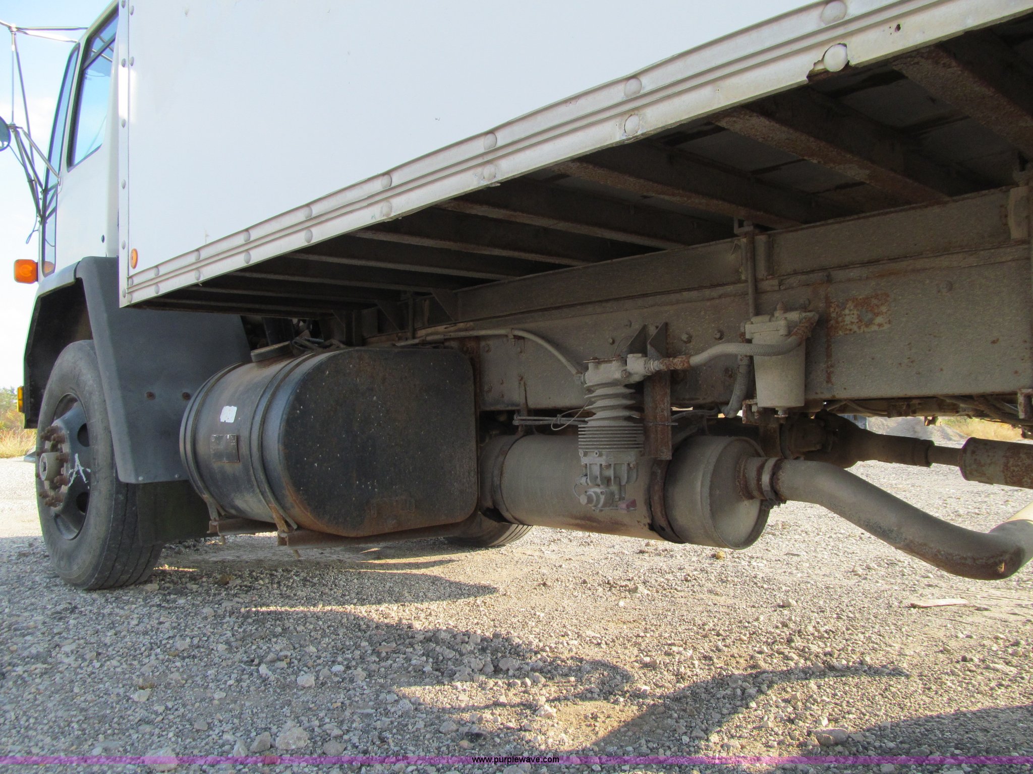 Purple Wave is selling a used Box Truck in Iowa. This item is a 1993 Ford CF8000 box truck with the following: 114,316 miles on odometer, 9,416 hours on meter, 7.8L L6 turbo diesel engine, Air start, Air start solenoid will stick intermittently, Automatic transmission, Heat, Manual windows and locks, Air suspension seat, Cloth interior, Top cab vent, Utiltimaster 18" van body, Interior lights, Translucent roof, Single overhead door, Anthony lift gate, Block heater, Backup alarm, Centralized lube system, Spring suspension, Air brakes, 171" wheelbase, 11R22.5 tires, GVWR 33,000 lbs, FAWR 12,000 lbs, RAWR 21,000 lbs, Intermittent fuel delivery issues, Engine stalls intermittently, Holes in muffler and exhaust system