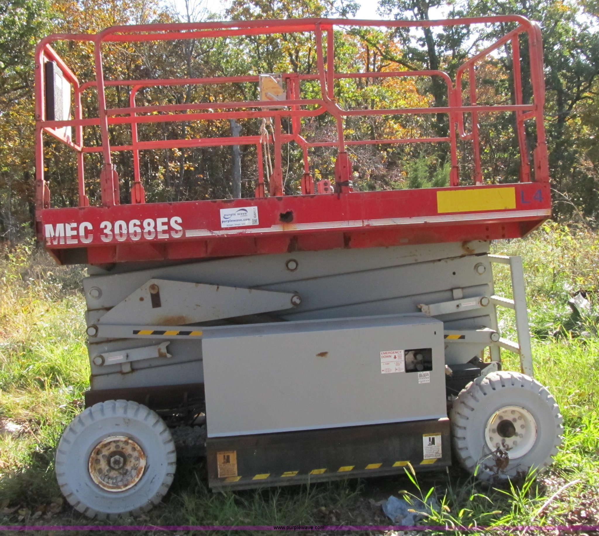 1999 Mec 3068ES scissor lift has sold in Knob Noster, Missouri for $3300. Item G6507 sold on November 20th, 2014.