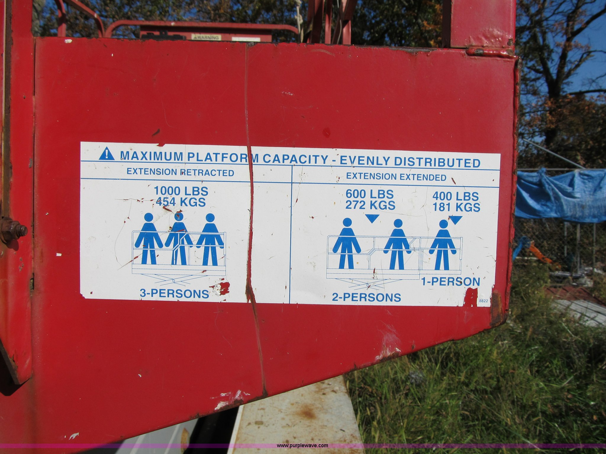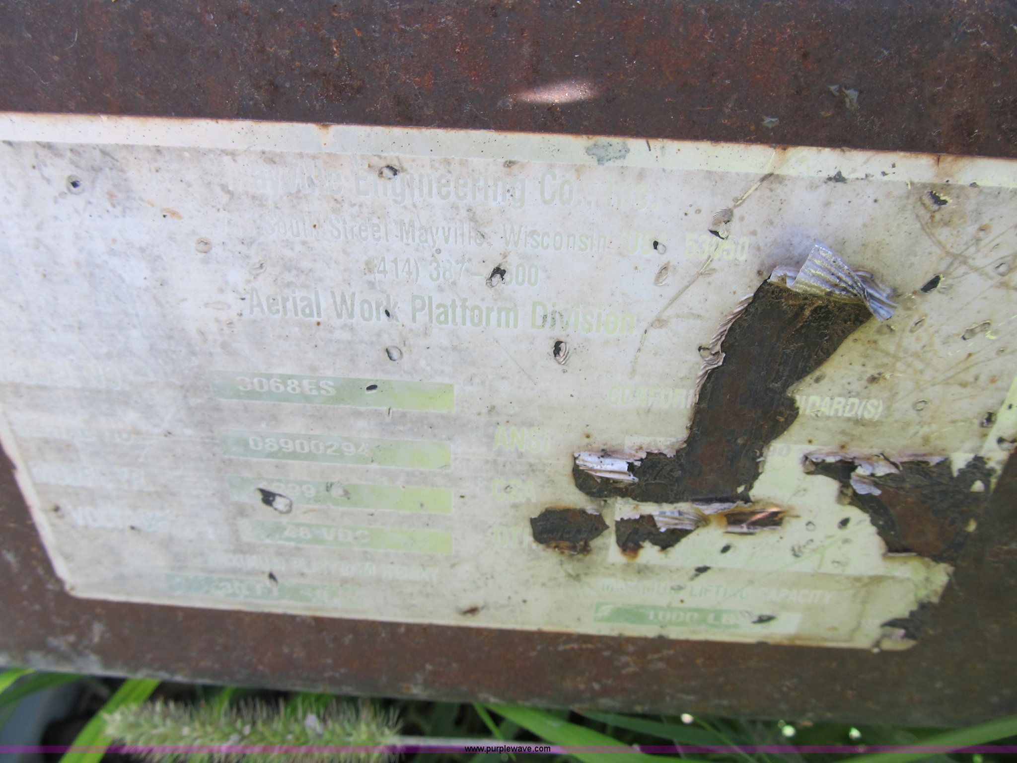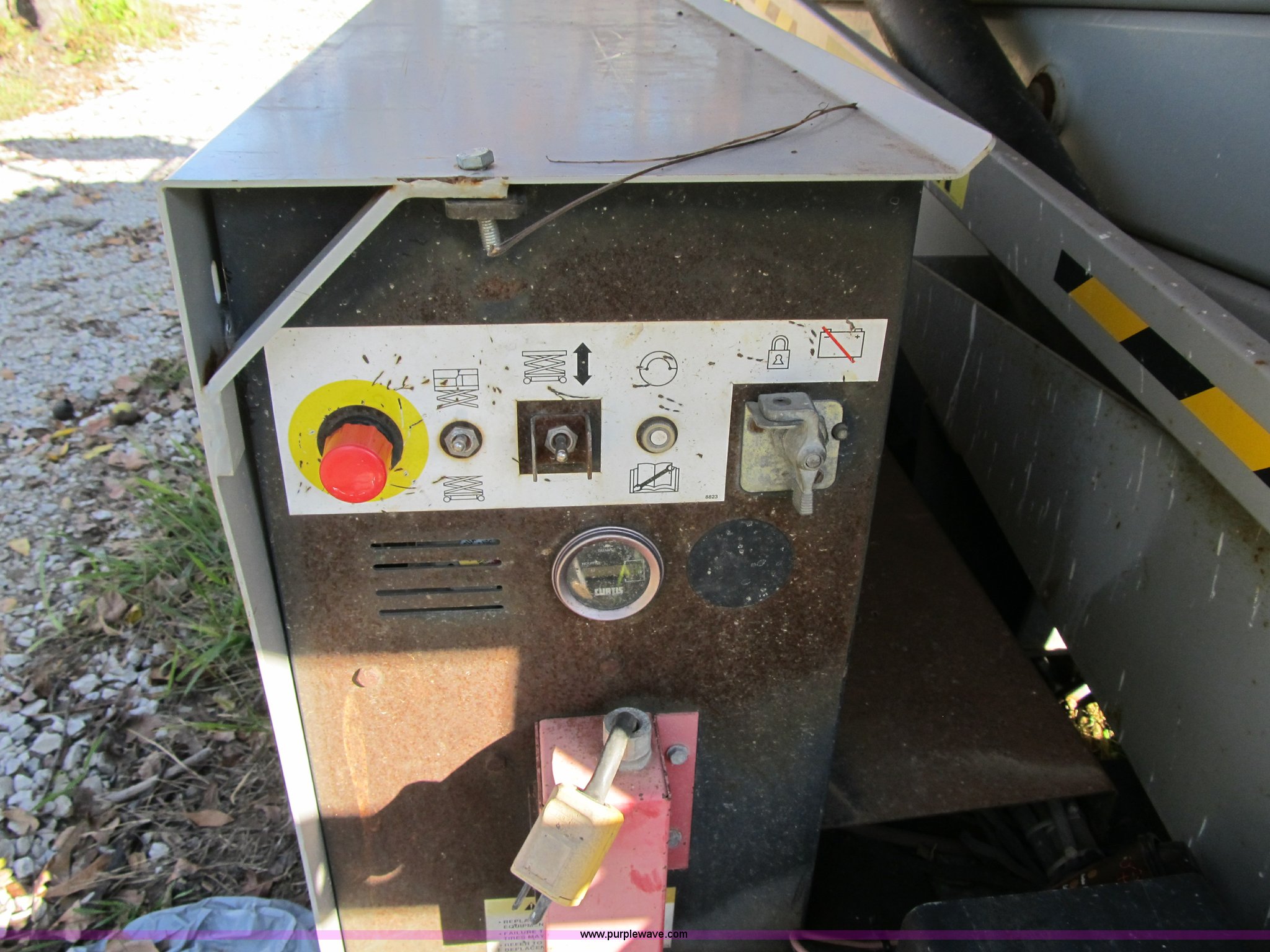 Purple Wave is selling a used Scissor or Vertical Lift in Missouri. This item is a 1999 Mec 3068ES scissor lift with the following: 4,650 hours on meter, 30' maximum lift height, 1,000 lbs maximum lift capacity, 102" x 52"W platform, 48" slide out platform extension, 48V system, On-board charger, Platform power, Upper and lower controls, 7.50-10 solid non-marking tires, Cosmetic damage, Serial 089002984