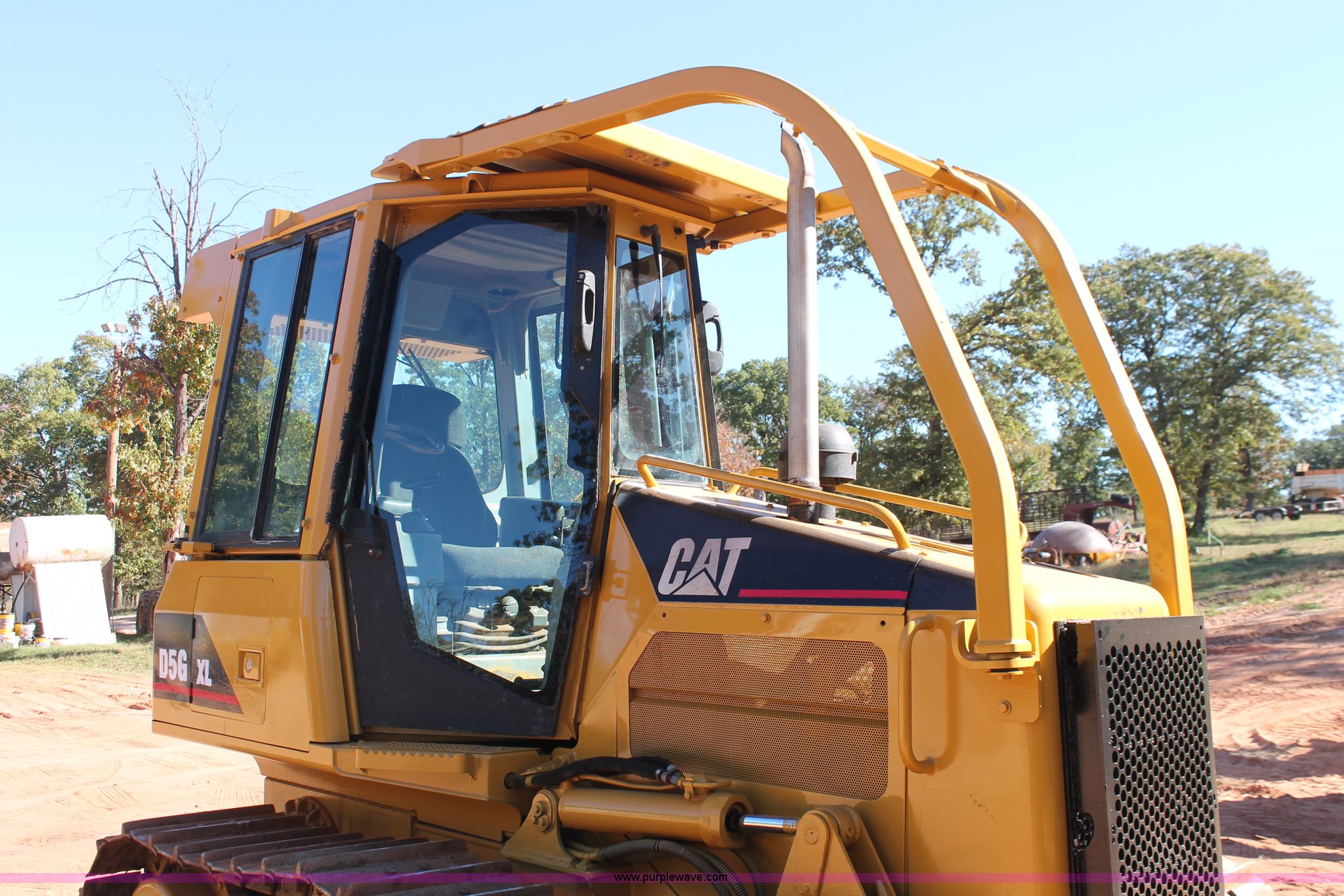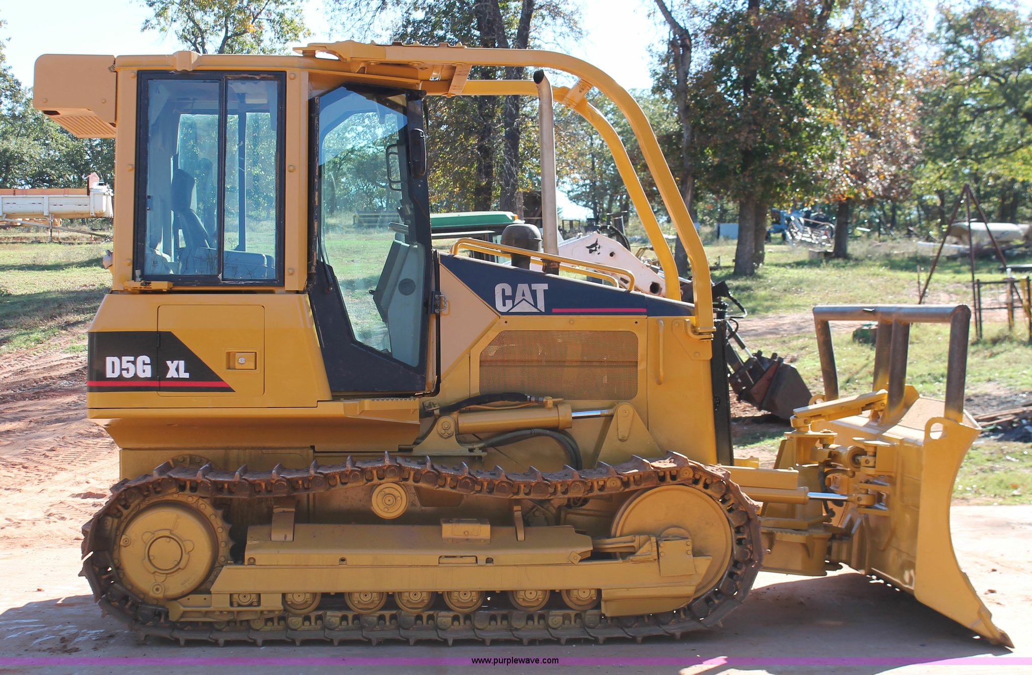 Purple Wave is selling a used Crawler Dozer in Oklahoma. This item is a 2003 Caterpillar D5G XL dozer with the following: 9,095 actual hours, Caterpillar 3046 5.0L four cylinder diesel engine, 90 HP, Serial 5XK3663, Hydrostatic transmission, Enclosed cab, AC, AM/FM, Differential steering, Front and rear wipers, Sweeps, Engine enclosures, 106"W x 43"H dozer face, 18"H extension, S-dozer, Six way dozer, Angle, Tilt, Serial 1834230X4, Seven bottom rollers, 20"W single grouser track pads, 19,662 lbs. base operating weight, Recently replaced front ball, undercarriage, rollers, sprockets, rails, and idler wheels, Serial CAT00D5GCFDH01621