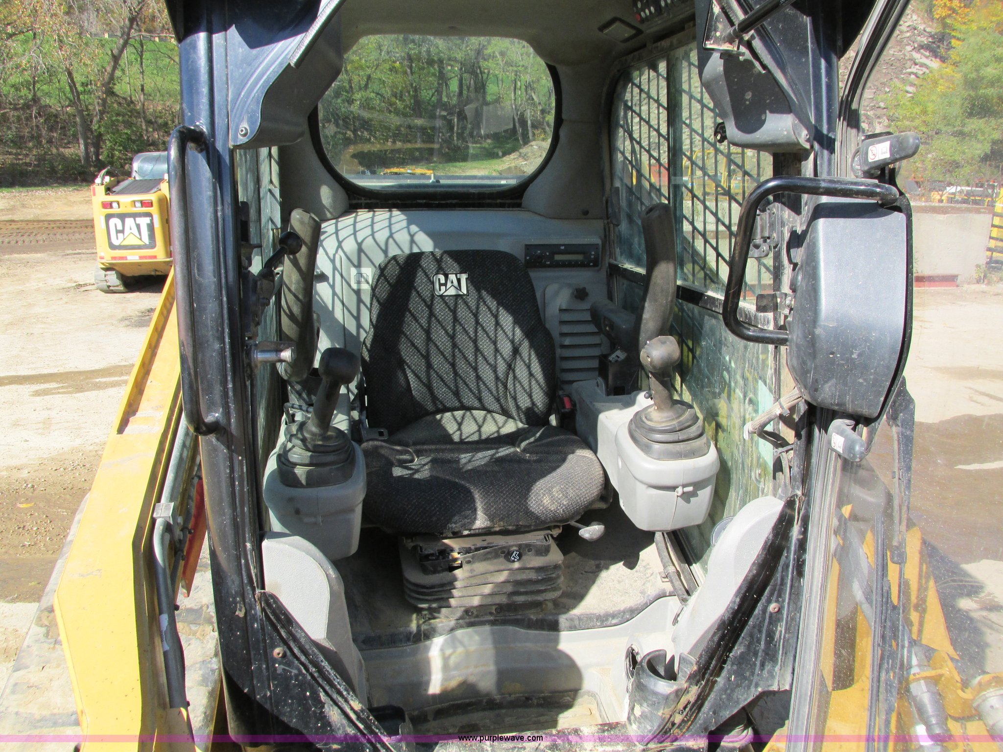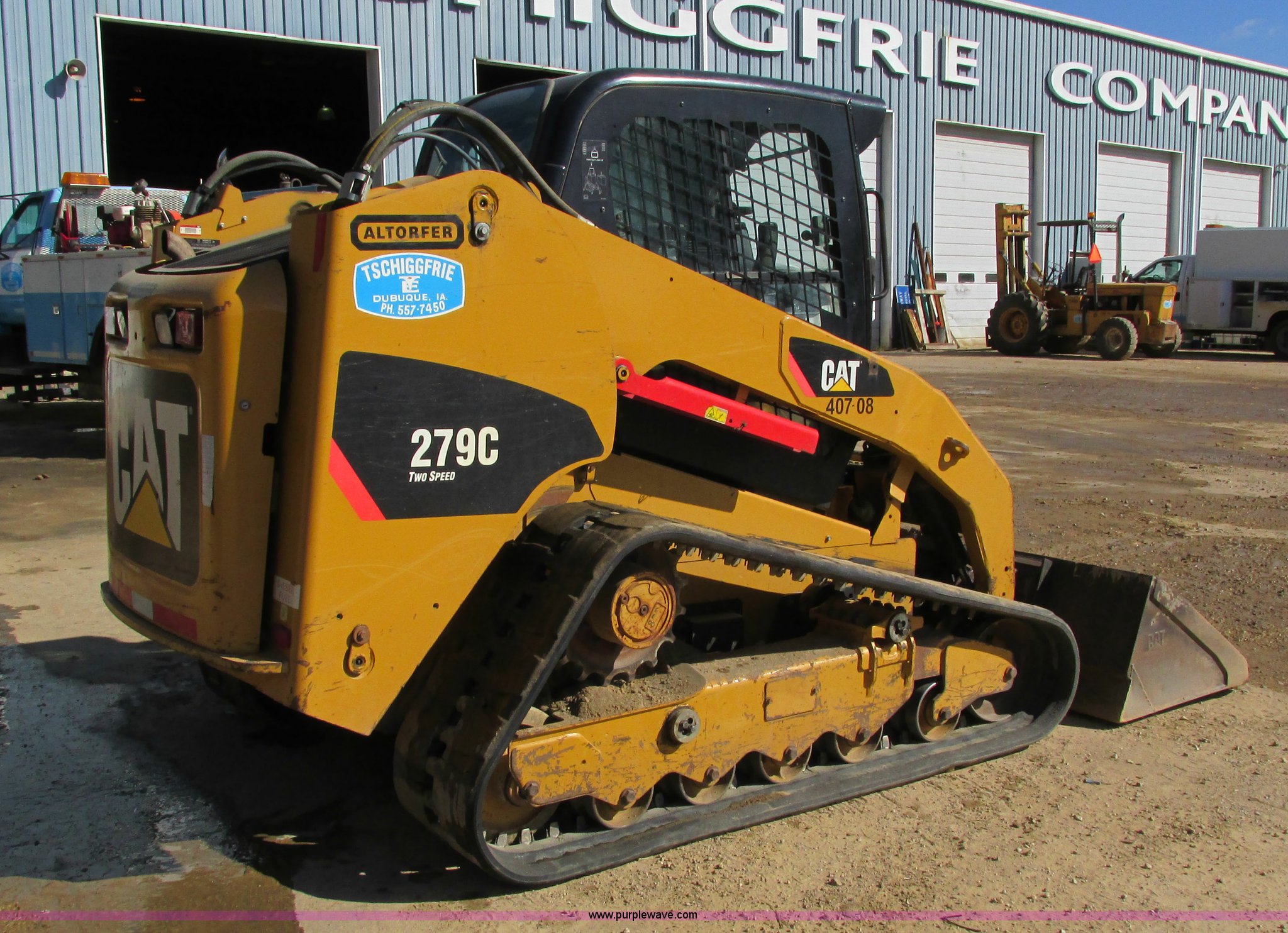 Purple Wave is selling a used Tracked Skid Steer Loader in Iowa. This item is a 2008 Caterpillar 279C skid steer with the following: 5,306 hours on meter, Hours may vary, still in use, Caterpillar C3.4 four cylinder diesel engine, Glow plugs, Two speed hydrostatic transmission, Enclosed cab, AC and heat, EMS panel, Air suspension seat, Joystick controls, Caterpillar 79"W GP bucket, Hydrualic quick coupler, Front and rear work lights, Auxiliary hydraulics, Auxiliary electrical outlet, Five bottom rollers, 18"W tracks, 9,892 lbs. base operating weight, Serial CAT0279CKMBT00342, Unit# 407-08