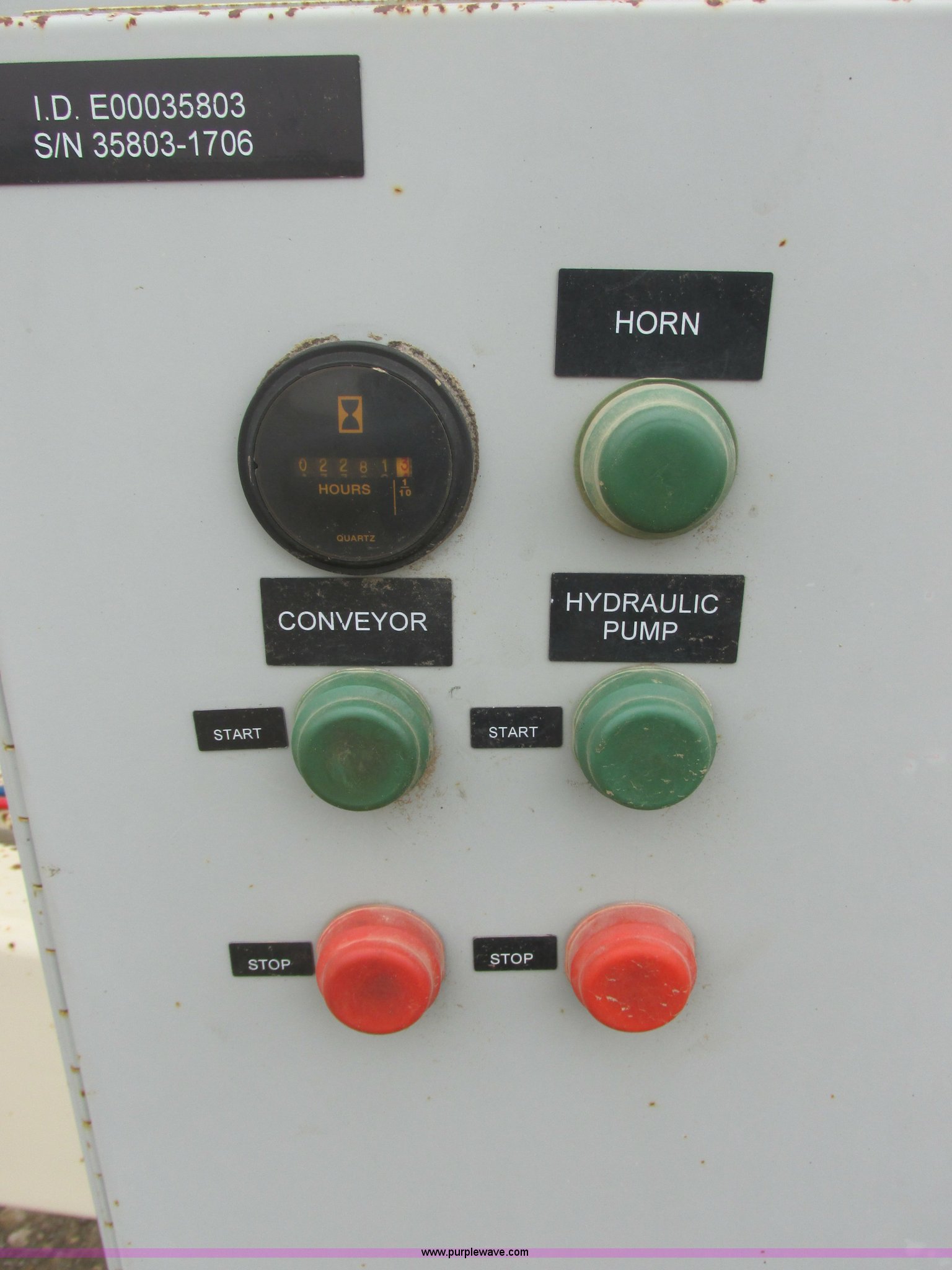 Purple Wave is selling a used Conveyor in Minnesota. This item is a 2012 Superior Pinnacle PC radial stacking conveyor with the following: 100'L x 36"W, 4' x 6' intake hopper, Toshiba 0504SDSR41A-P motor, 50 HP, 1,775 RPM, Frame No. 326T, 230/460V, Three phase, Browning 307 speed reducer, 14:97 gear ratio, Serial 508K, Electrical box, ID E60035803, 480V, 2,291 hours on meter, Hydraulic raise and fold, Toshiba 4754SDSH42A-p, 75 HP, Three phase, 230/460V, 1,760 RPM, Frame No. 213TC, Hydraulic folding head, (2) stabilizer feet, Air brakes, 385/65R22.5 pivot tires, 11-22.5 transport tires, Serial 247688
