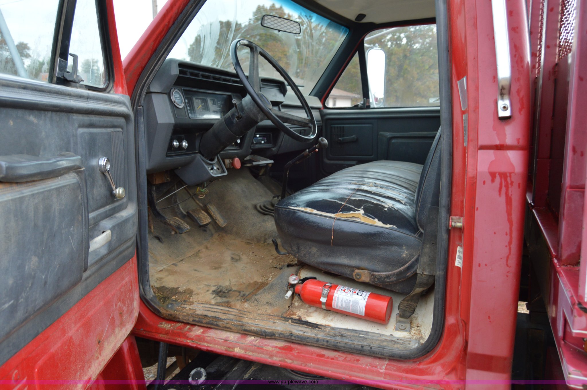 Purple Wave is selling a used Flat Bed Truck in Missouri. This item is a 1990 Ford F700 flatbed truck with the following: 48,631 miles on odometer, 7.0L V8 gas engine, Five speed manual transmission, Two speed rear end, Heat, Manual windows and locks, Vinyl interior, 16'L x 95"W flatbed, 50 gallon fuel tank, Hydraulic brakes, 171" wheelbase, 10.00R20 tires, GVWR 28,000 lbs, Interior/exterior cosmetic damage