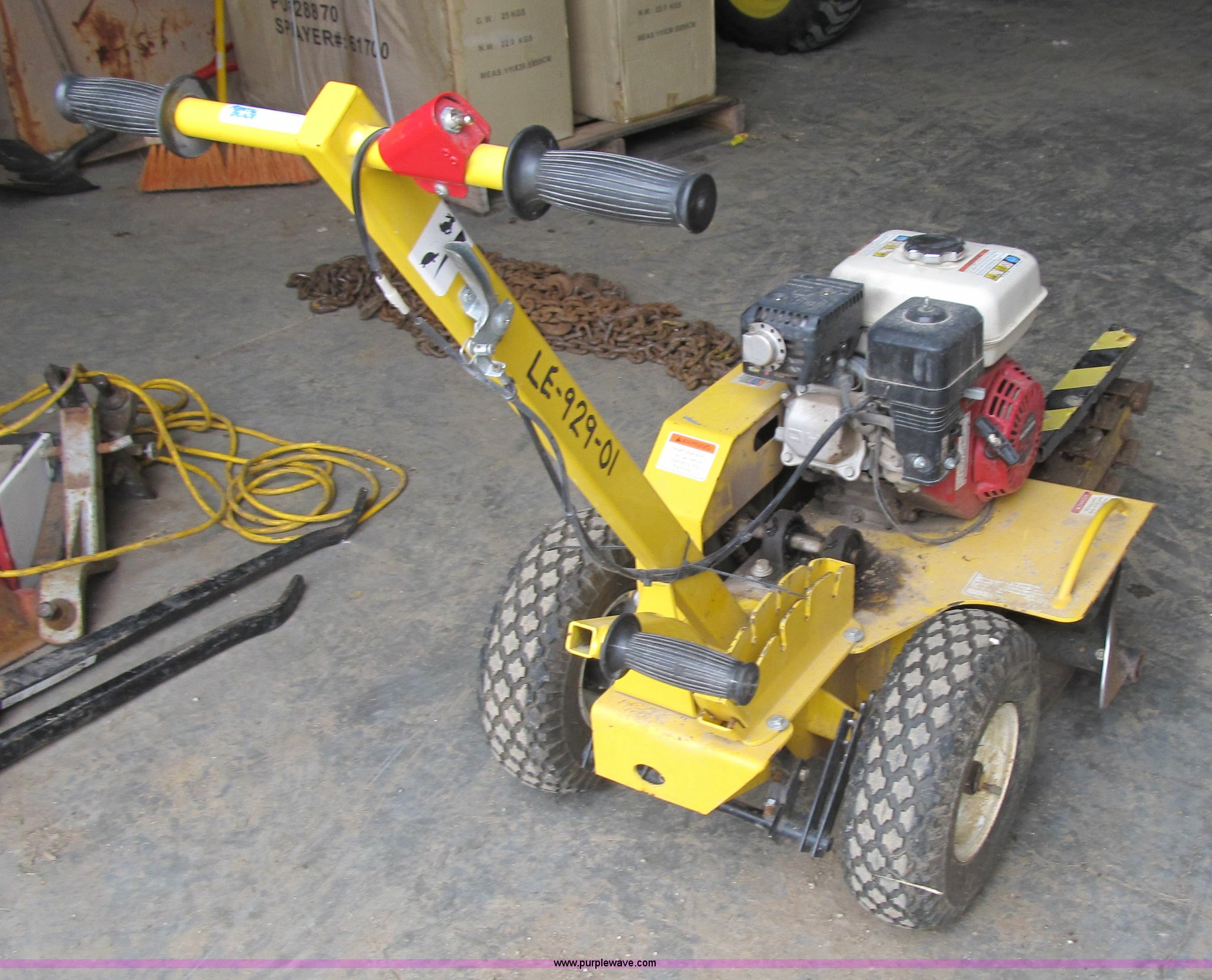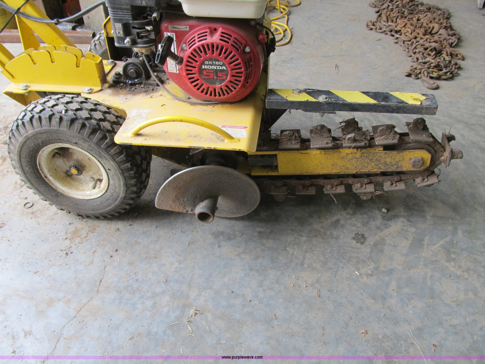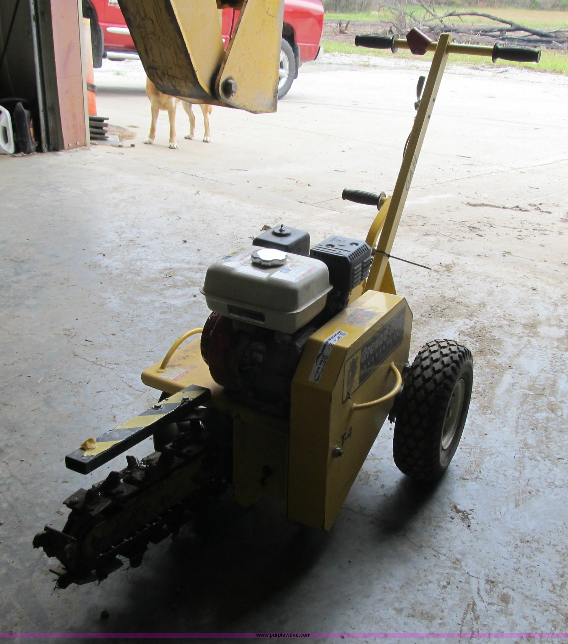 Purple Wave is selling a used Trencher or Rock Saw in Missouri. This item is a Ground Hog T4 trencher with the following: Honda 5.5 gas engine, 18" maximum digging depth, 4"W, Side auger, Throttle on/off switch on handle, Serial LE-929-01
