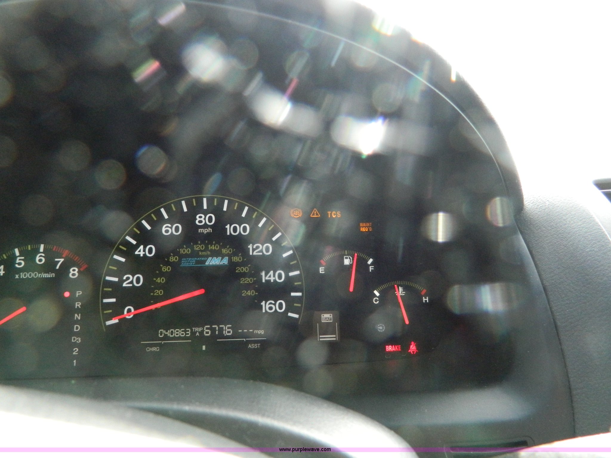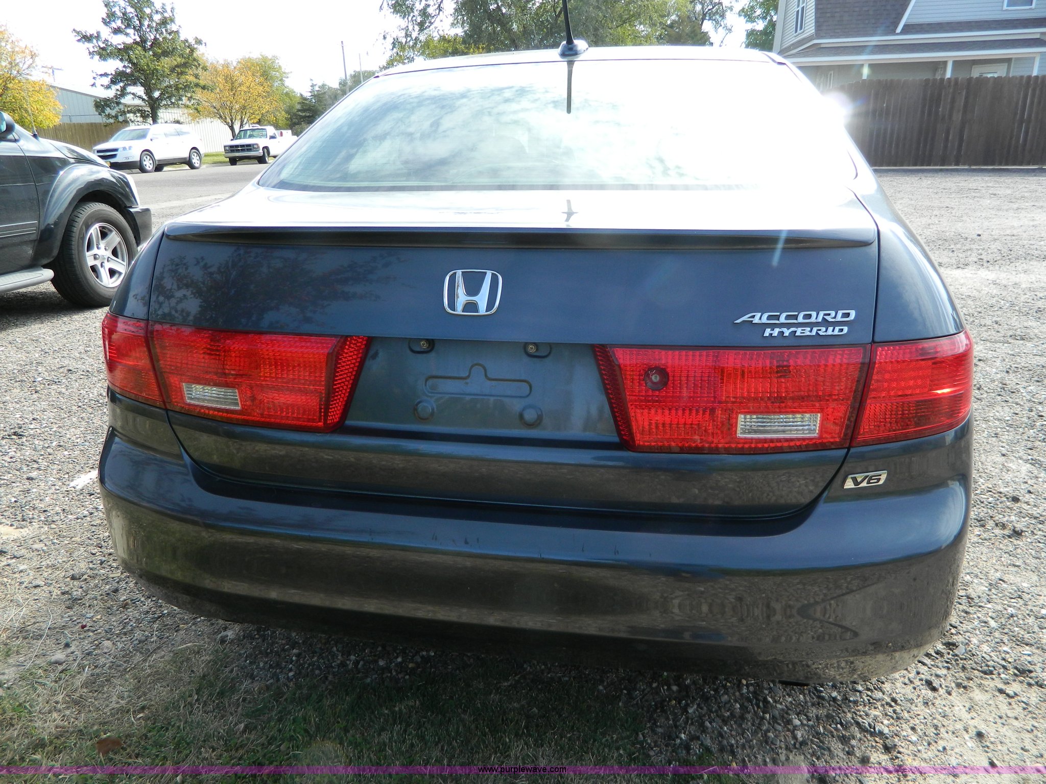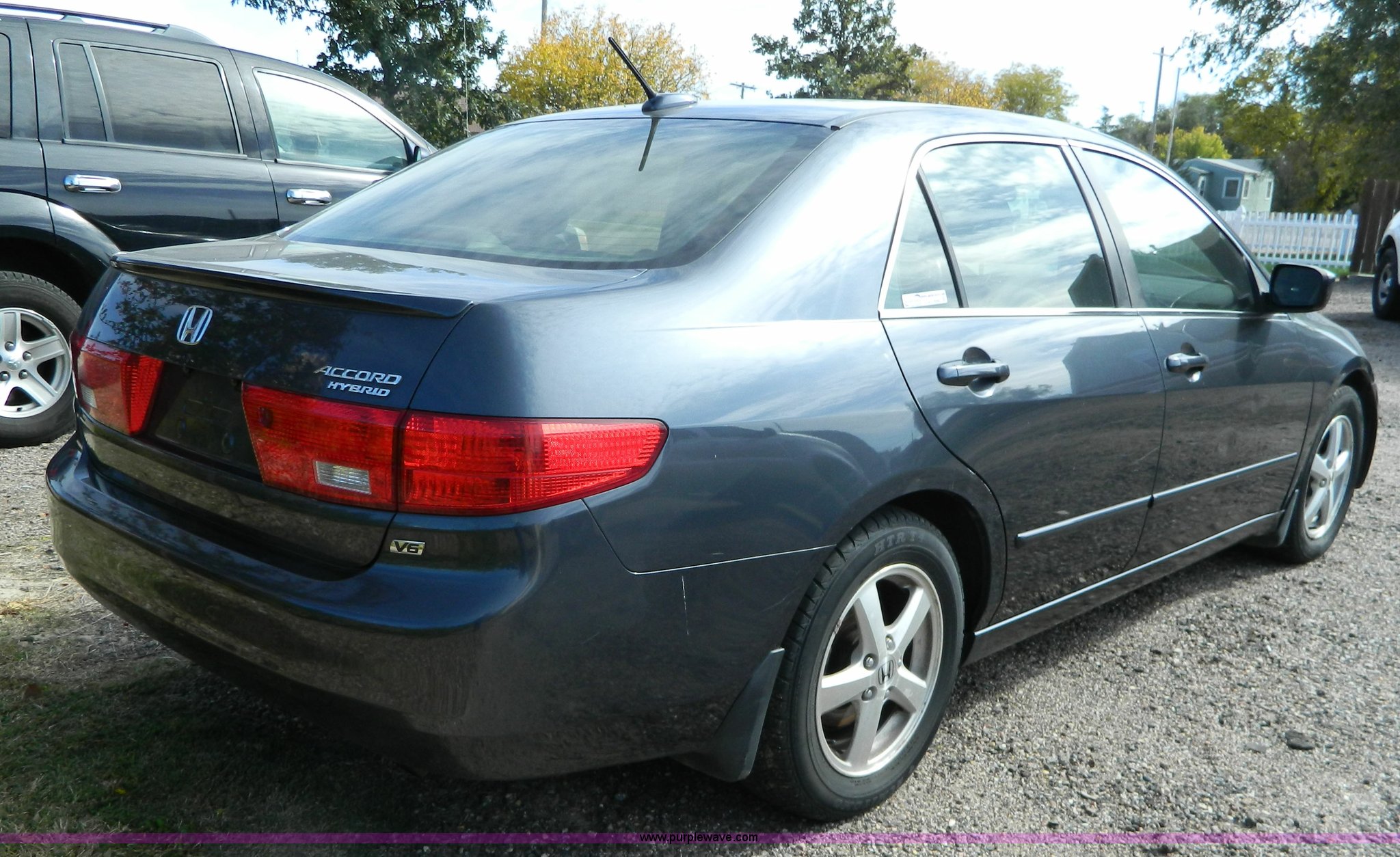 Purple Wave is selling a used Passenger Vehicle in Kansas. This item is a 2005 Honda Accord Hybrid with the following: 40,863 miles on odometer, 3.0L V6 24V SOHC hybrid gas engine, Automatic transmission, AC and heat, Tilt, Cruise, AM/FM/CD, Power windows, locks, and mirrors, Leather interior, P215/60R16 tires, Interior/exterior cosmetic damage, Scratches, Torn seat, ABS light on, TCS light on, Maintenance required light on