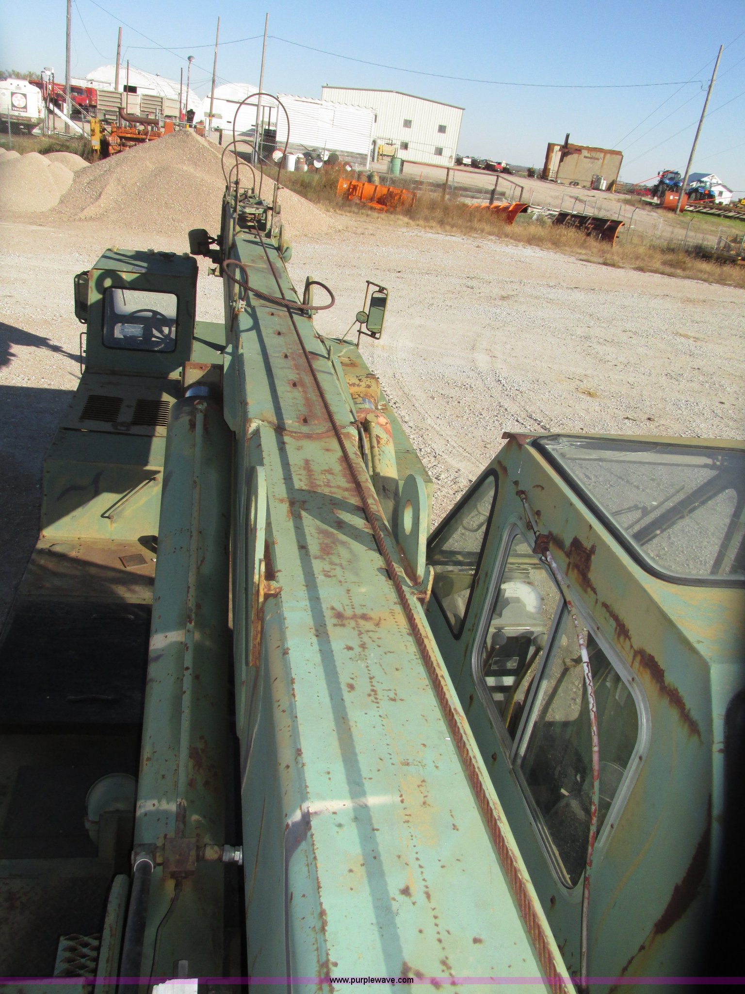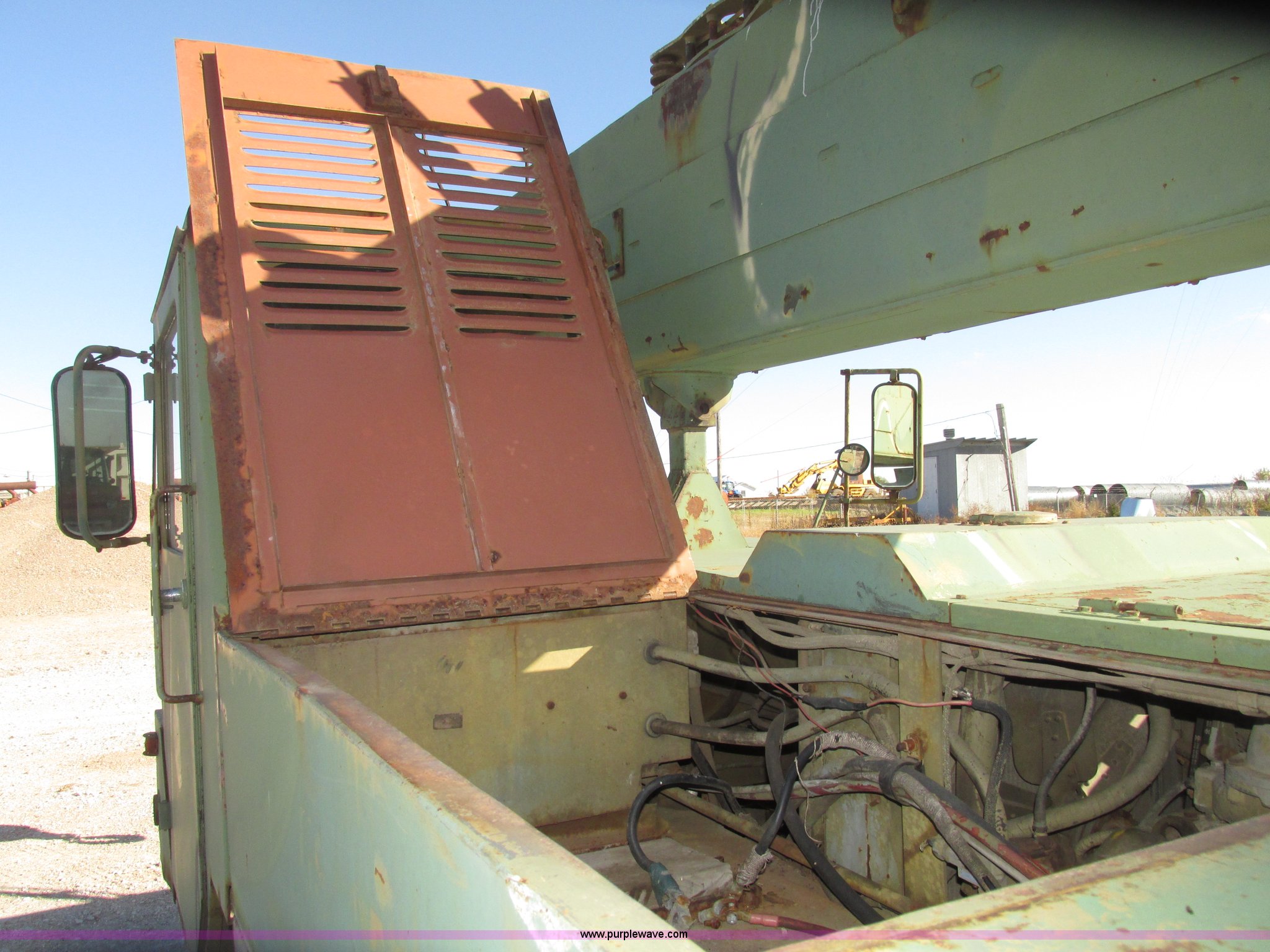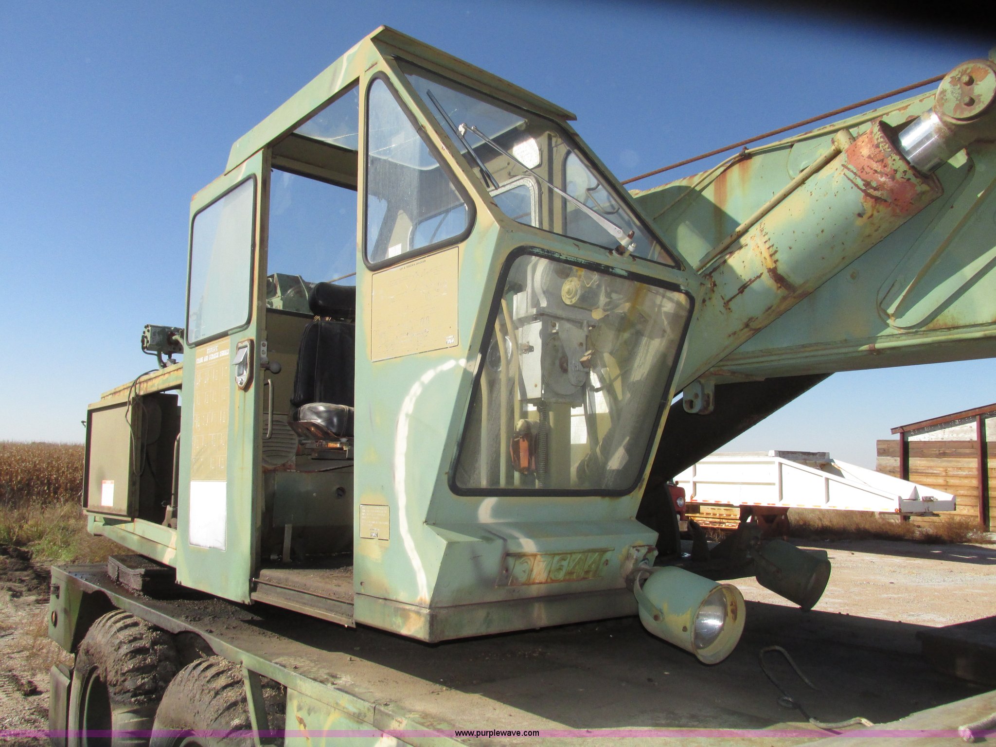 Purple Wave is selling a used Truck Crane in Nebraska. This item is a 1975 P & H MT-250 hydraulic crane with the following: 6,305 miles on odometer, Detroit Diesel 6V53N, 210 HP, Dana Spicer transmission, Five speed with four speed splitter, Locking differential, Enclosed cab, Heat, 25 ton maximum lift capacity, 80' maximum lift height, 75' maximum reach, Three boom sections, Hydraulic outriggers, 36" x 36" outrigger pads, Weight load indicator, Class 1,290 rated, Approximately 37.5'L x 96"W overall dimensions, Fire extinguisher, 11.00-20 tires, Operator, parts, and service manuals, Non-operational pitch guage, Last used December 2009, Last ran 2011, Main lift cylinder leaks, Non-operational unit, Unit# 59
