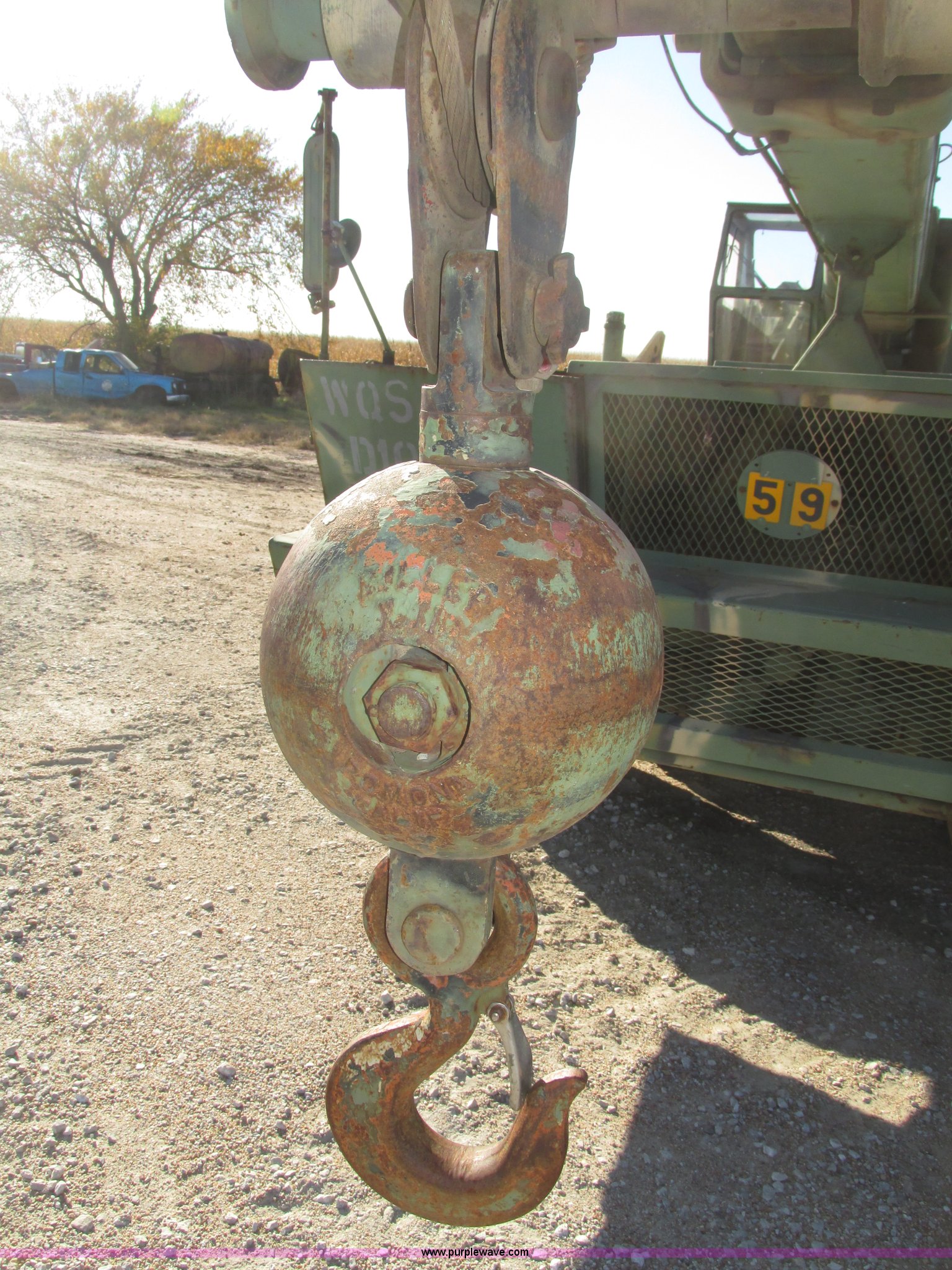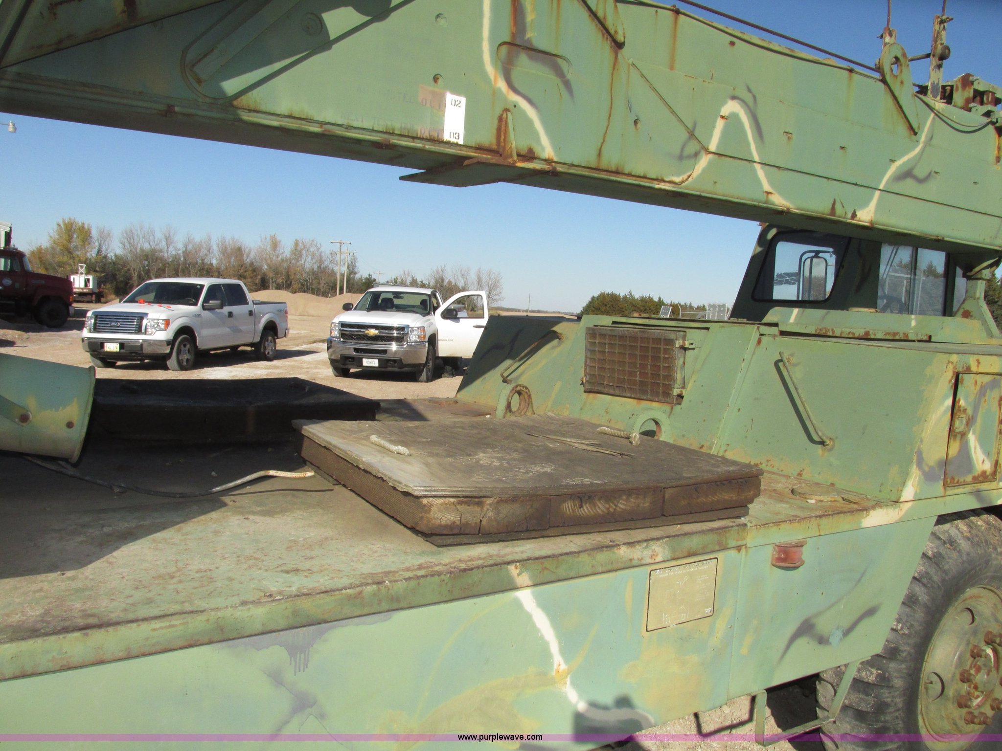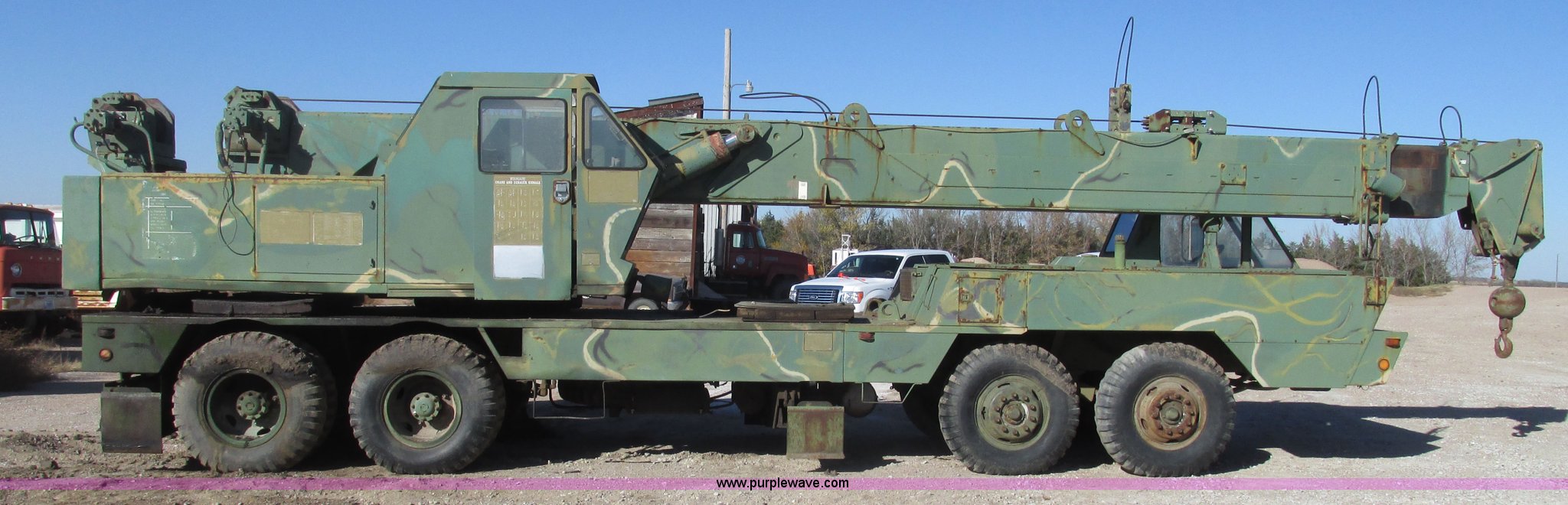 Purple Wave is selling a used Truck Crane in Nebraska. This item is a 1975 P & H MT-250 hydraulic crane with the following: 6,305 miles on odometer, Detroit Diesel 6V53N, 210 HP, Dana Spicer transmission, Five speed with four speed splitter, Locking differential, Enclosed cab, Heat, 25 ton maximum lift capacity, 80' maximum lift height, 75' maximum reach, Three boom sections, Hydraulic outriggers, 36" x 36" outrigger pads, Weight load indicator, Class 1,290 rated, Approximately 37.5'L x 96"W overall dimensions, Fire extinguisher, 11.00-20 tires, Operator, parts, and service manuals, Non-operational pitch guage, Last used December 2009, Last ran 2011, Main lift cylinder leaks, Non-operational unit, Unit# 59