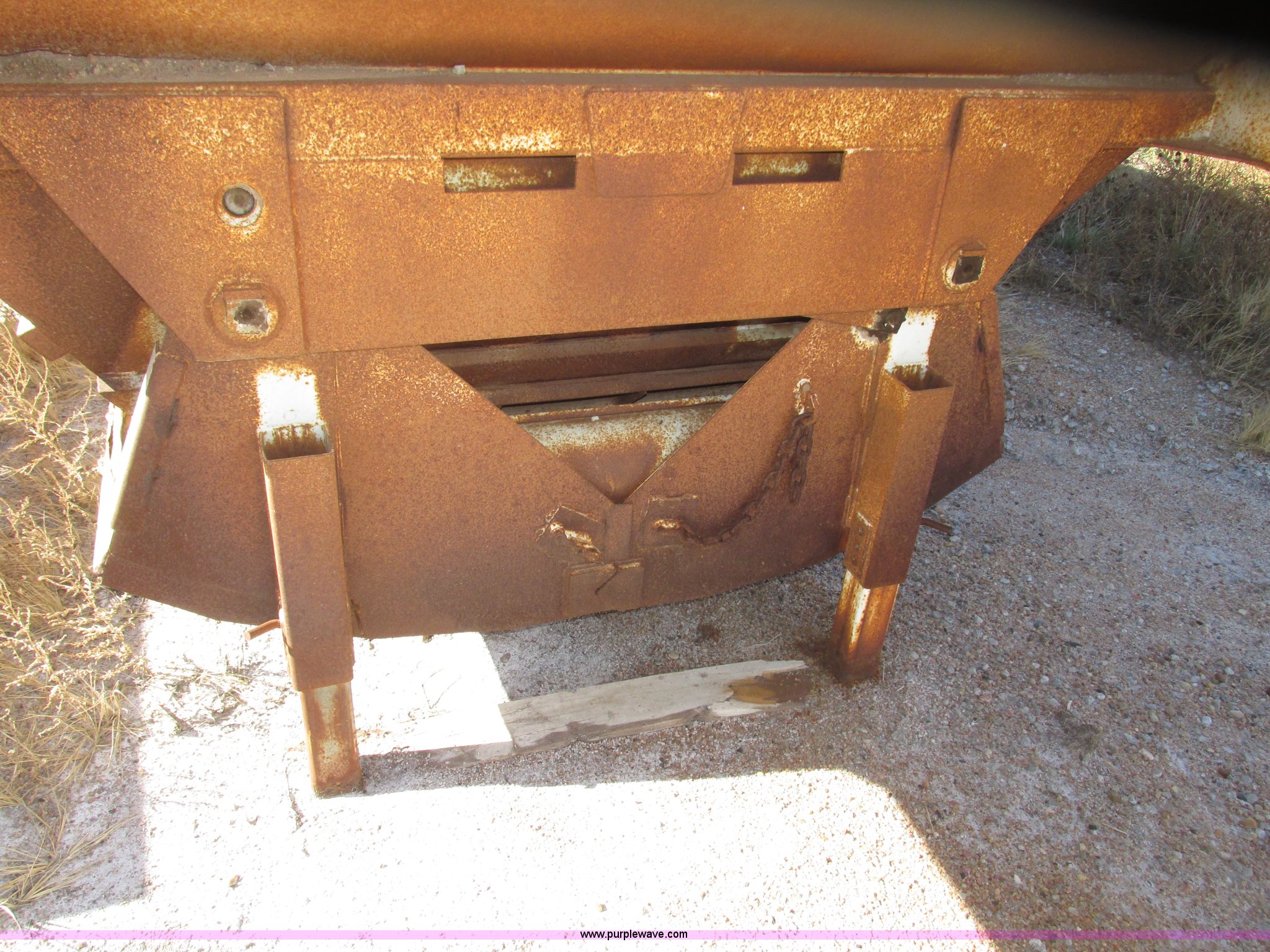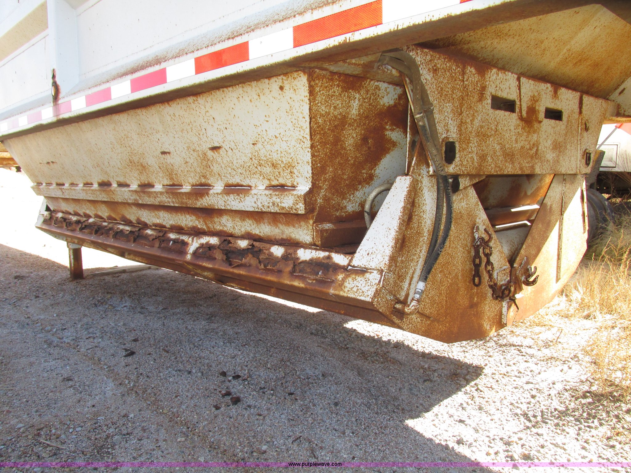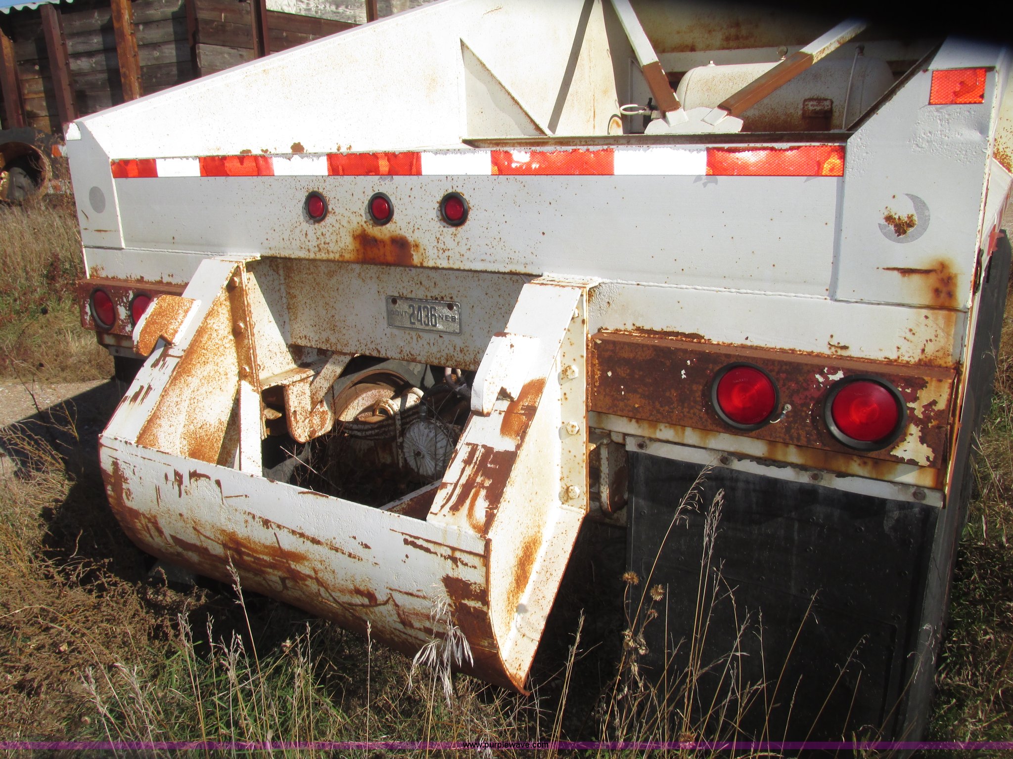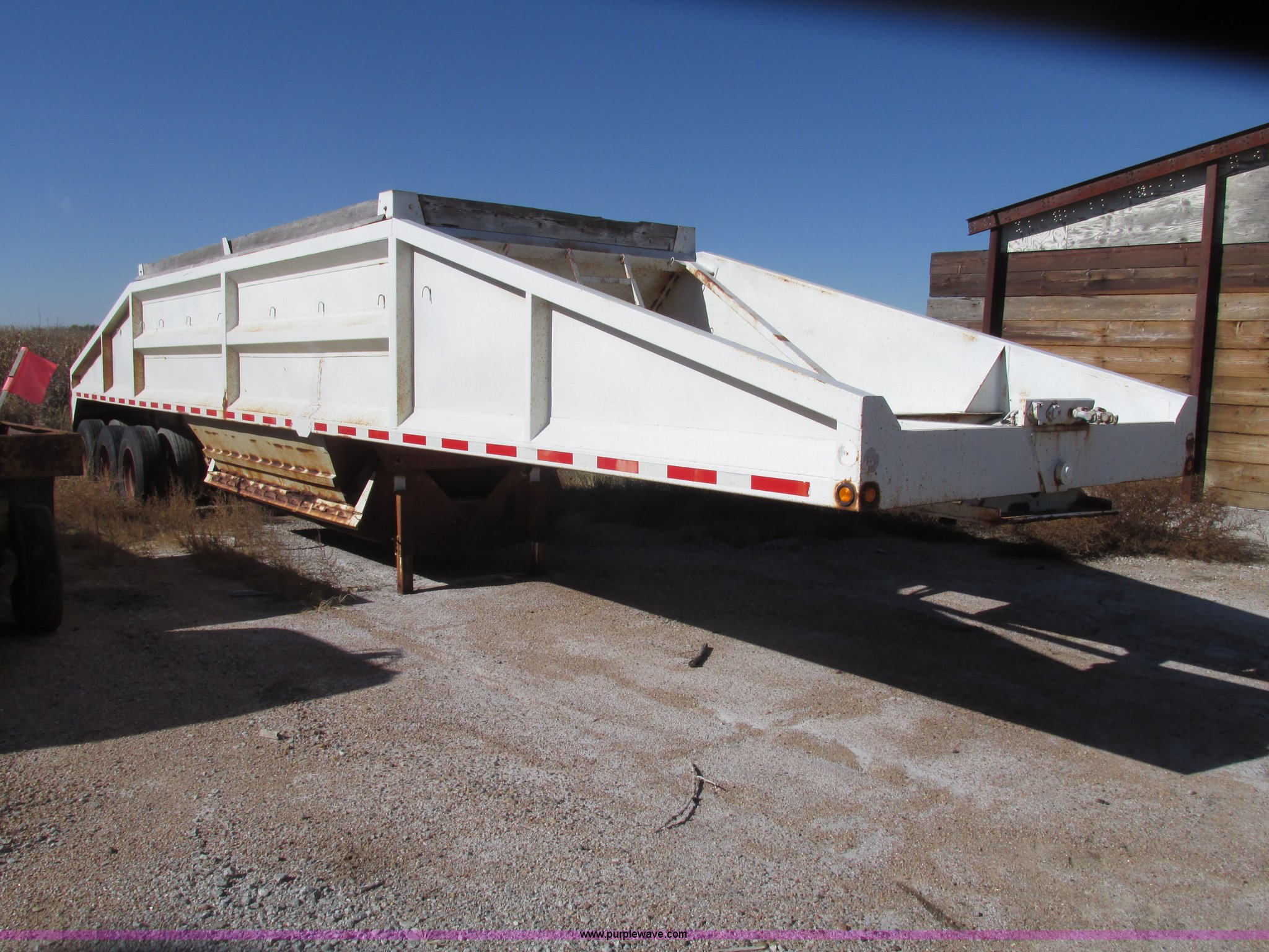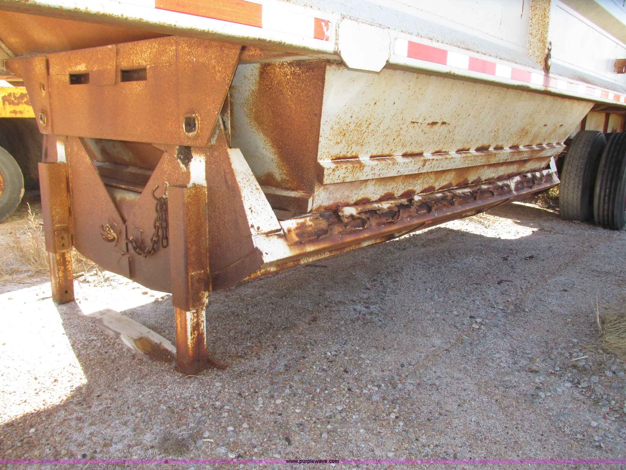 Purple Wave is selling a used Bottom Dump Trailer in Nebraska. This item is a 1993 Dakota DB4200 belly dump trailer with the following: 42'L x 95"W, 11'7.5"L hopper bottom, 19'3"L hopper bottom, Tarp tie downs, 44"W x 16"D push bumper, 102"H form ground to top of side board, Hopper mounted jack, Mud flaps, Gland hand and trailer wiring, Spring suspension, Air brakes, 11R22.5 tires, GVWR 60,000 lbs, GAWR 22,500 lbs, One owner, Hoppers rusted, Unit has not moved in more than three years, Unknown operating condition, One tire low