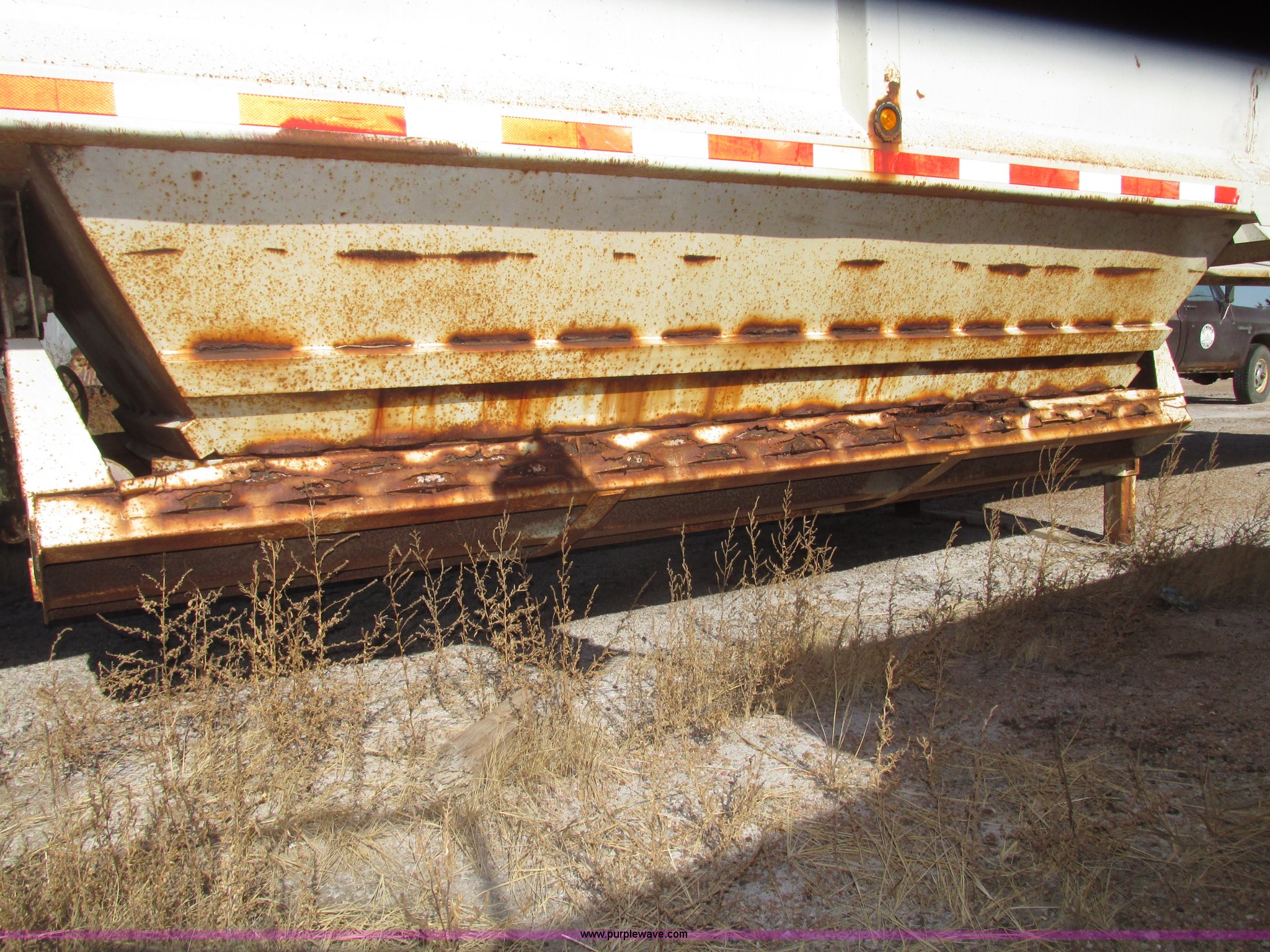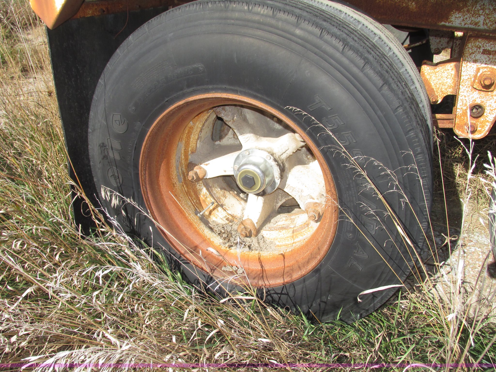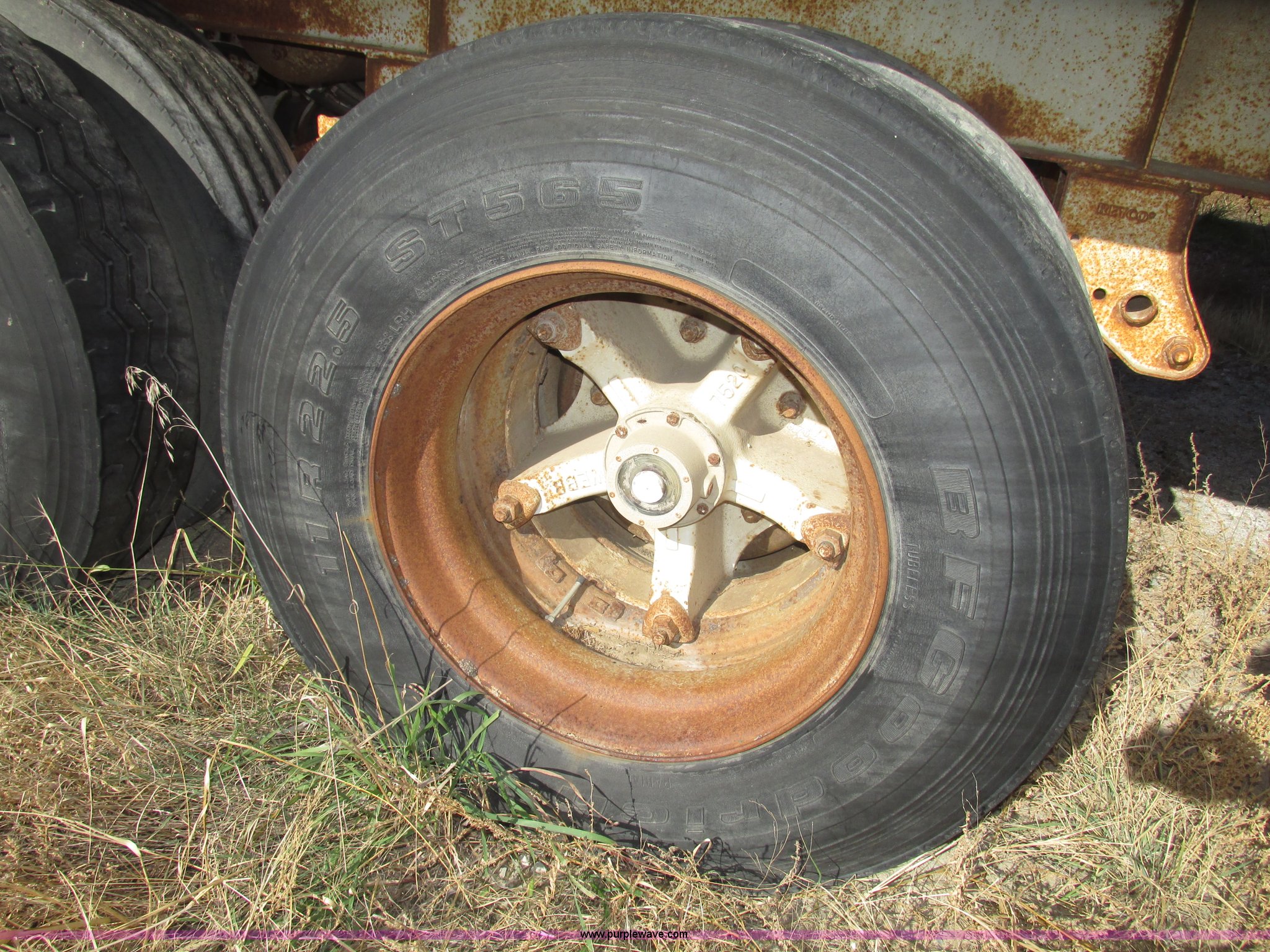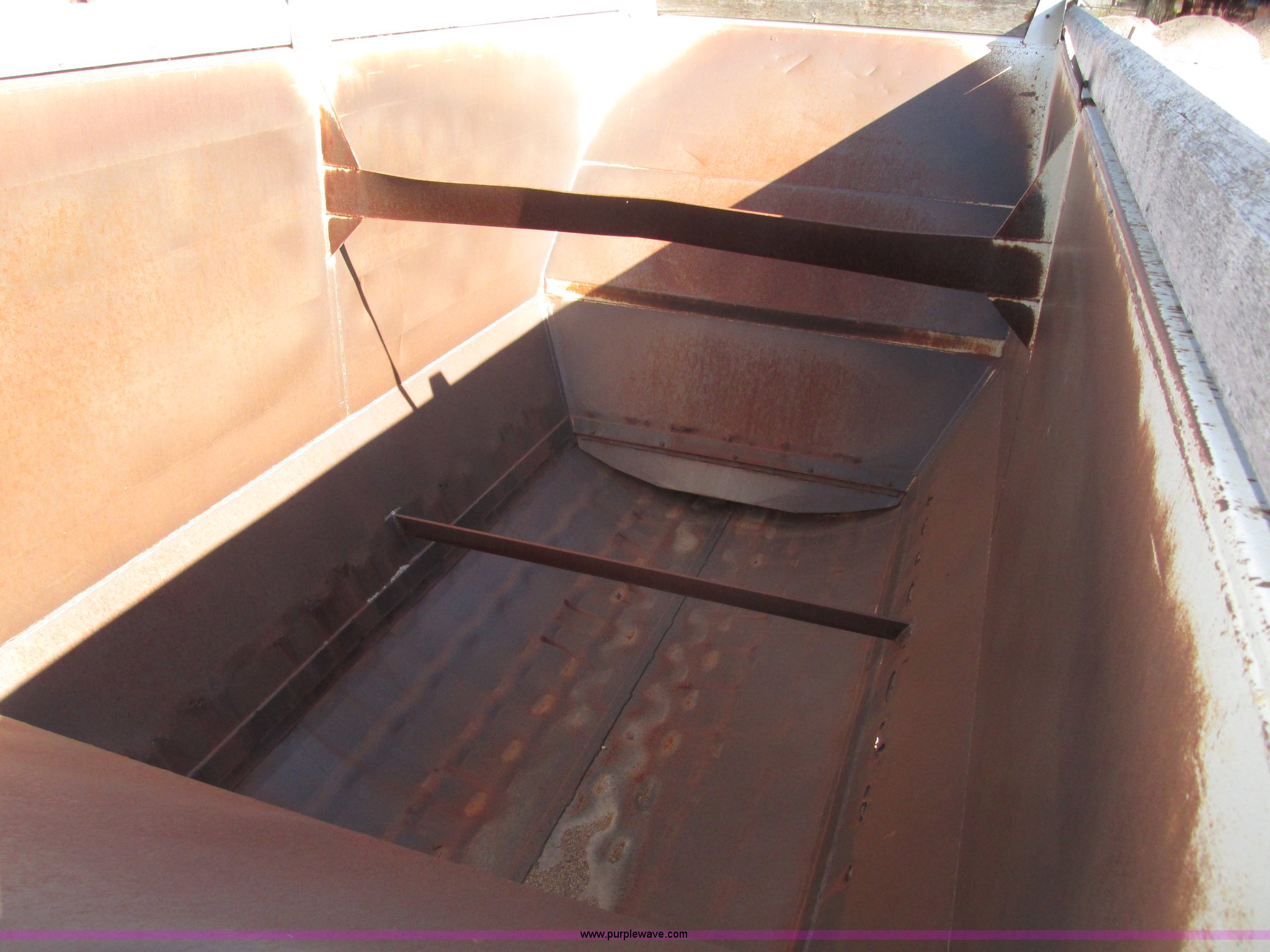 Purple Wave is selling a used Bottom Dump Trailer in Nebraska. This item is a 1993 Dakota DB4200 belly dump trailer with the following: 42'L x 95"W, 11'7.5"L hopper bottom, 19'3"L hopper bottom, Tarp tie downs, 44"W x 16"D push bumper, 102"H form ground to top of side board, Hopper mounted jack, Mud flaps, Gland hand and trailer wiring, Spring suspension, Air brakes, 11R22.5 tires, GVWR 60,000 lbs, GAWR 22,500 lbs, One owner, Hoppers rusted, Unit has not moved in more than three years, Unknown operating condition, One tire low