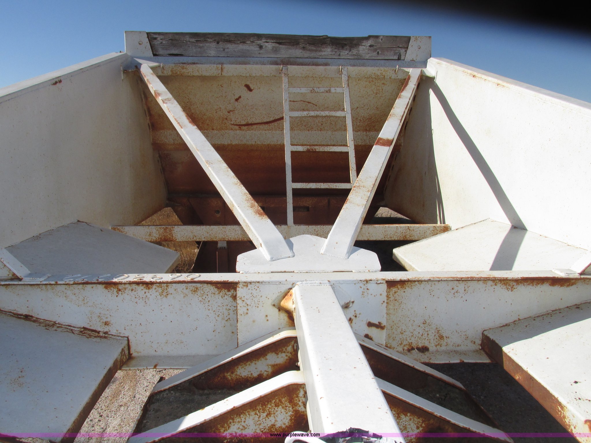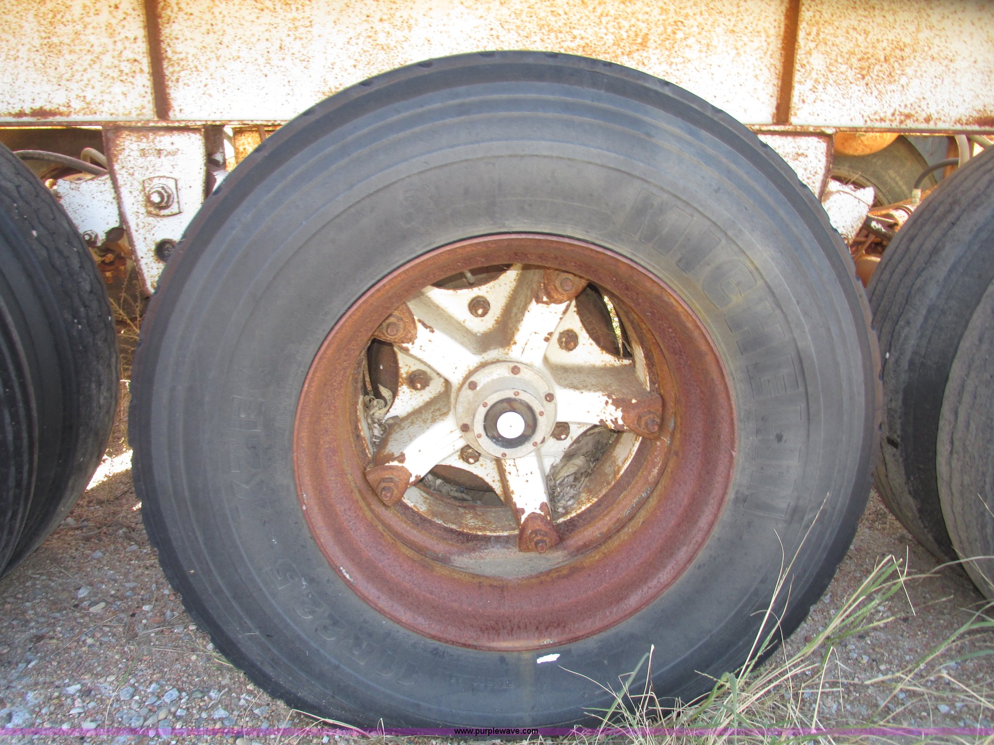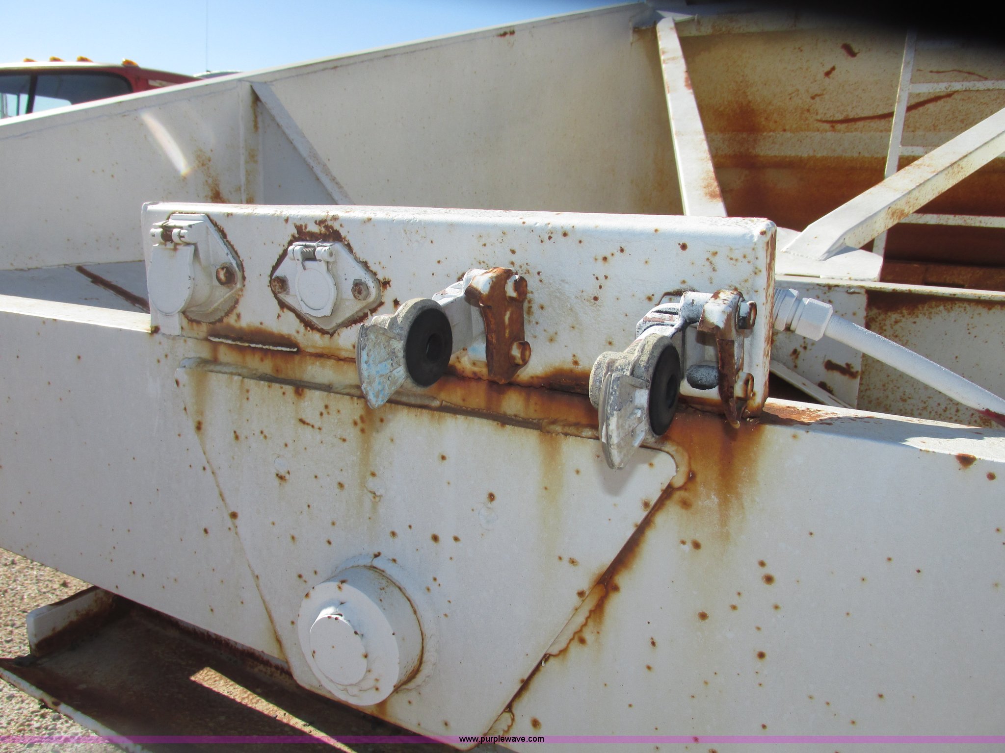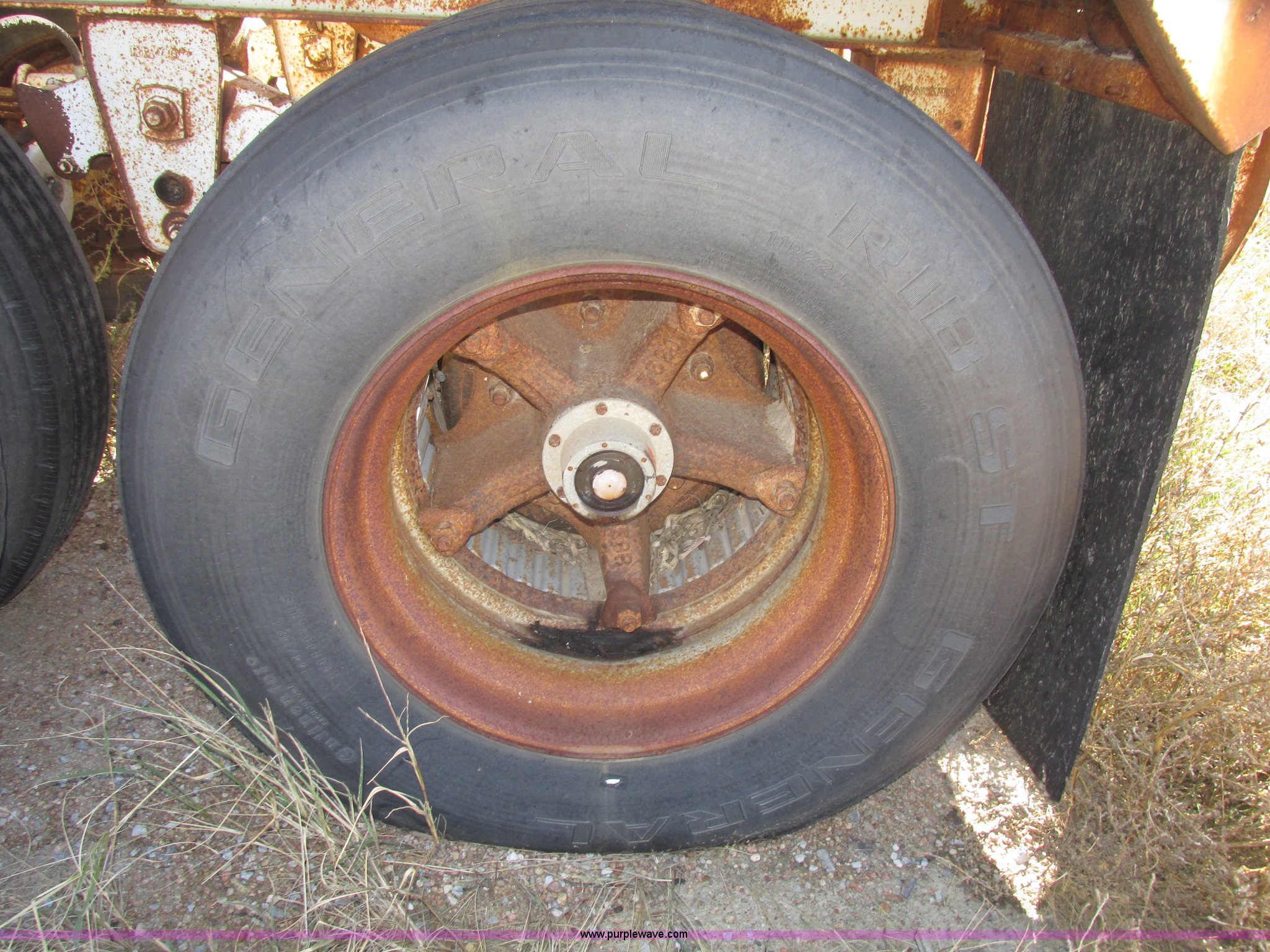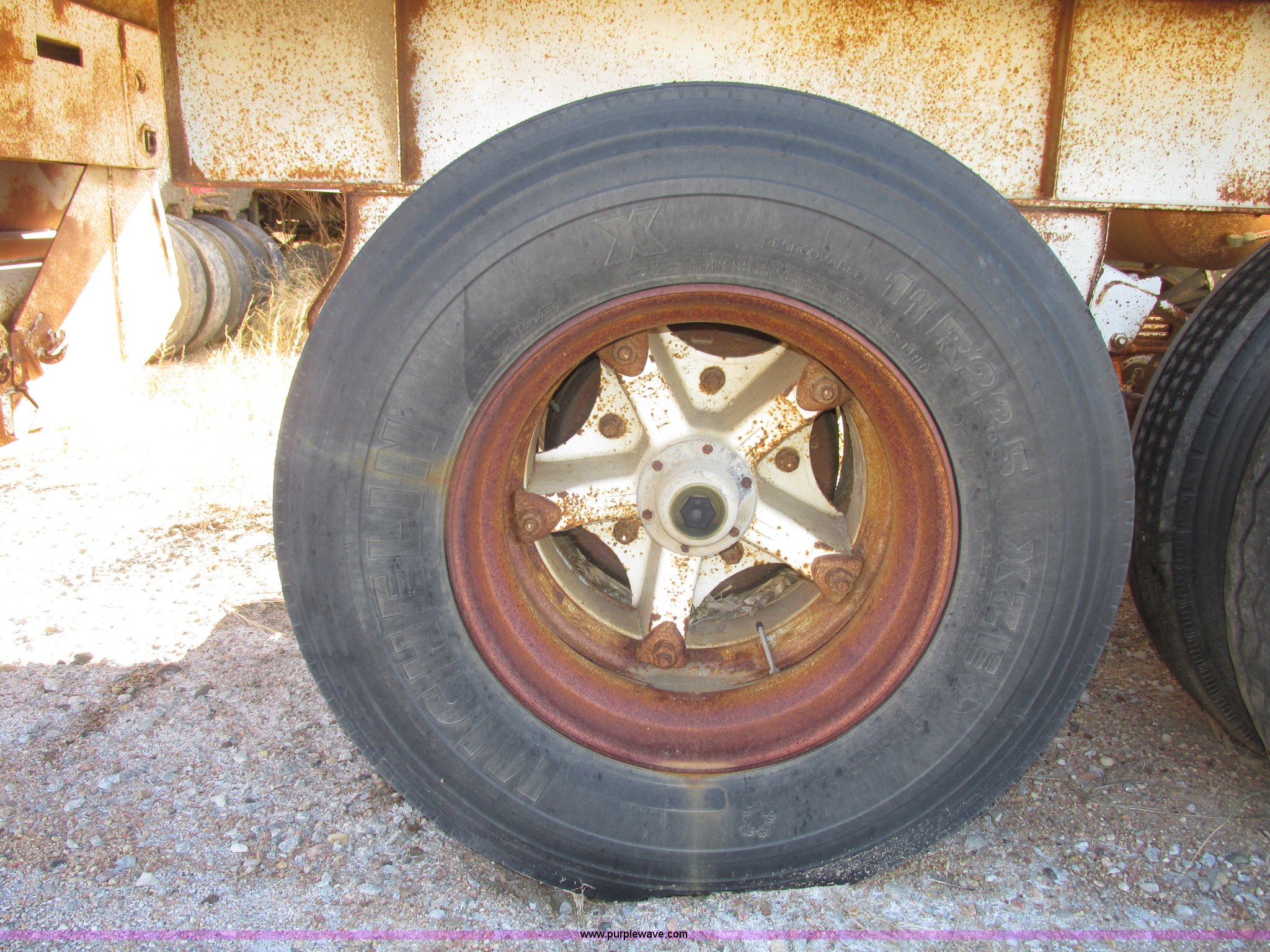 Purple Wave is selling a used Bottom Dump Trailer in Nebraska. This item is a 1993 Dakota DB4200 belly dump trailer with the following: 42'L x 95"W, 11'7.5"L hopper bottom, 19'3"L hopper bottom, Tarp tie downs, 44"W x 16"D push bumper, 102"H form ground to top of side board, Hopper mounted jack, Mud flaps, Gland hand and trailer wiring, Spring suspension, Air brakes, 11R22.5 tires, GVWR 60,000 lbs, GAWR 22,500 lbs, One owner, Hoppers rusted, Unit has not moved in more than three years, Unknown operating condition, One tire low