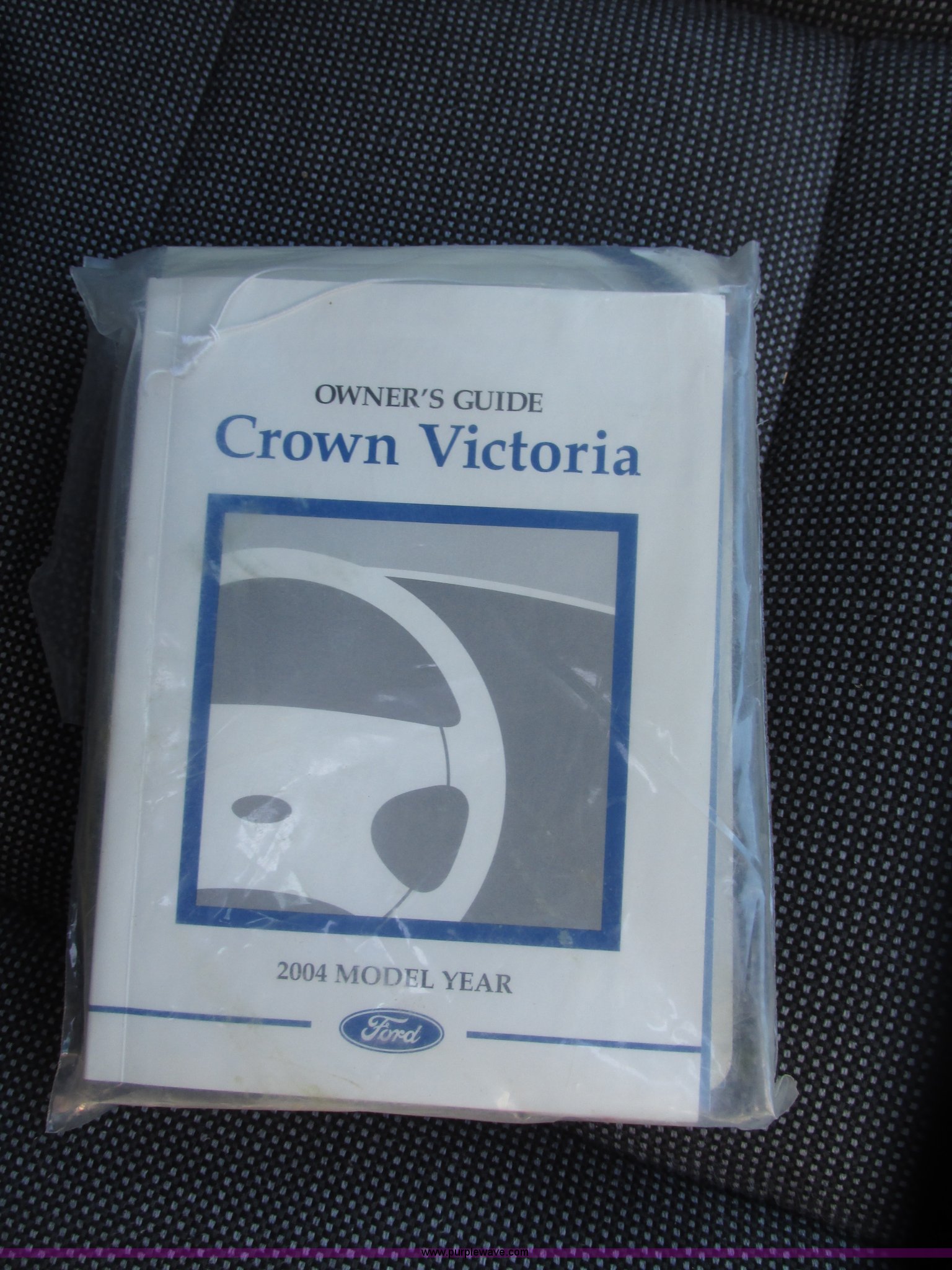 Purple Wave is selling a used Passenger Vehicle in Nebraska. This item is a 2004 Ford Crown Victoria Police Interceptor with the following: 101,429 miles on odometer, Miles may vary, unit is still in use, 4.6L V8 SOHC 16V gas engine, Automatic transmission, AC and heat, Tilt, Cruise, AM/FM/cassette, Power windows, locks, and mirrors, Cloth interior, Spot light, 225/60R16 tires, Highway triangles, fire extinguisher, and first aid kit are not included, Batteries dead, Interior/exterior cosmetic damage