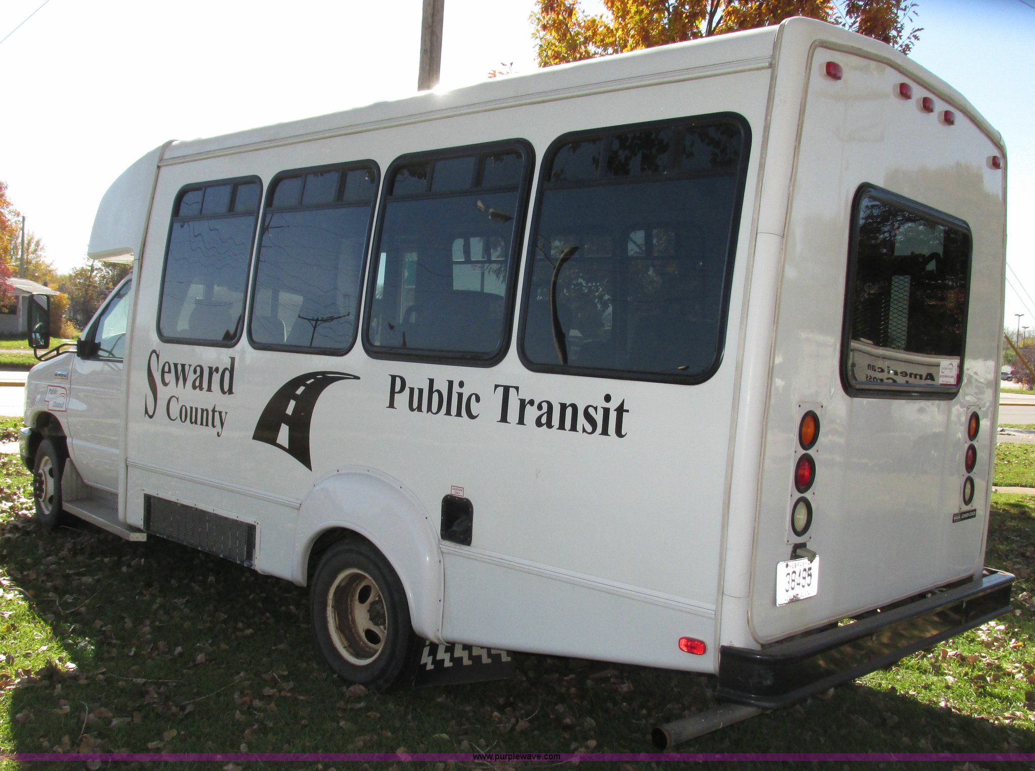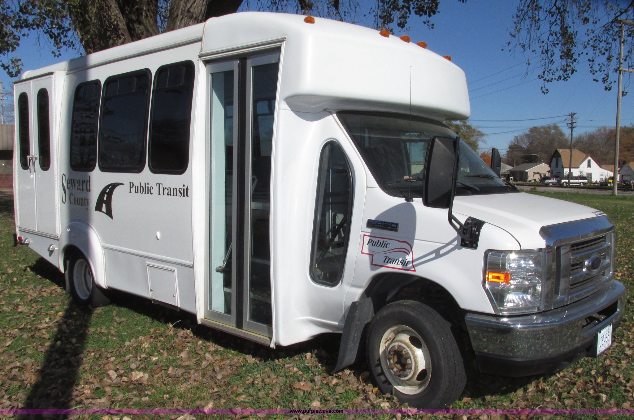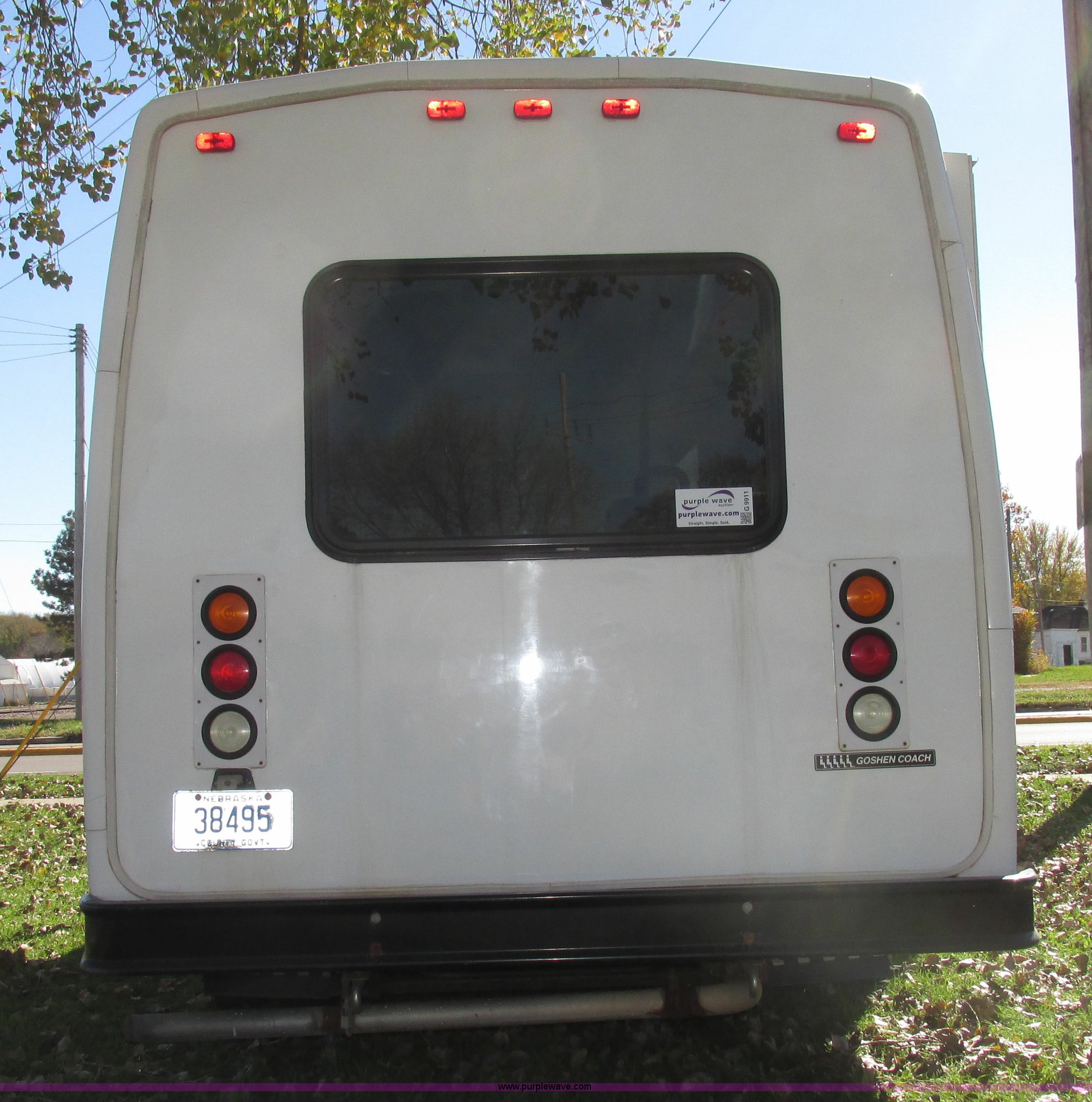 Purple Wave is selling a used Bus in Nebraska. This item is a 2008 Ford E450 Super Duty Goeshen coach bus with the following: 157,099 miles on odometer, 7,602 hours on meter, 6.8L V10 SOHC 20V gas engine, Automatic transmission, AC and heat, Tilt, Cruise, AM/FM, Overhead speakers, Manual windows and locks, Front and rear fan controls, Intermotive advanced fast idle system, Intermotive Intelligent lift system, 13 passenger capacity, Carrier rear air conditioner, Braun Millenium Series wheel chair lift, 2008 Model NL919F1B-2, 51"L x 34"W, 9" fold down ramp, 800 lbs maximum lift capacity, Inoperable remote control, Manual lift operable, Sure Lok wheelchair accessories, Block heater, Mud flaps, Highway triangles, Backup alarm, 158" wheelbase, Firestone LT225/75R16 tires, GVWR 14,500 lbs, FAWR 5,000 lbs, RAWR 9,500 lbs