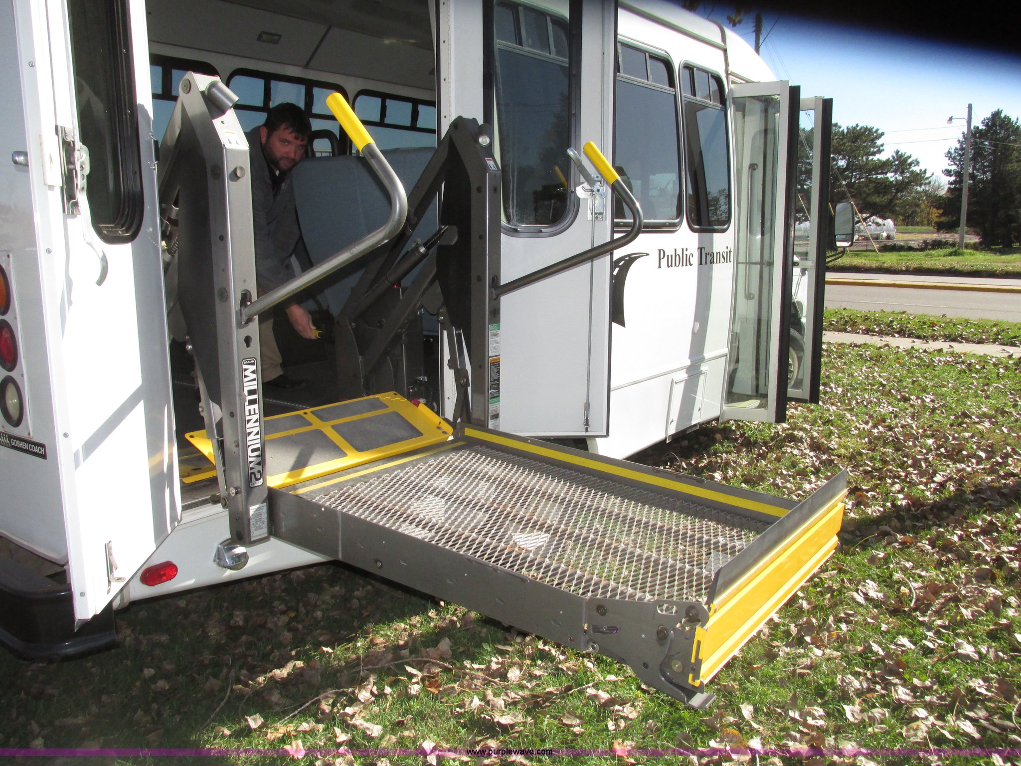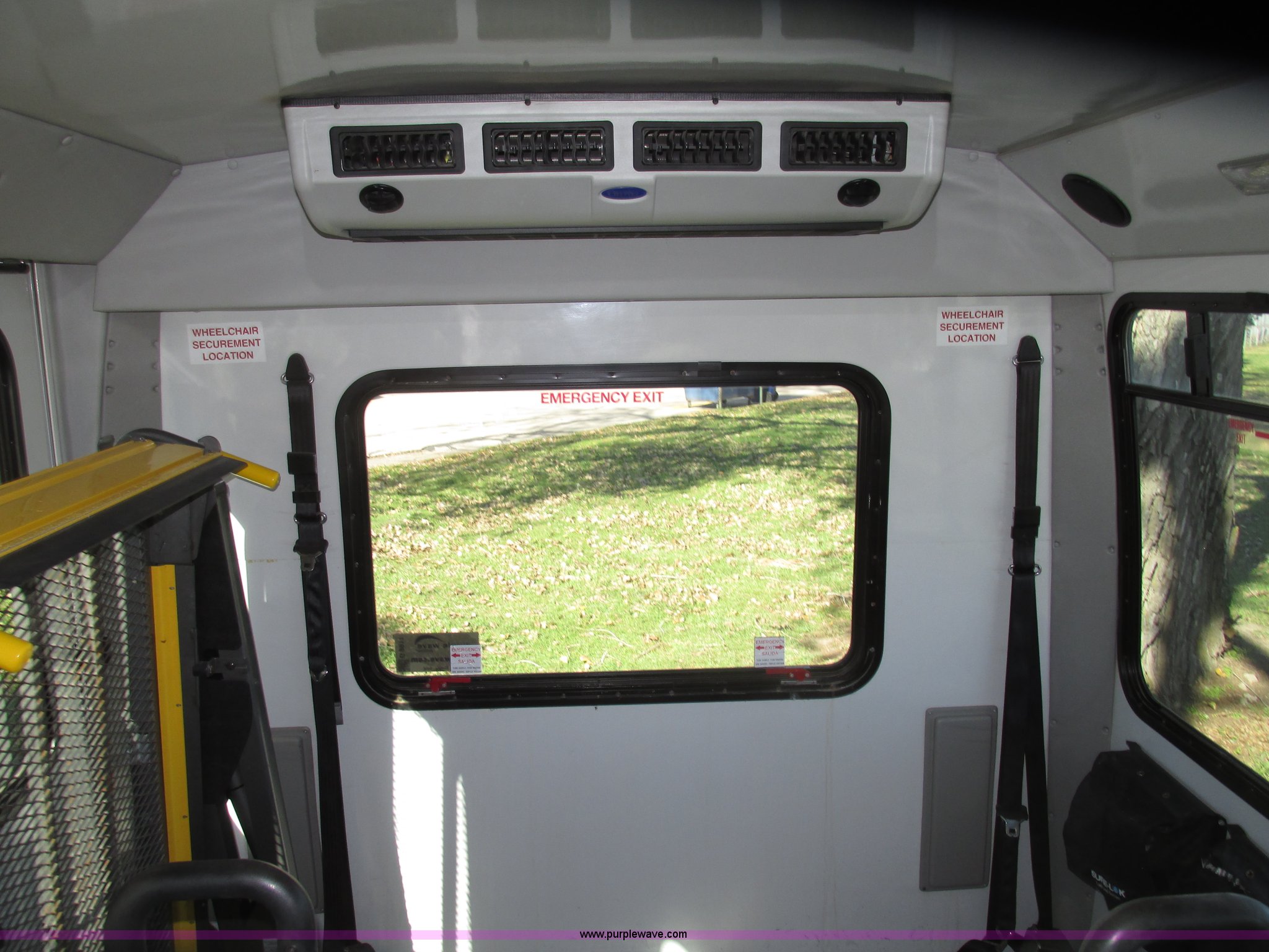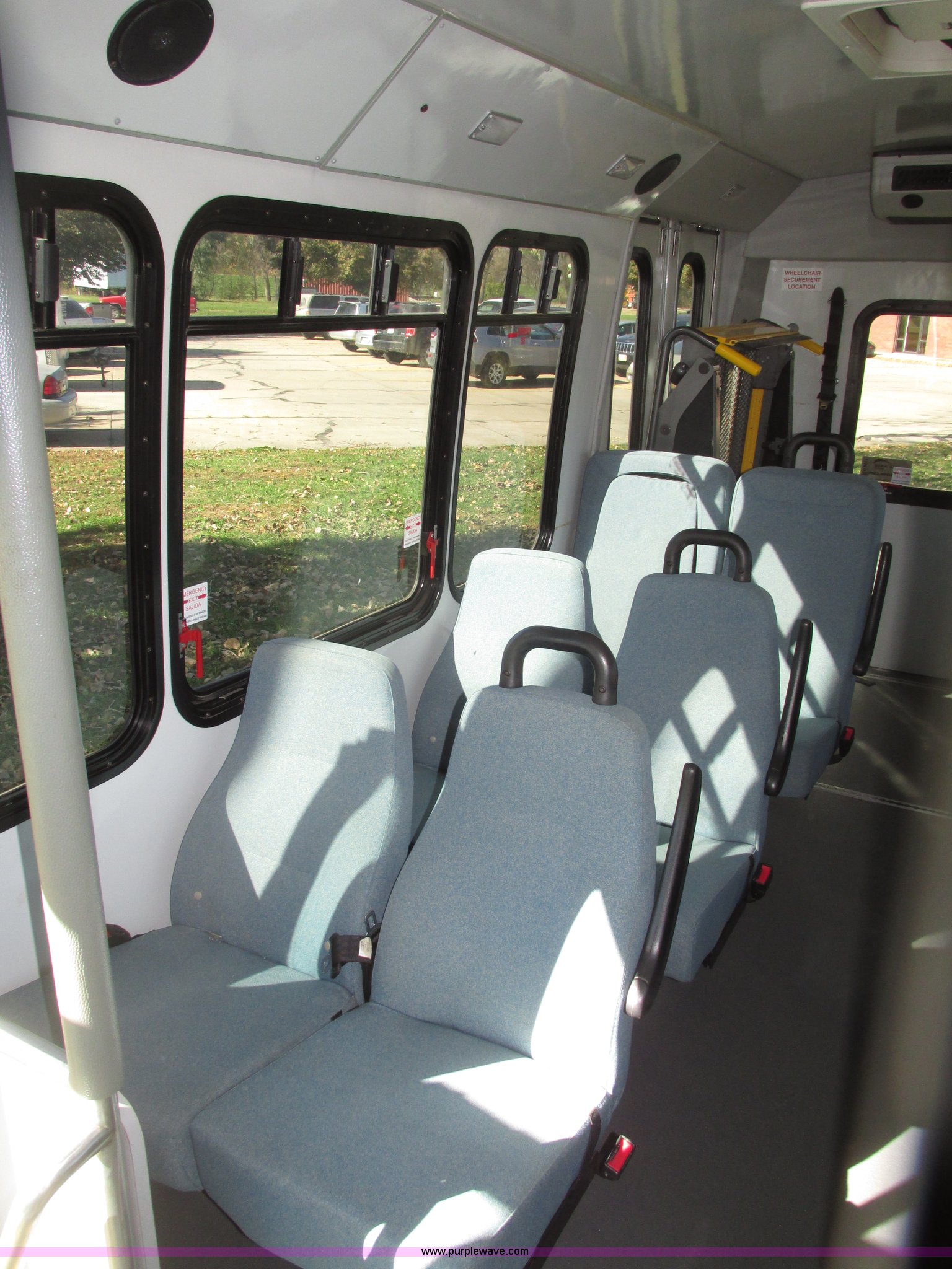 Purple Wave is selling a used Bus in Nebraska. This item is a 2008 Ford E450 Super Duty Goeshen coach bus with the following: 157,099 miles on odometer, 7,602 hours on meter, 6.8L V10 SOHC 20V gas engine, Automatic transmission, AC and heat, Tilt, Cruise, AM/FM, Overhead speakers, Manual windows and locks, Front and rear fan controls, Intermotive advanced fast idle system, Intermotive Intelligent lift system, 13 passenger capacity, Carrier rear air conditioner, Braun Millenium Series wheel chair lift, 2008 Model NL919F1B-2, 51"L x 34"W, 9" fold down ramp, 800 lbs maximum lift capacity, Inoperable remote control, Manual lift operable, Sure Lok wheelchair accessories, Block heater, Mud flaps, Highway triangles, Backup alarm, 158" wheelbase, Firestone LT225/75R16 tires, GVWR 14,500 lbs, FAWR 5,000 lbs, RAWR 9,500 lbs