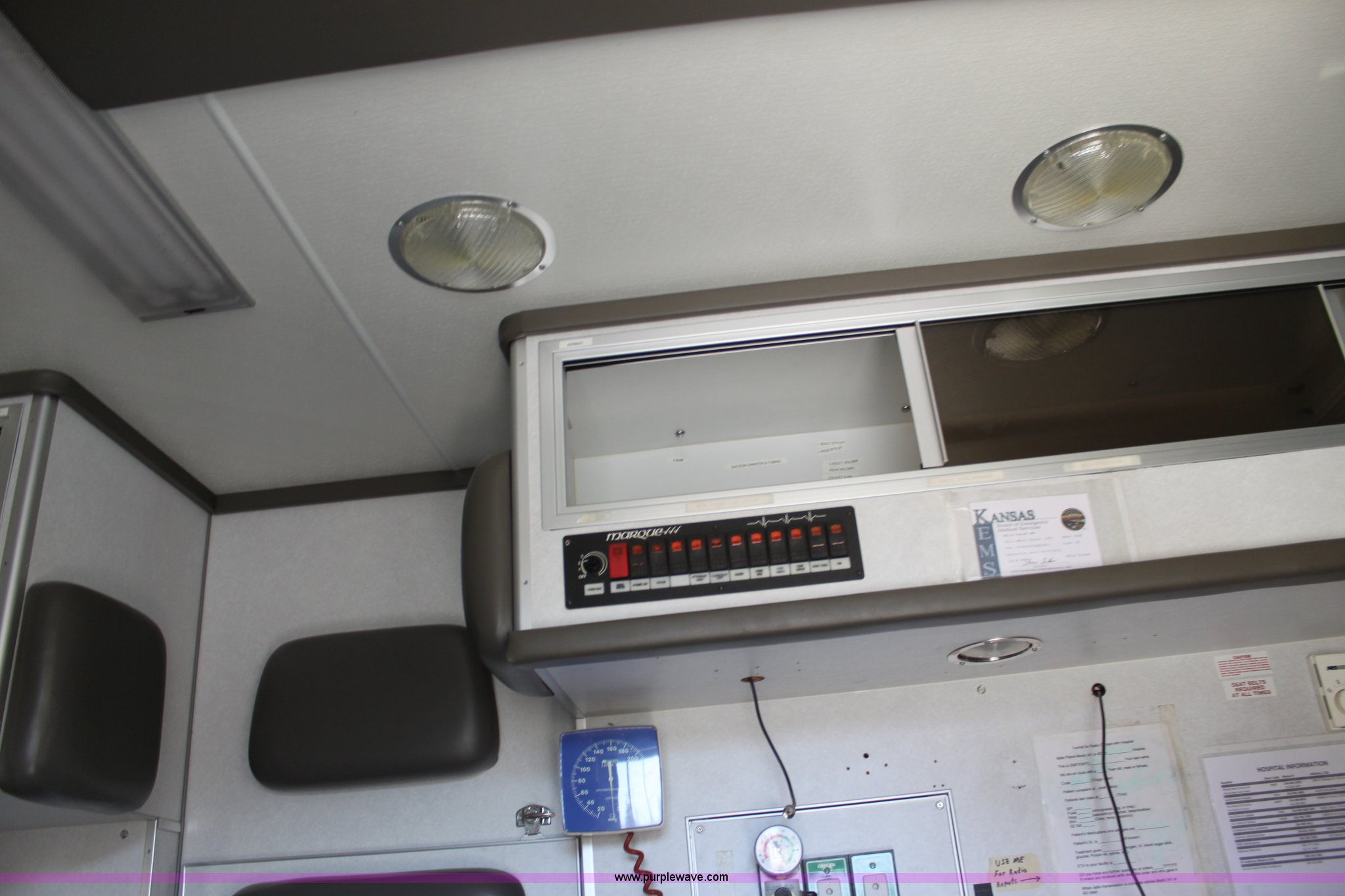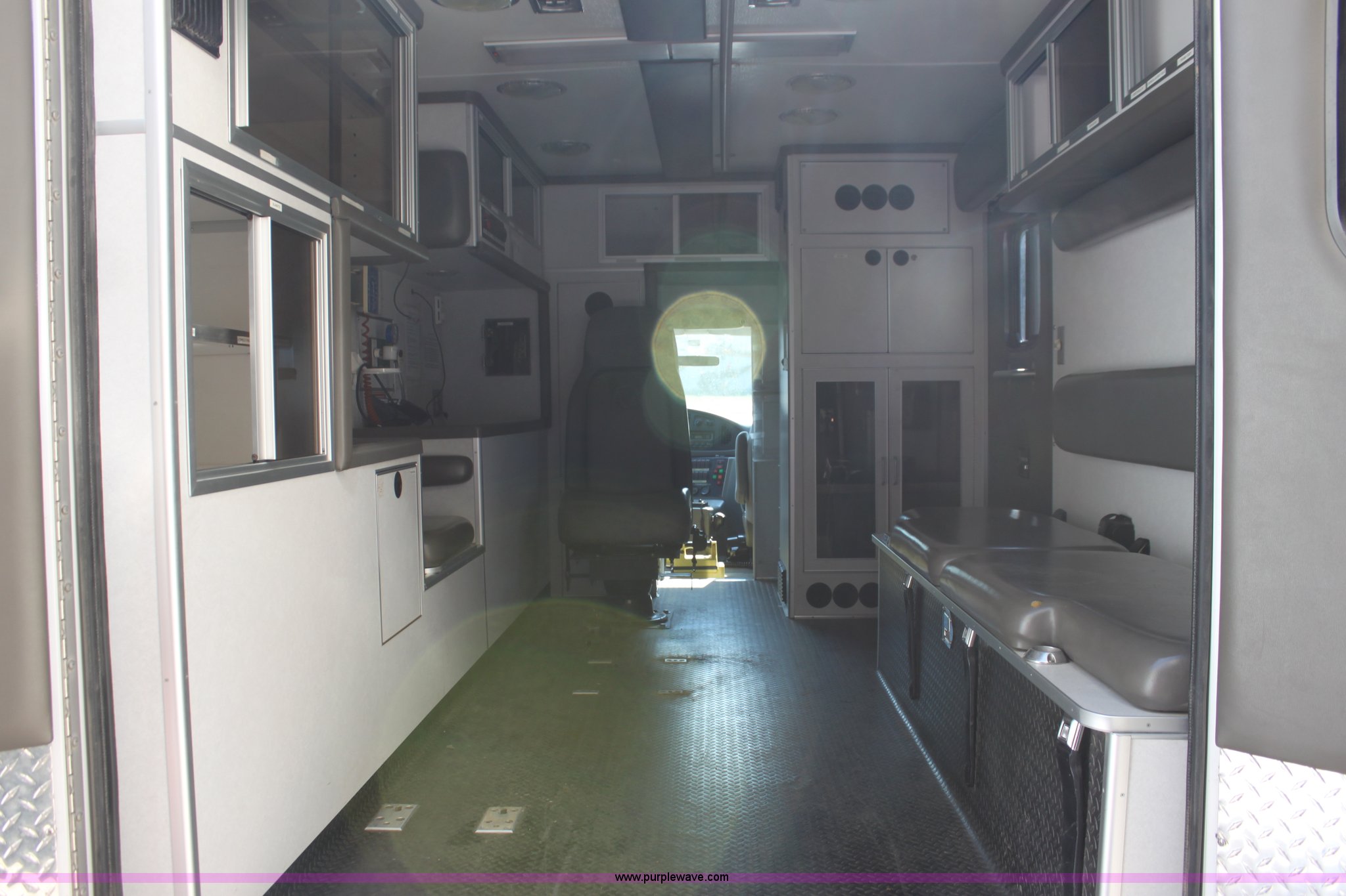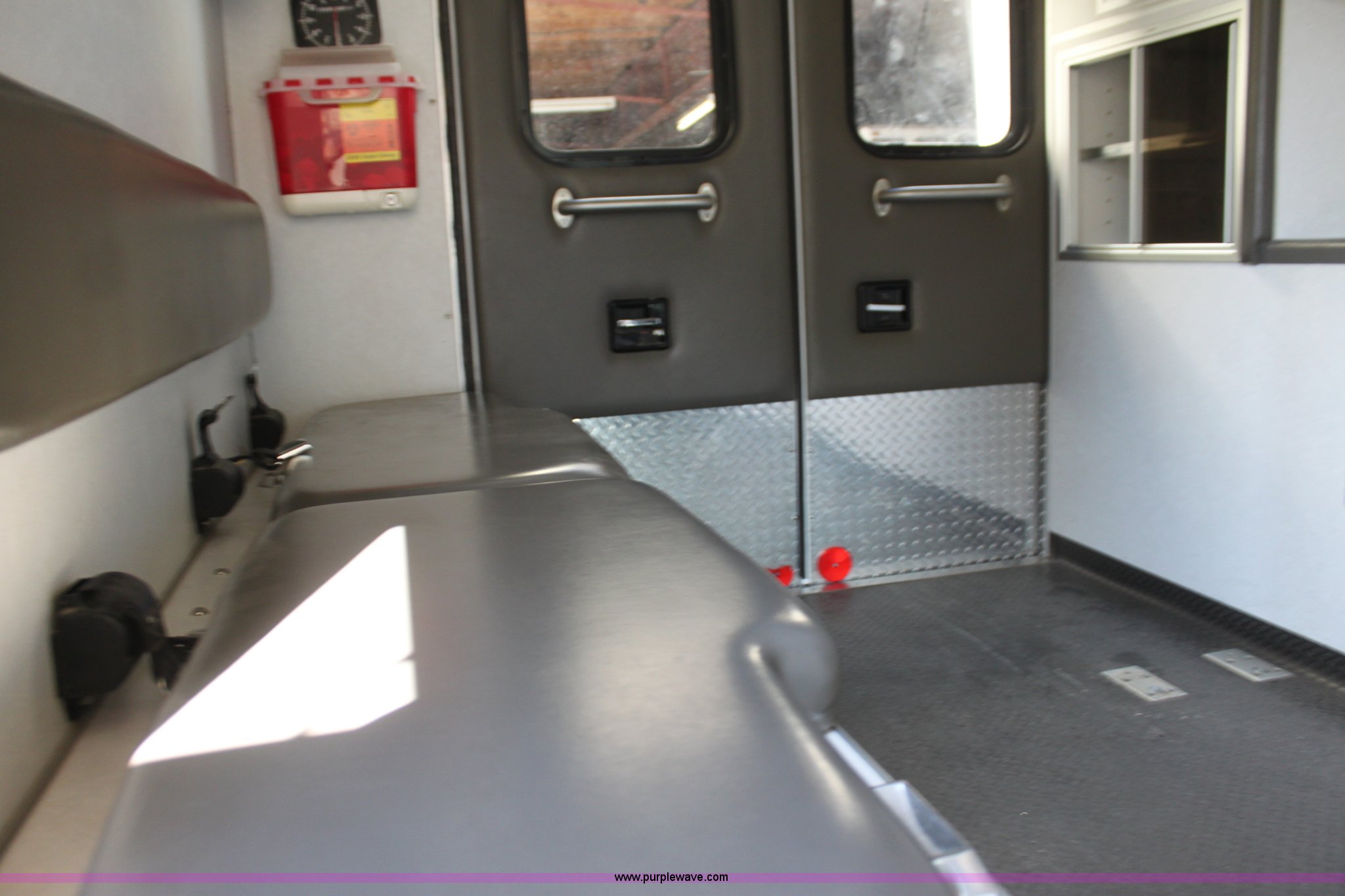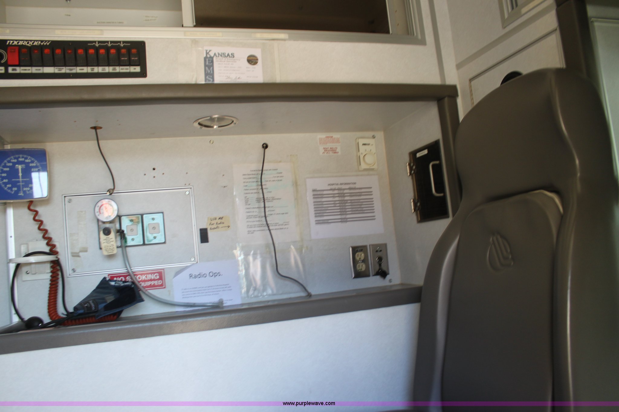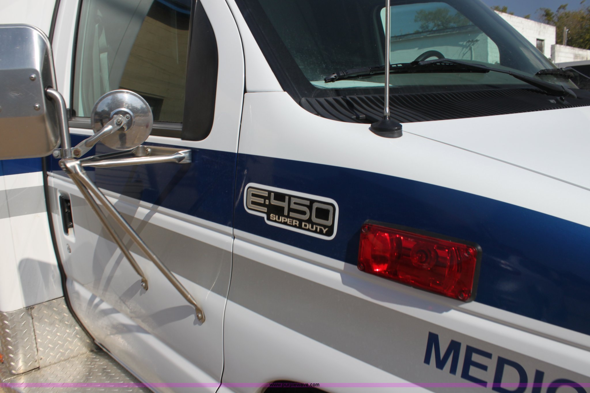 Purple Wave is selling a used Fire Truck or Emergency Vehicle in Kansas. This item is a 2002 Ford 801 ambulance with the following: 41,605 miles on odometer, 2,934 hours on meter, 7.3L V8 OHV 16V diesel engine, Automatic transmission, AC and heat, Tilt, Cruise, AM/FM, Power windows and locks, Emergency lights and sirens, 225/75R16 tires