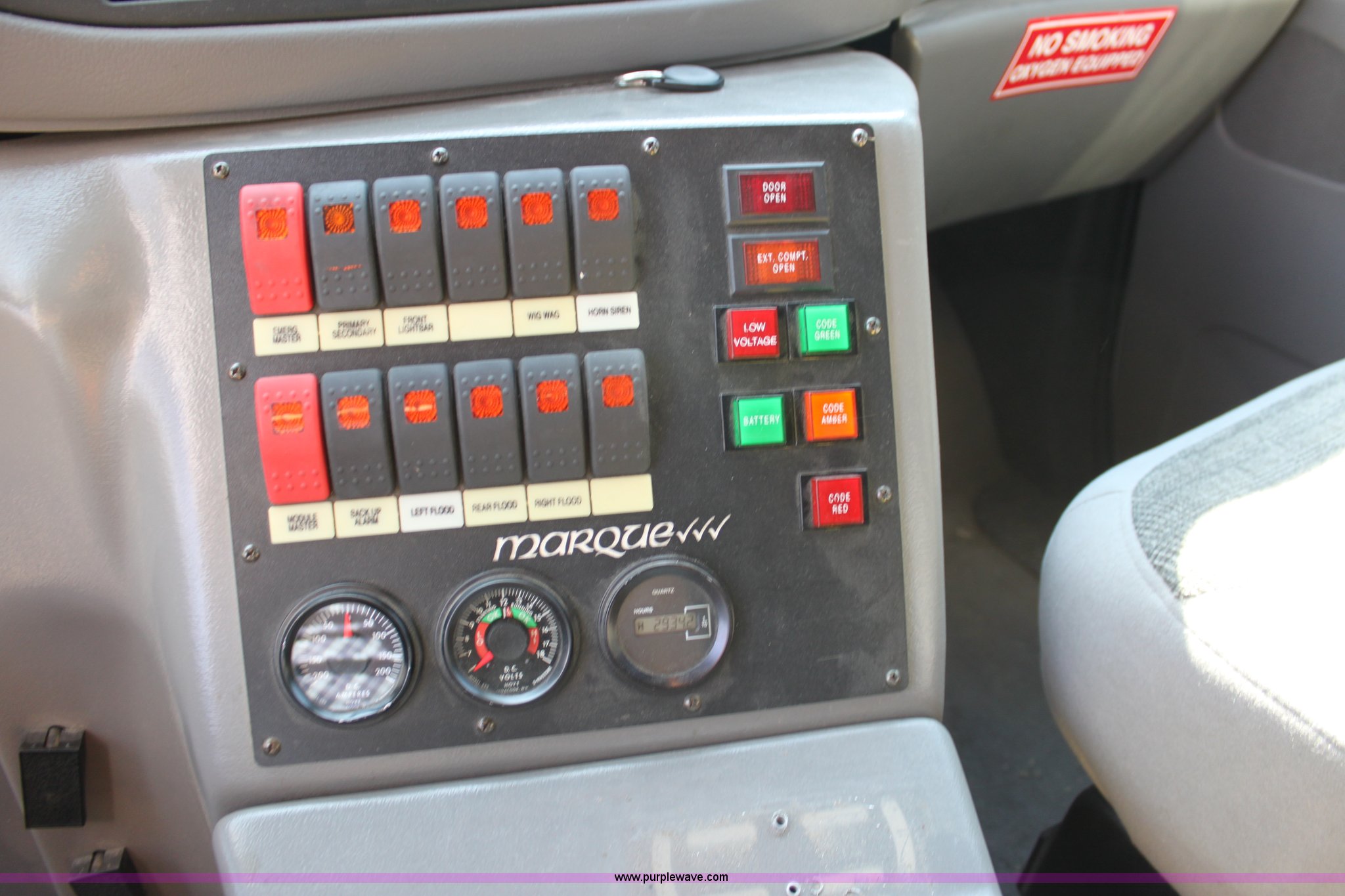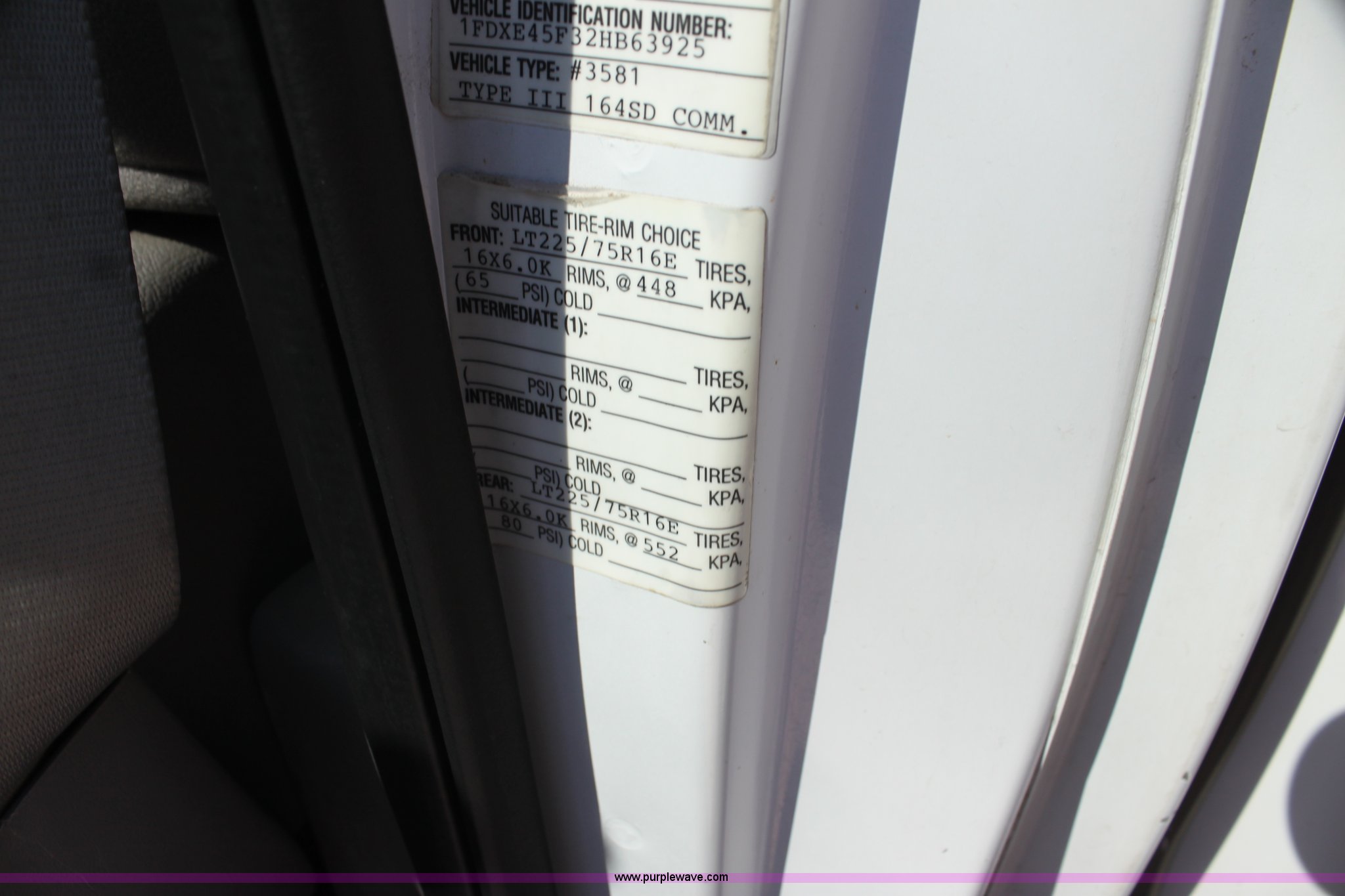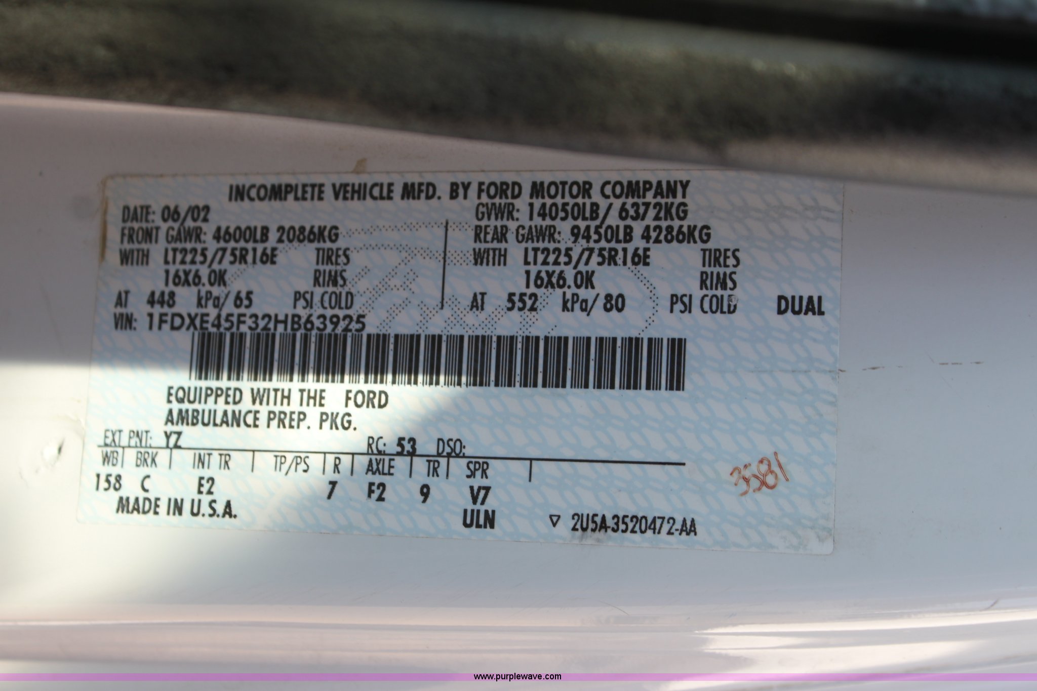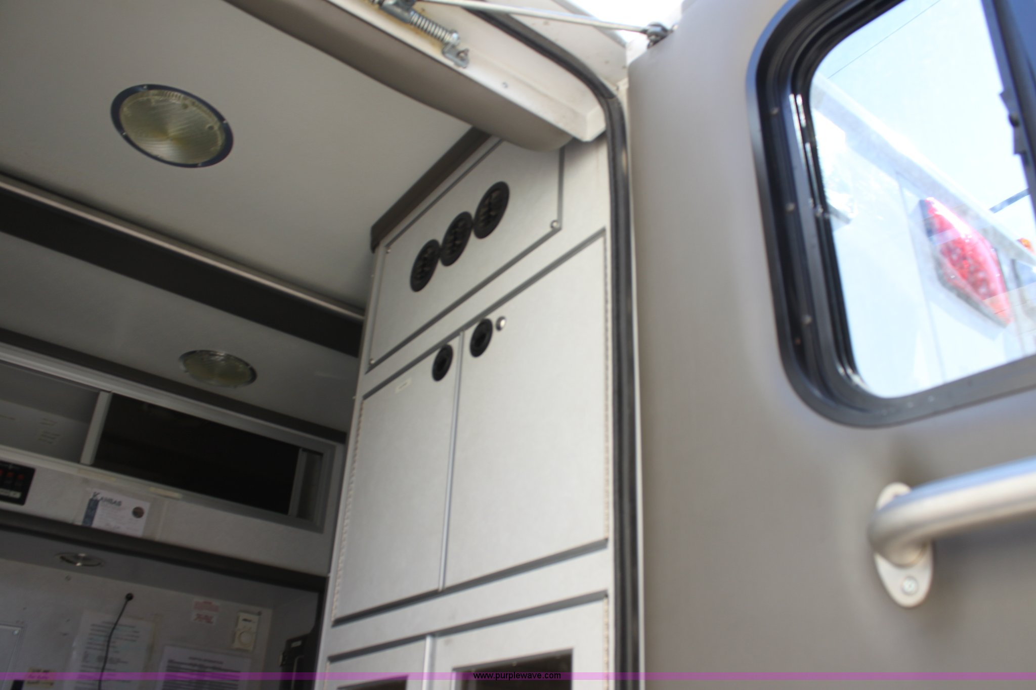 Purple Wave is selling a used Fire Truck or Emergency Vehicle in Kansas. This item is a 2002 Ford 801 ambulance with the following: 41,605 miles on odometer, 2,934 hours on meter, 7.3L V8 OHV 16V diesel engine, Automatic transmission, AC and heat, Tilt, Cruise, AM/FM, Power windows and locks, Emergency lights and sirens, 225/75R16 tires