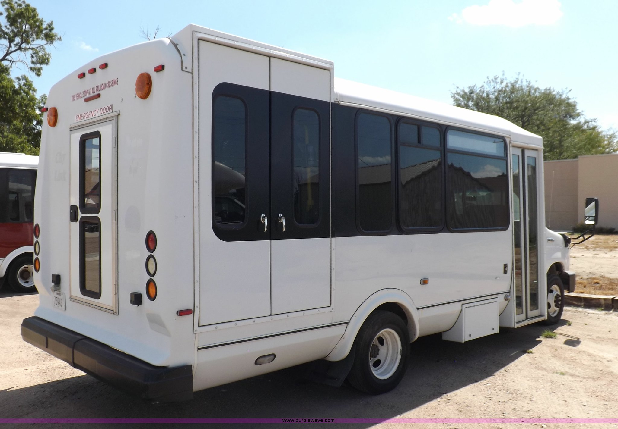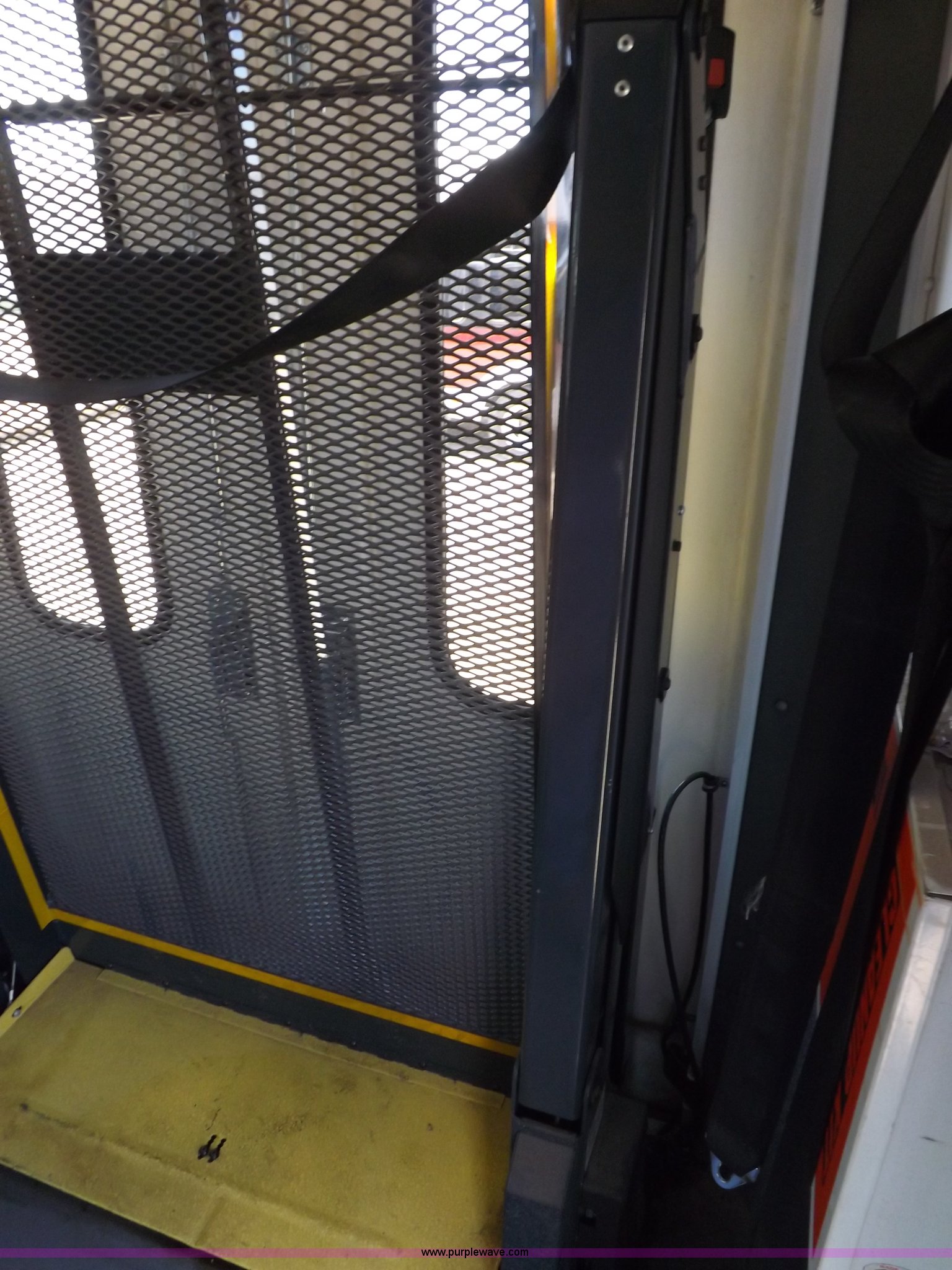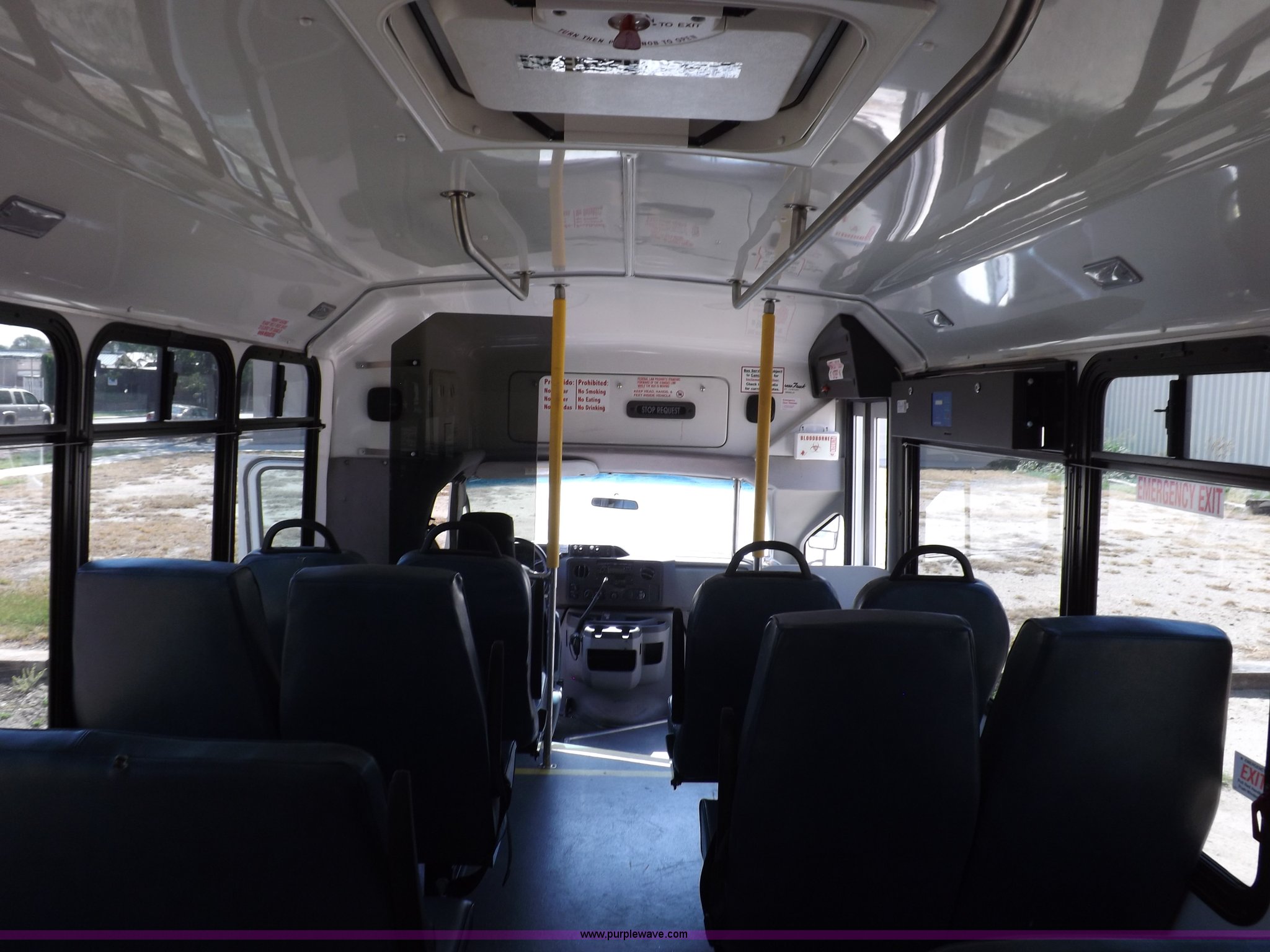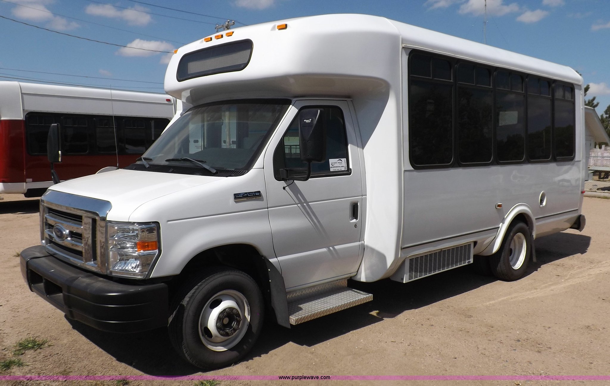 Purple Wave is selling a used Bus in Kansas. This item is a 2010 Ford 801 bus with the following: 115,597 actual miles, 6.8L V10 SOHC 20V gas engine, Automatic transmission, AC and heat, Tilt, Cruise, AM/FM/CD, Manual windows and locks, Power driver seat, Vinyl interior, Eldorado National bus package, Front and rear AC and heat, 16 passenger capacity, (14) standard seats, (2) handicapped positions, Ricon wheelchair lift, (4) emergency egress, (2) side, Top, Rear, Intercom system, Floor mounted vault, Route signs on front and side, Echo vision system, Door interlock system, Driver running board, Stop request, Ceiling hand rail, 225/75R16 tires, Driver seat torn