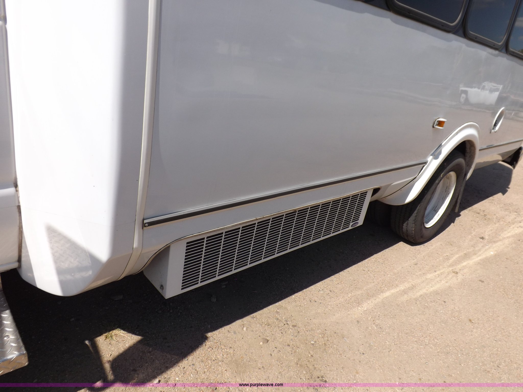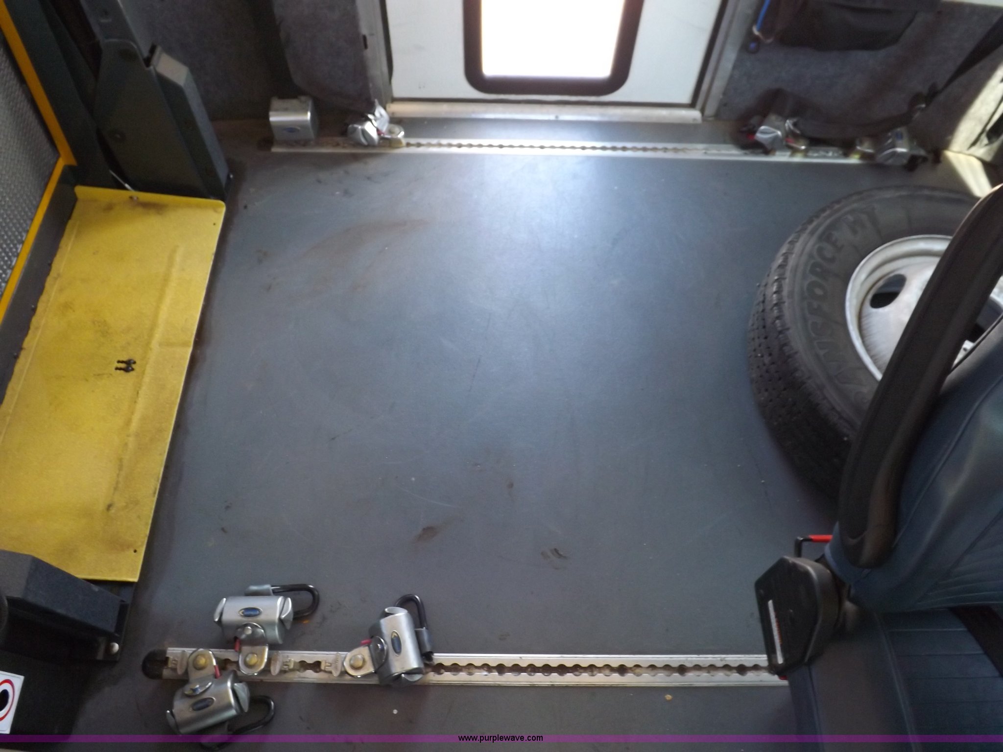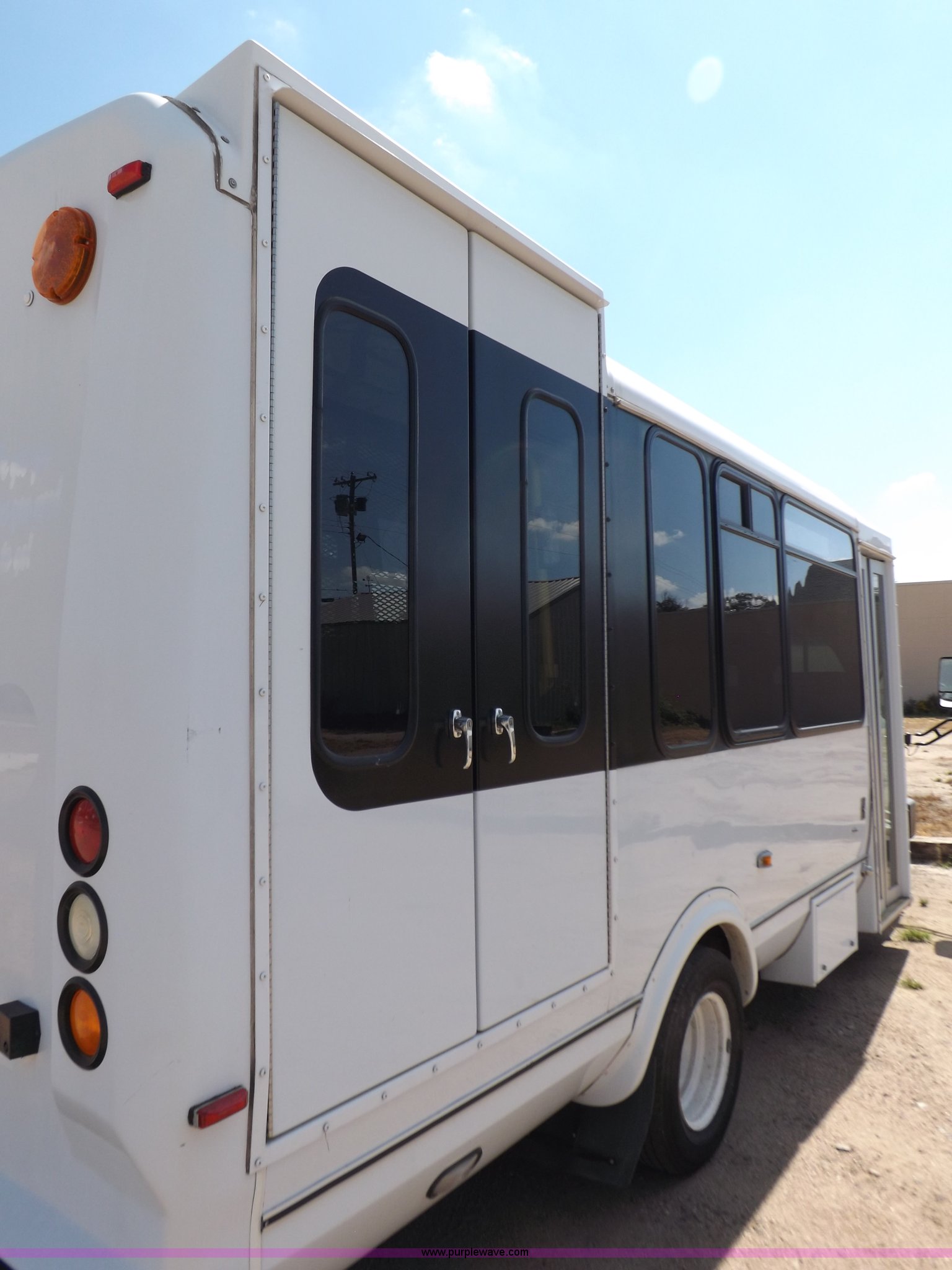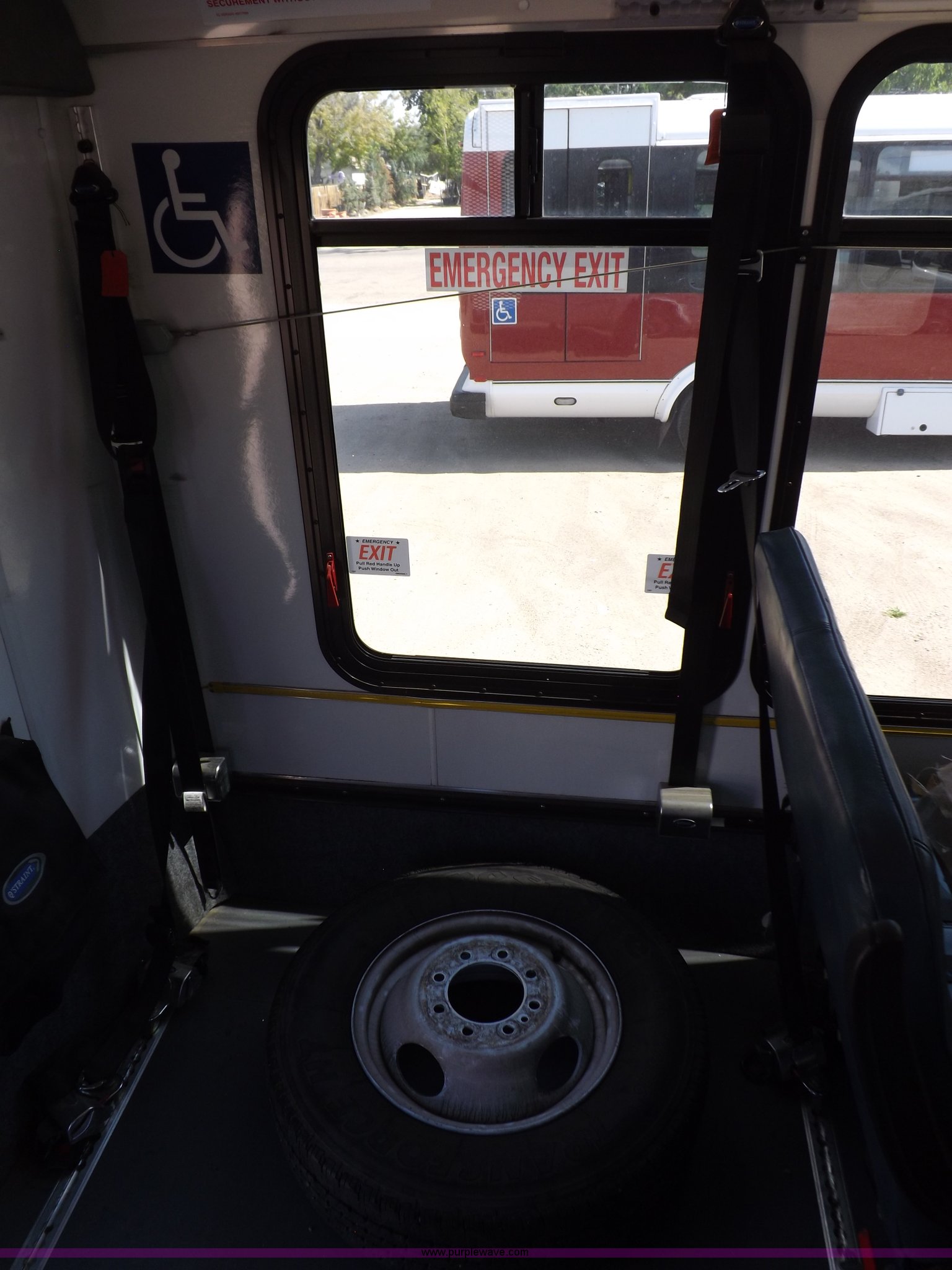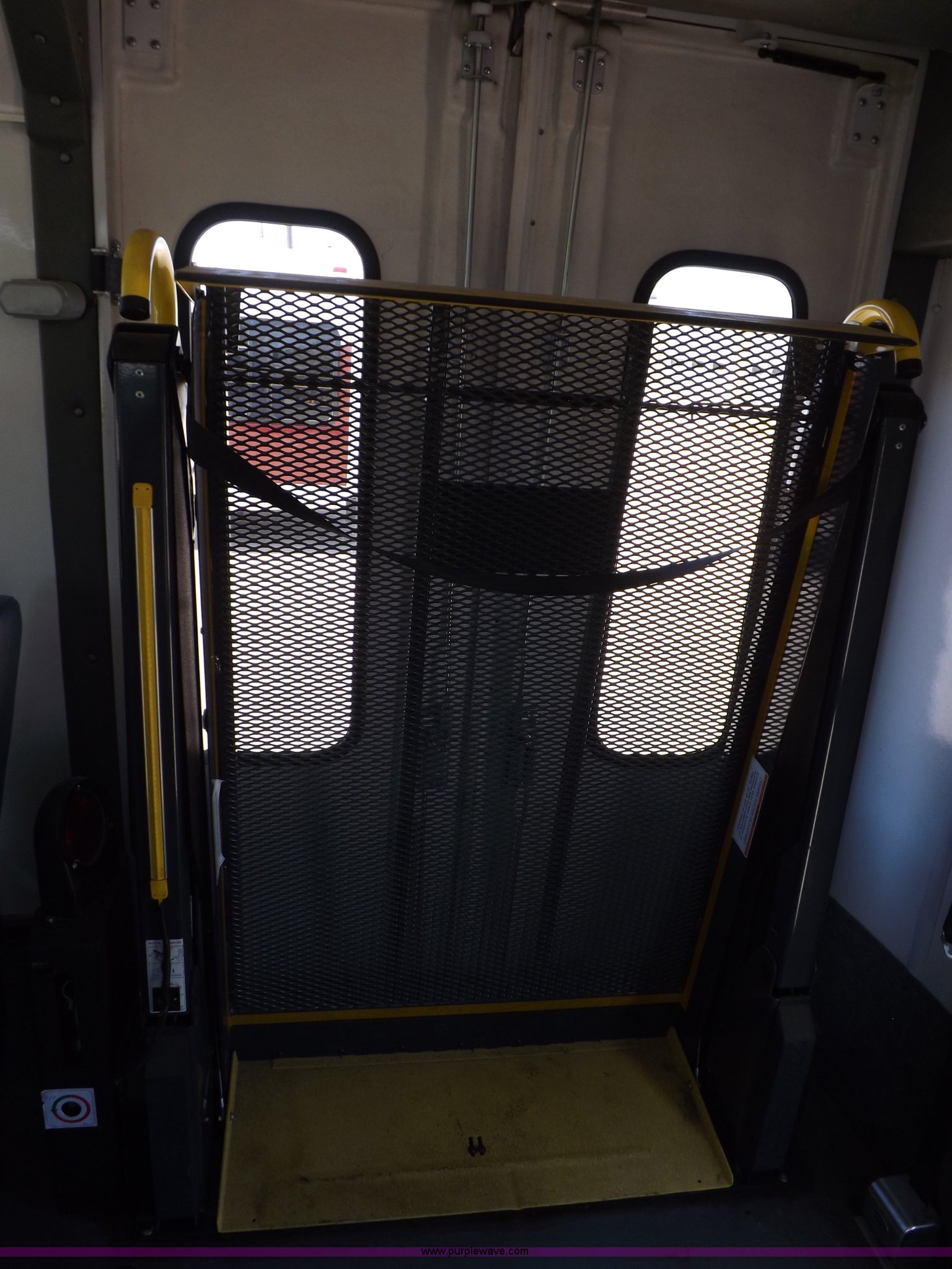 Purple Wave is selling a used Bus in Kansas. This item is a 2010 Ford 801 bus with the following: 115,597 actual miles, 6.8L V10 SOHC 20V gas engine, Automatic transmission, AC and heat, Tilt, Cruise, AM/FM/CD, Manual windows and locks, Power driver seat, Vinyl interior, Eldorado National bus package, Front and rear AC and heat, 16 passenger capacity, (14) standard seats, (2) handicapped positions, Ricon wheelchair lift, (4) emergency egress, (2) side, Top, Rear, Intercom system, Floor mounted vault, Route signs on front and side, Echo vision system, Door interlock system, Driver running board, Stop request, Ceiling hand rail, 225/75R16 tires, Driver seat torn