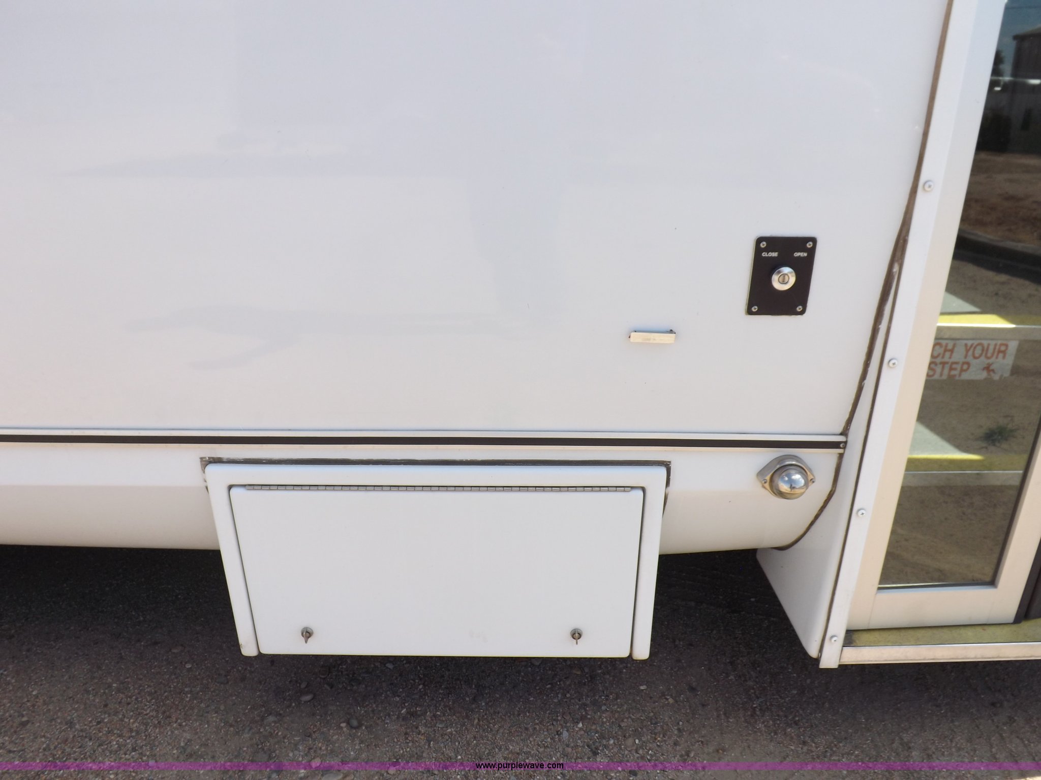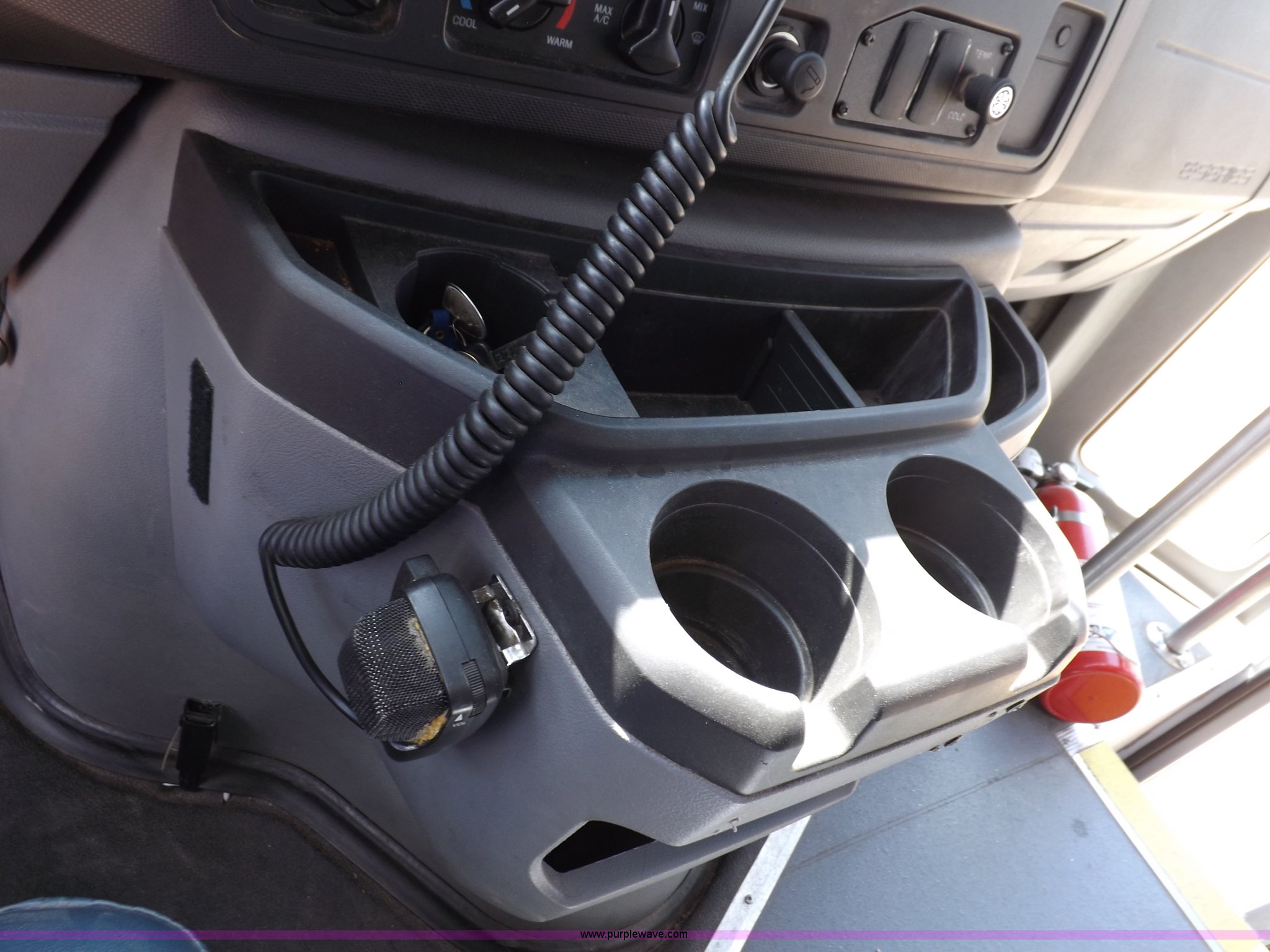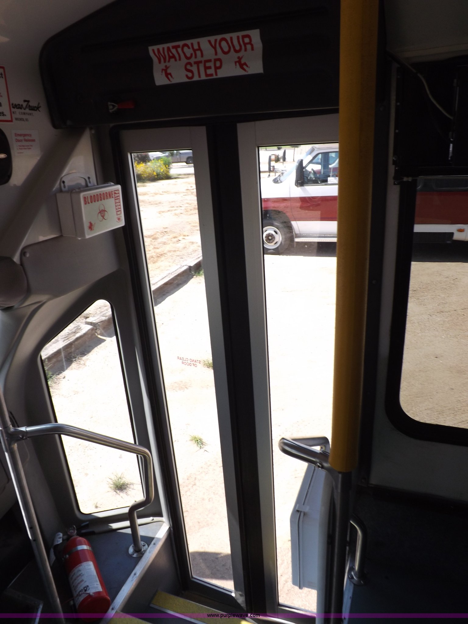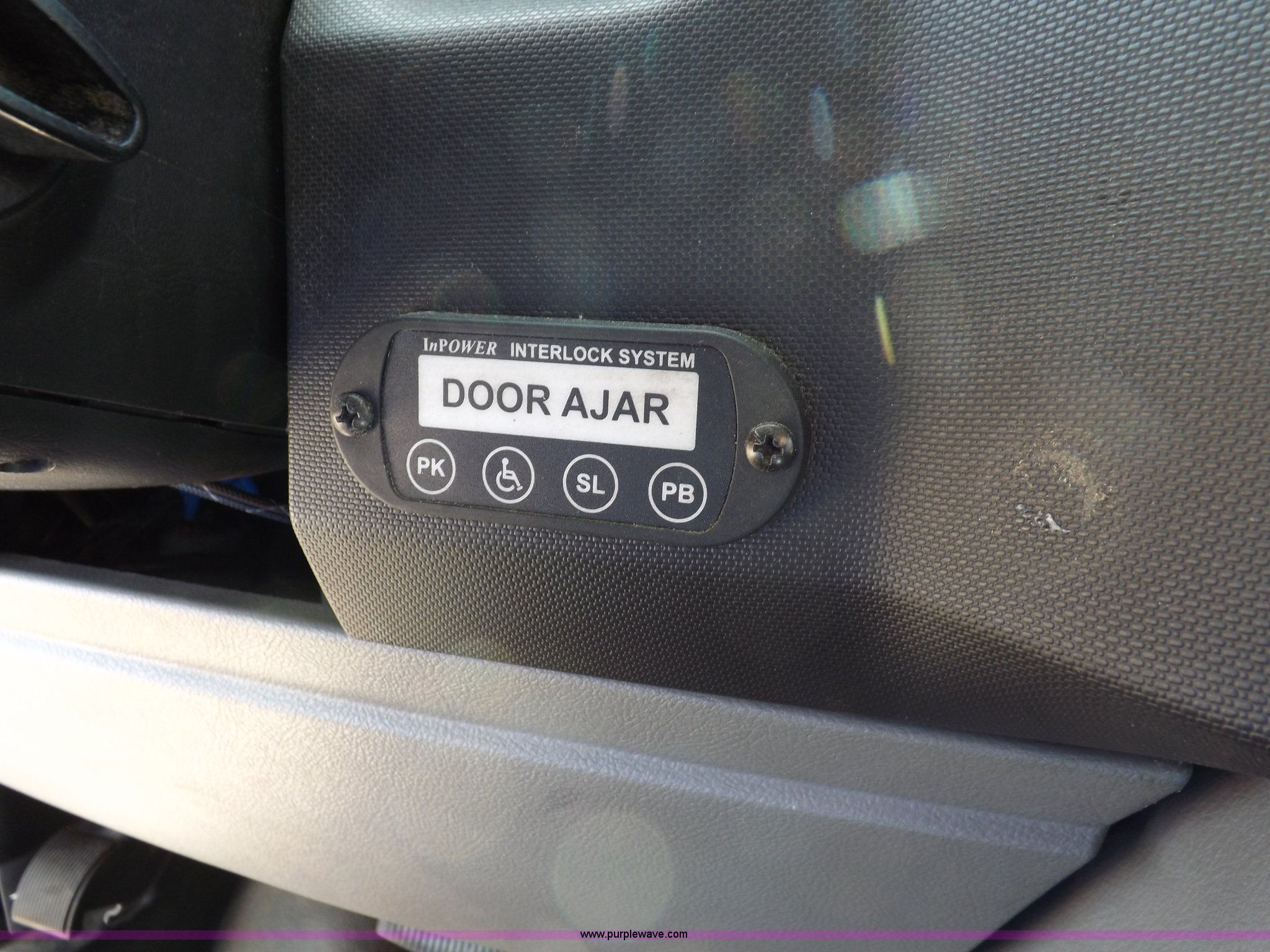 Purple Wave is selling a used Bus in Kansas. This item is a 2010 Ford 801 bus with the following: 115,597 actual miles, 6.8L V10 SOHC 20V gas engine, Automatic transmission, AC and heat, Tilt, Cruise, AM/FM/CD, Manual windows and locks, Power driver seat, Vinyl interior, Eldorado National bus package, Front and rear AC and heat, 16 passenger capacity, (14) standard seats, (2) handicapped positions, Ricon wheelchair lift, (4) emergency egress, (2) side, Top, Rear, Intercom system, Floor mounted vault, Route signs on front and side, Echo vision system, Door interlock system, Driver running board, Stop request, Ceiling hand rail, 225/75R16 tires, Driver seat torn
