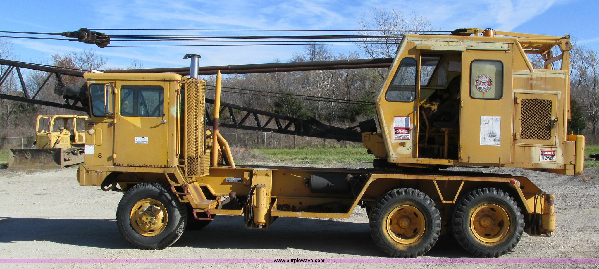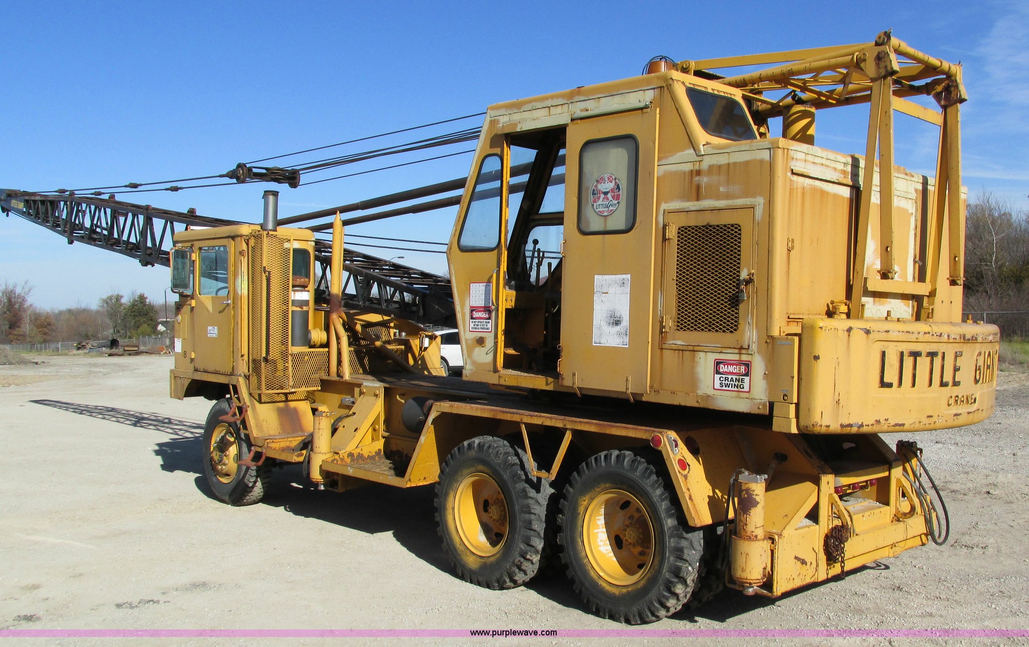 Purple Wave is selling a used Truck Crane in Iowa. This item is a 1982 Little Giant LG4866 crane with the following: 1,188 miles on odometer, Detroit Diesel Series 71 diesel engine, Ten speed manual transmission, Six wheel drive, Locking power divider, Heat, Model 48 crane, Detroit Series 53 diesel engine, 596 hours on meter, Cab heat, 20 ton capacity, 40'L angle boom, (4) hydraulic outriggers, Serial 488253, Single fuel tank, Spring suspension, Air brakes, 11.00R20 tires, GVWR 58,000 lbs, FAWR 11,840 lbs, IAWR 20,760 lbs, RAWR 20,760 lbs, Parts catalog, maintenance, operators, and service manuals, View 2014 inspection report, Serial LG8232