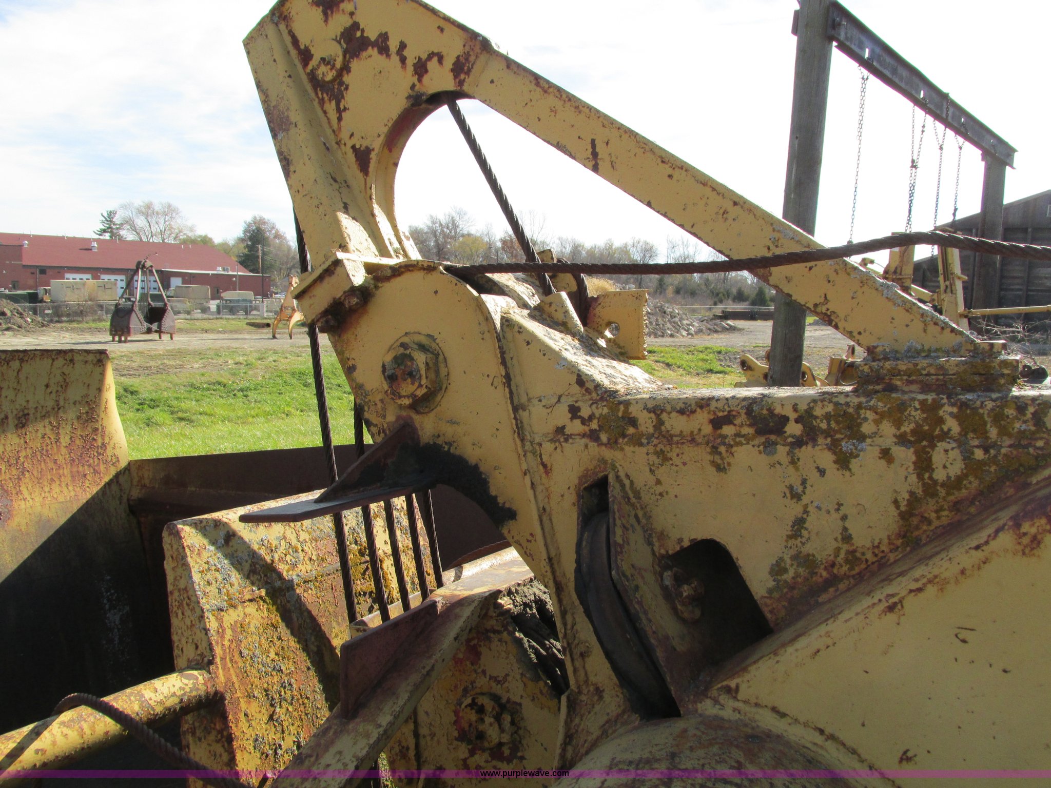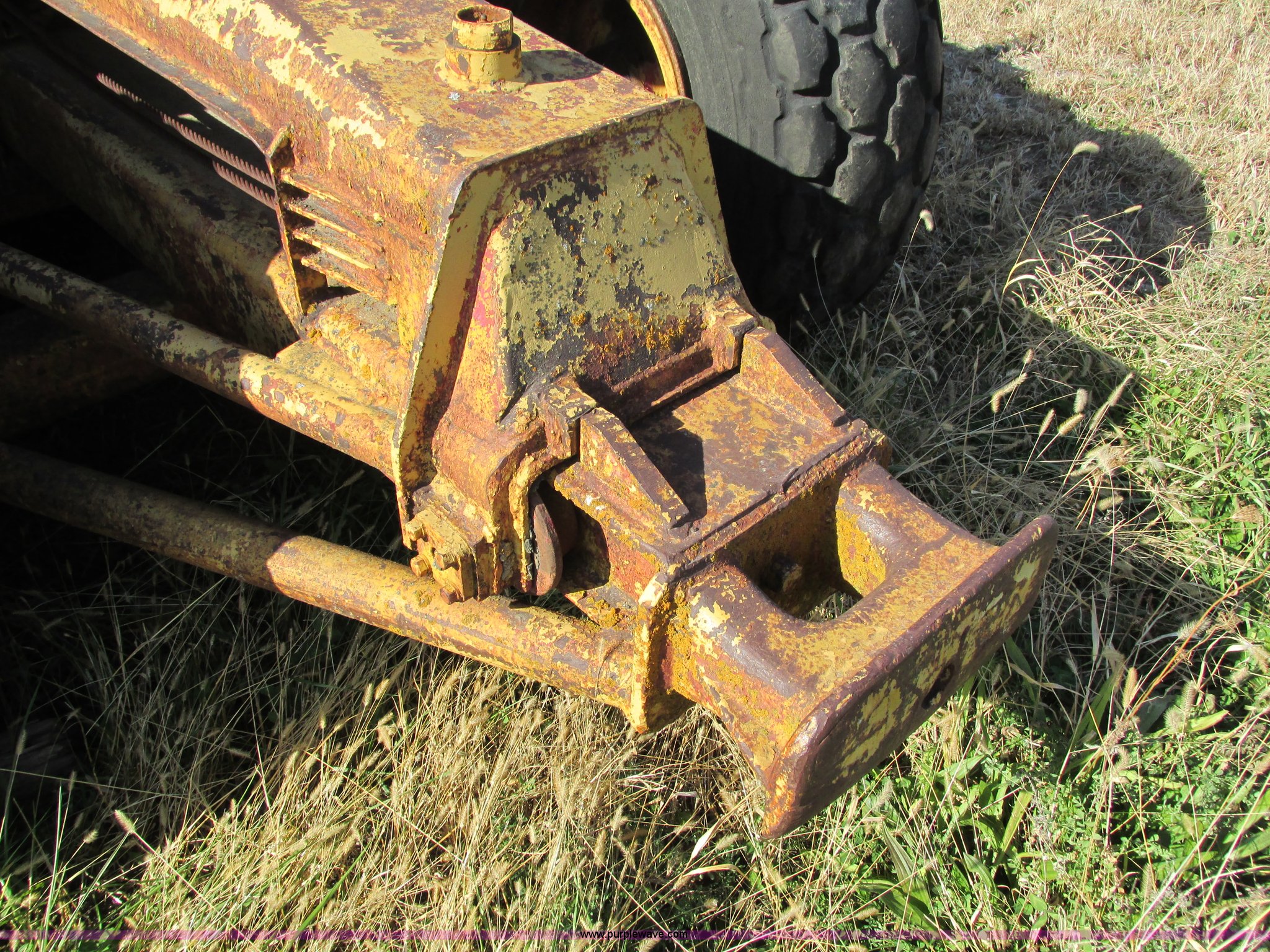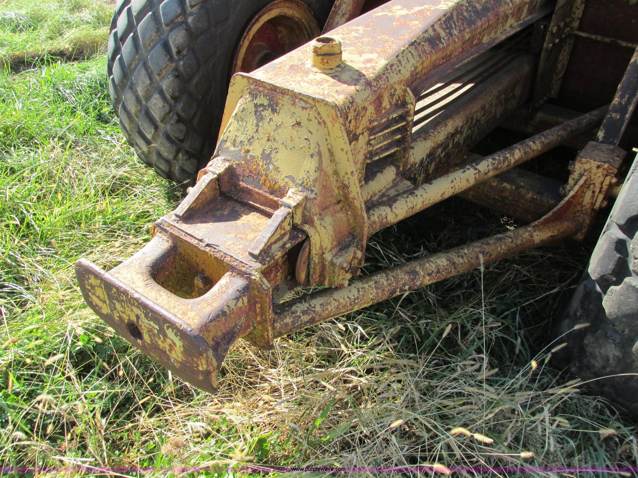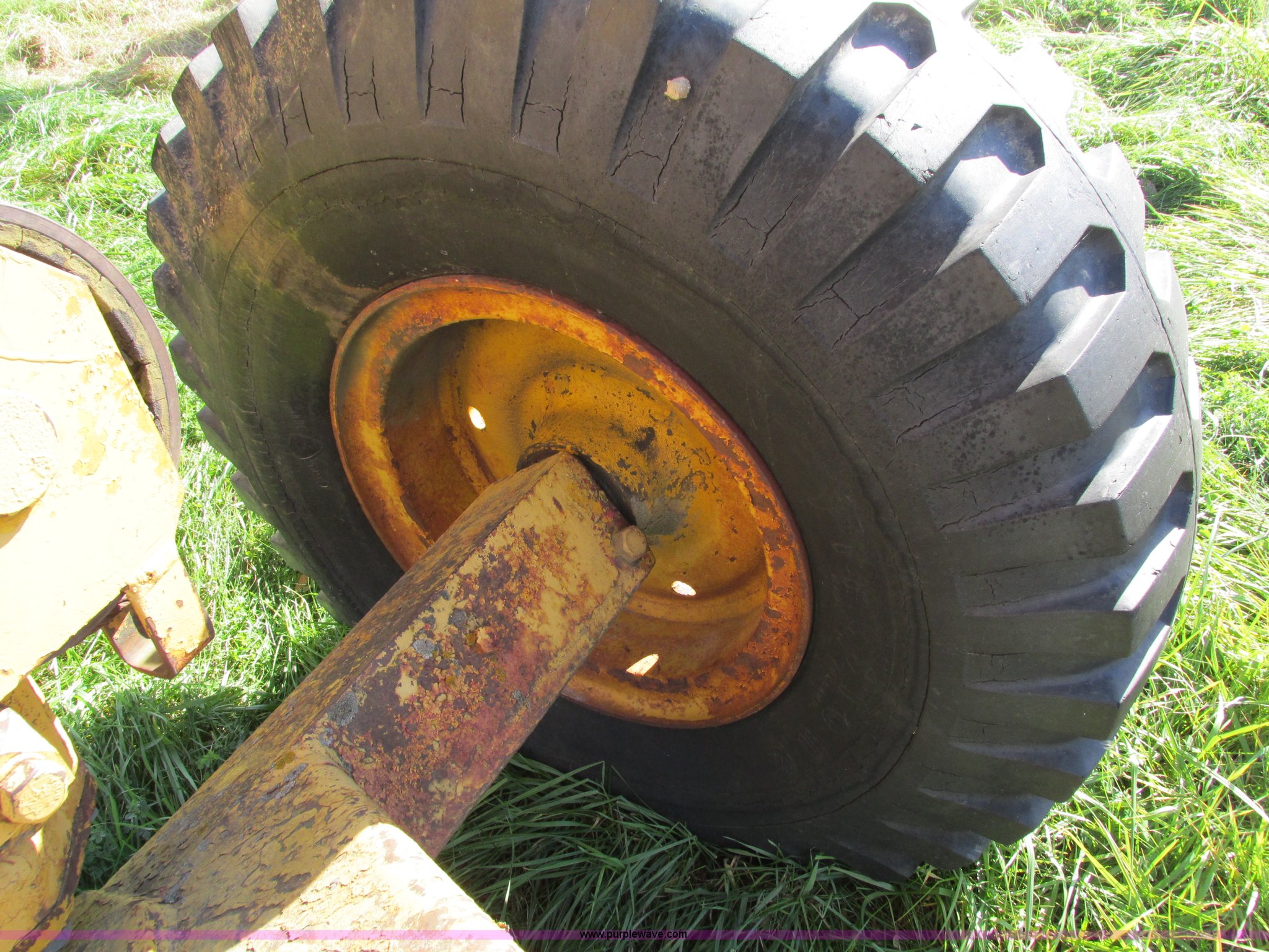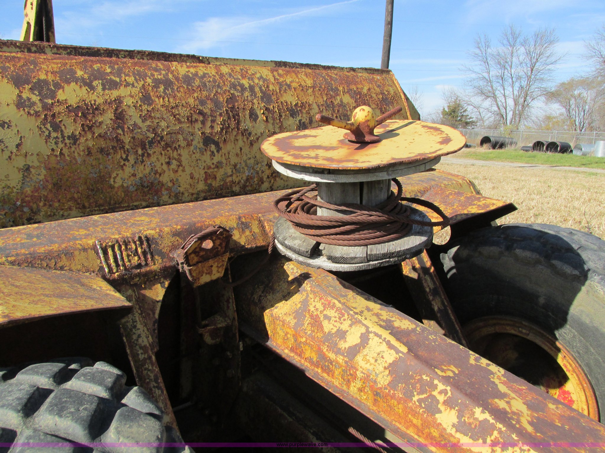 Purple Wave is selling a used Pull Type Scraper in Iowa. This item is a Caterpillar 60 pull scraper with the following: Seven cubic yard leveled capacity, Nine cubic yard heaped capacity, Cable controls, Three piece bolt-on cutting edge, 14.00-20 front tires, 16.00-20 rear tires, Parts manual included, Serial 2W5074