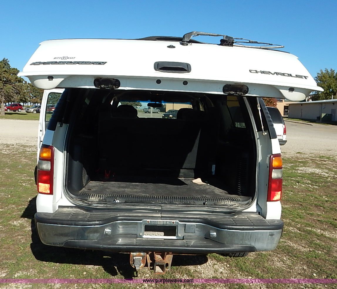 Purple Wave is selling a used Passenger Vehicle in Kansas. This item is a 2001 Chevrolet Suburban C1500 LS SUV with the following: 210,797 miles on odometer, 5.3L V8 16V OHV gas engine, Automatic transmission, AC and heat, Tilt, Cruise, AM/FM, Power windows, locks, mirrors, and seats, Cloth interior, Heated mirrors, Front and rear climate controls, DeeZee running boards, Front tow hooks, Luggage rack, Receiver hitch, Trailer wiring, 245/75R16 tires, Service engine light on, Decals will be removed prior to auction date, Rust
