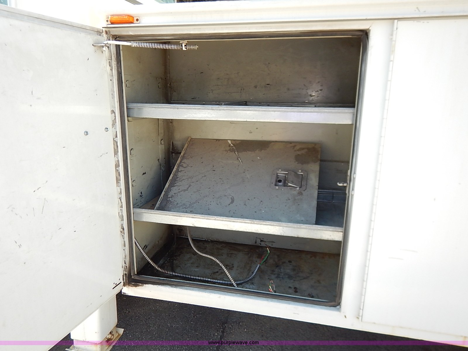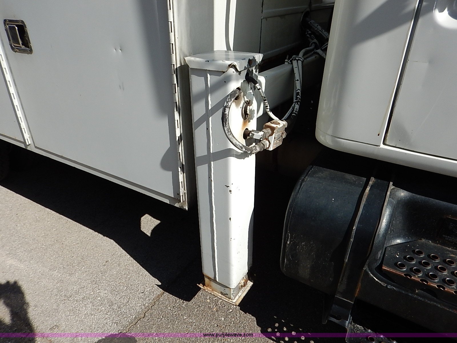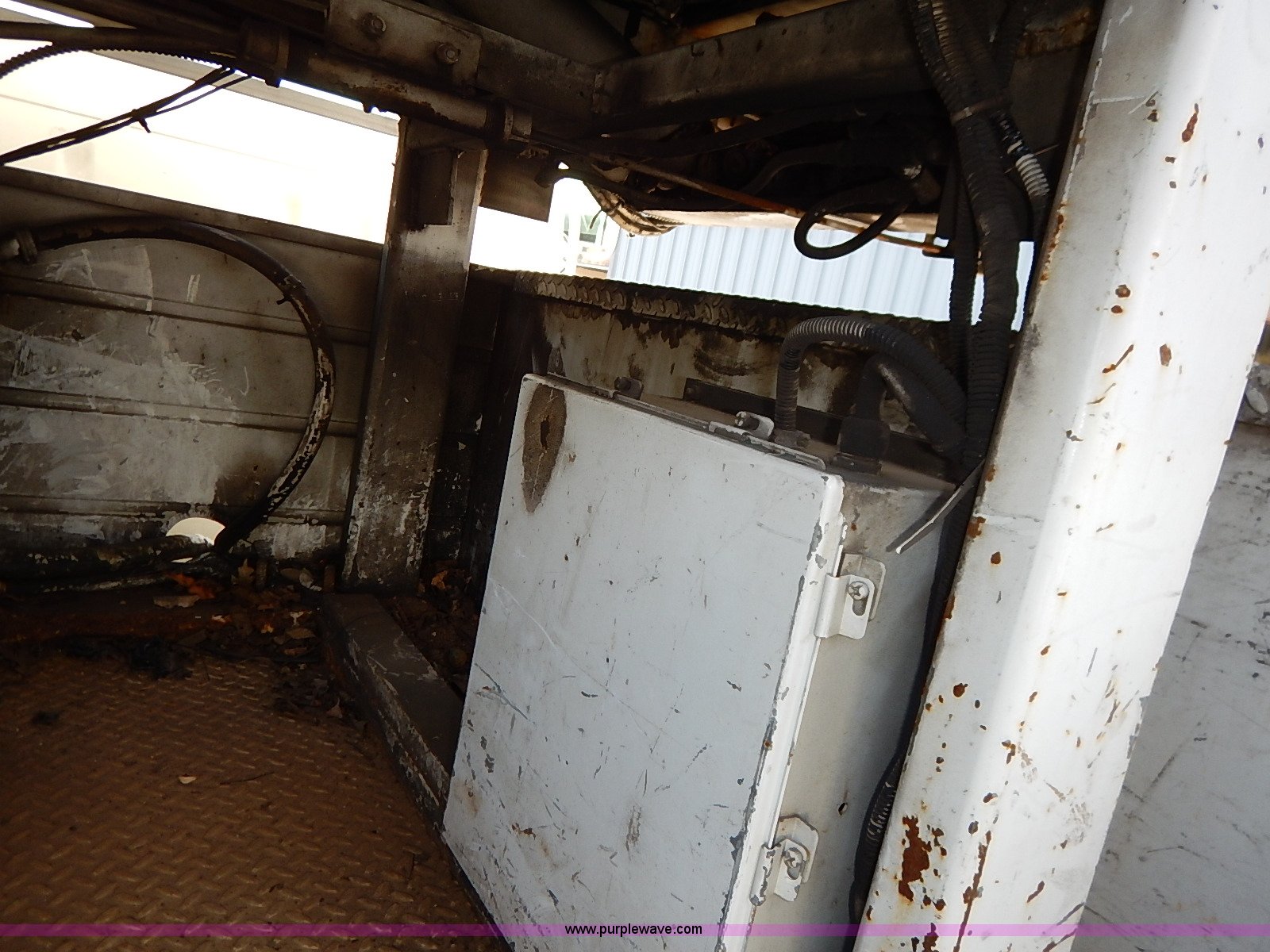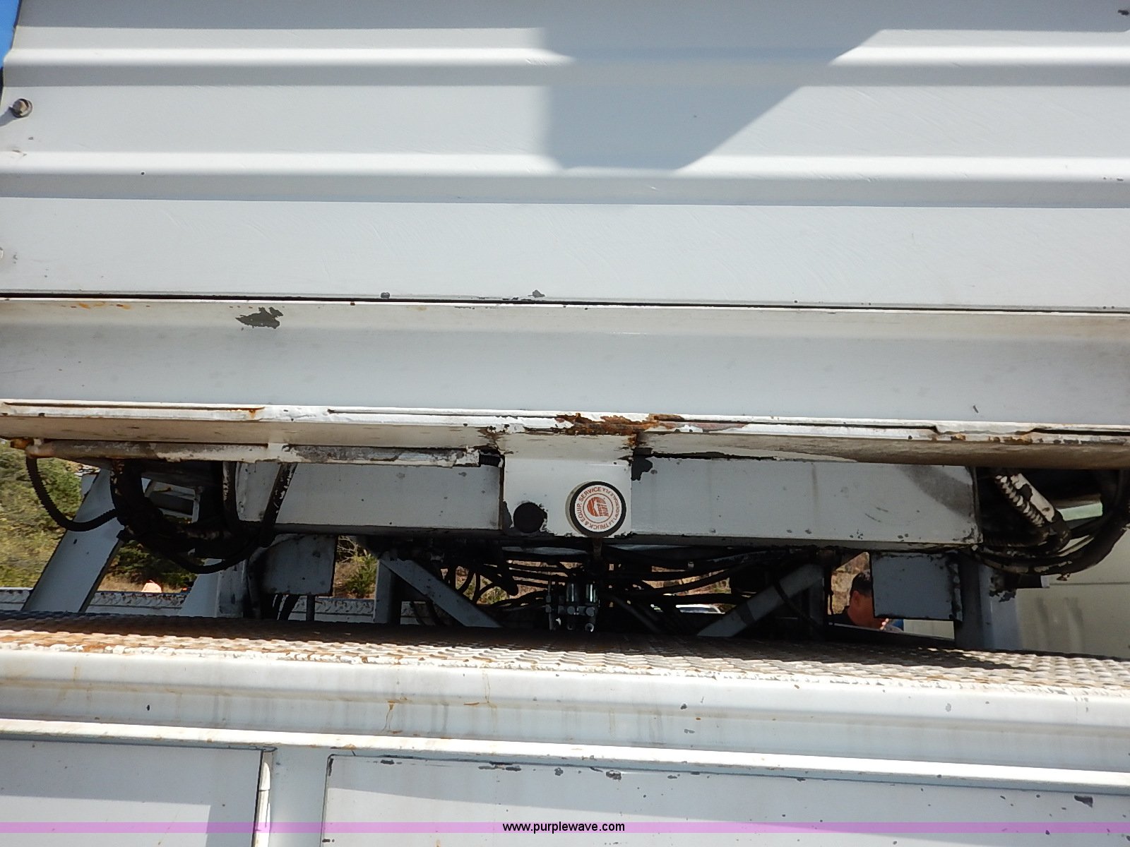 Purple Wave is selling a used Service Truck in Kansas. This item is a 2000 International 4700 scissor lift truck with the following: 93,307 miles on odometer, 7,286 hours on meter, International T444 7.3L diesel engine, 175 HP, Automatic transmission, AC and heat, Cruise, AM/FM, Air suspension seat, Vinyl interior, PTO, Knapheide utility bed, 11'L, Outriggers, Tesco Hi-lift scissor lift, 88"W x 52"D, 550 lbs maximum lift capacity, 28' maximum lift height, Serial 99-11-7177-K-01, 245/70R19.5 tires, ABS light is on, Seat torn