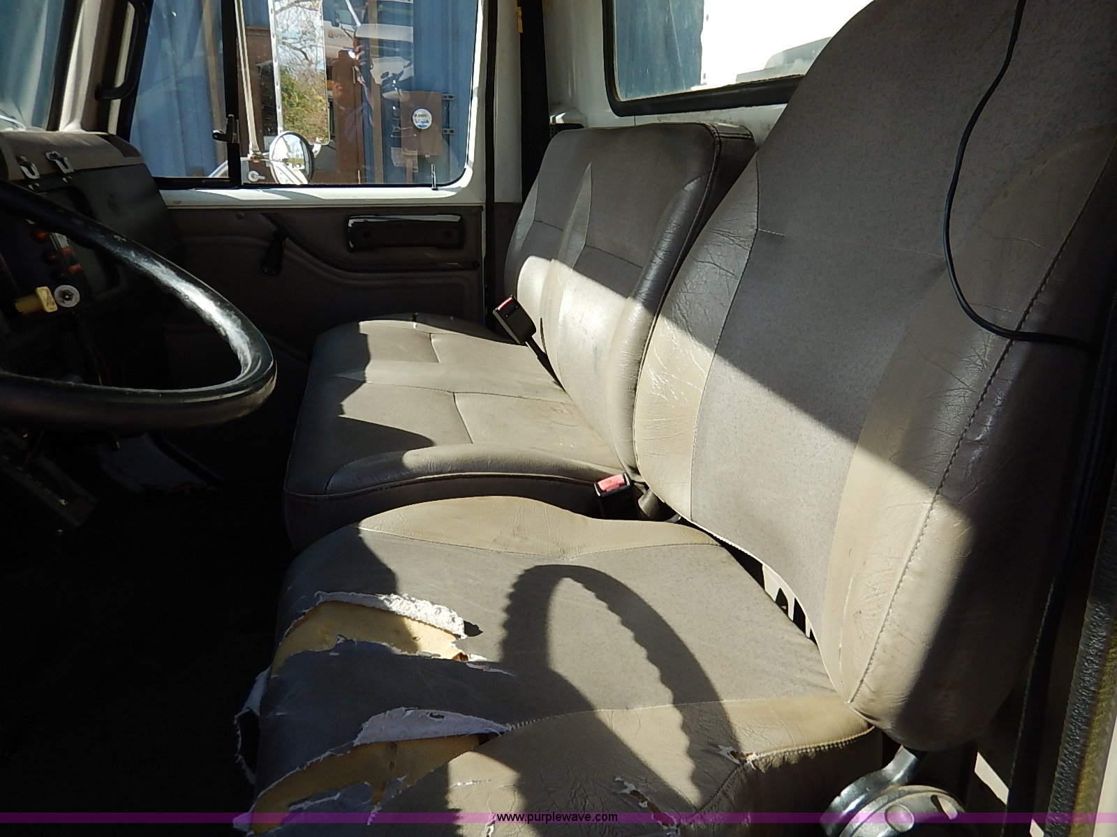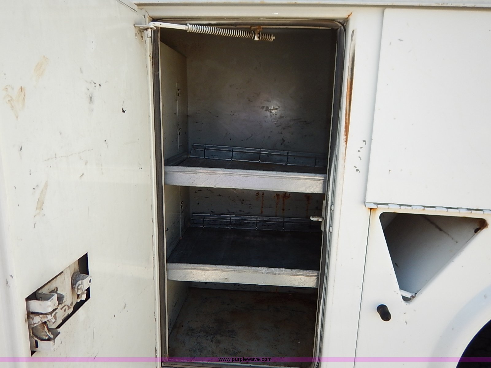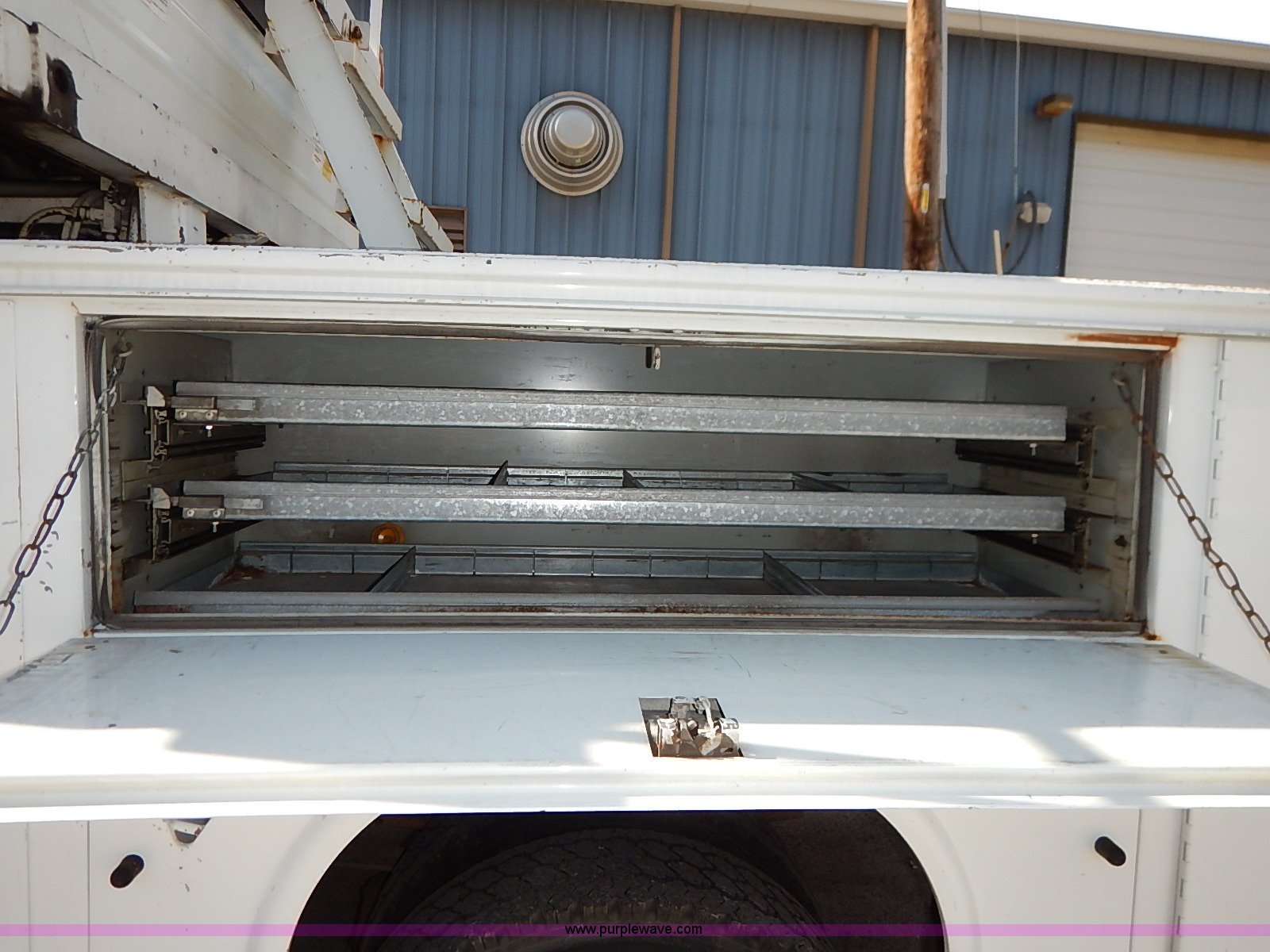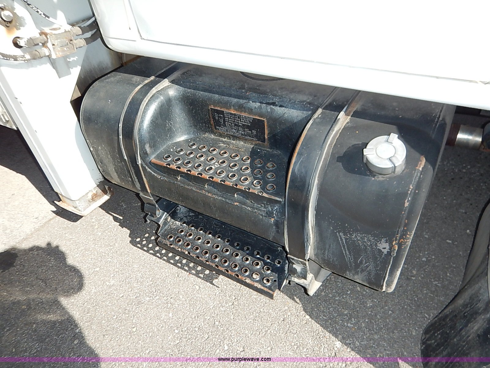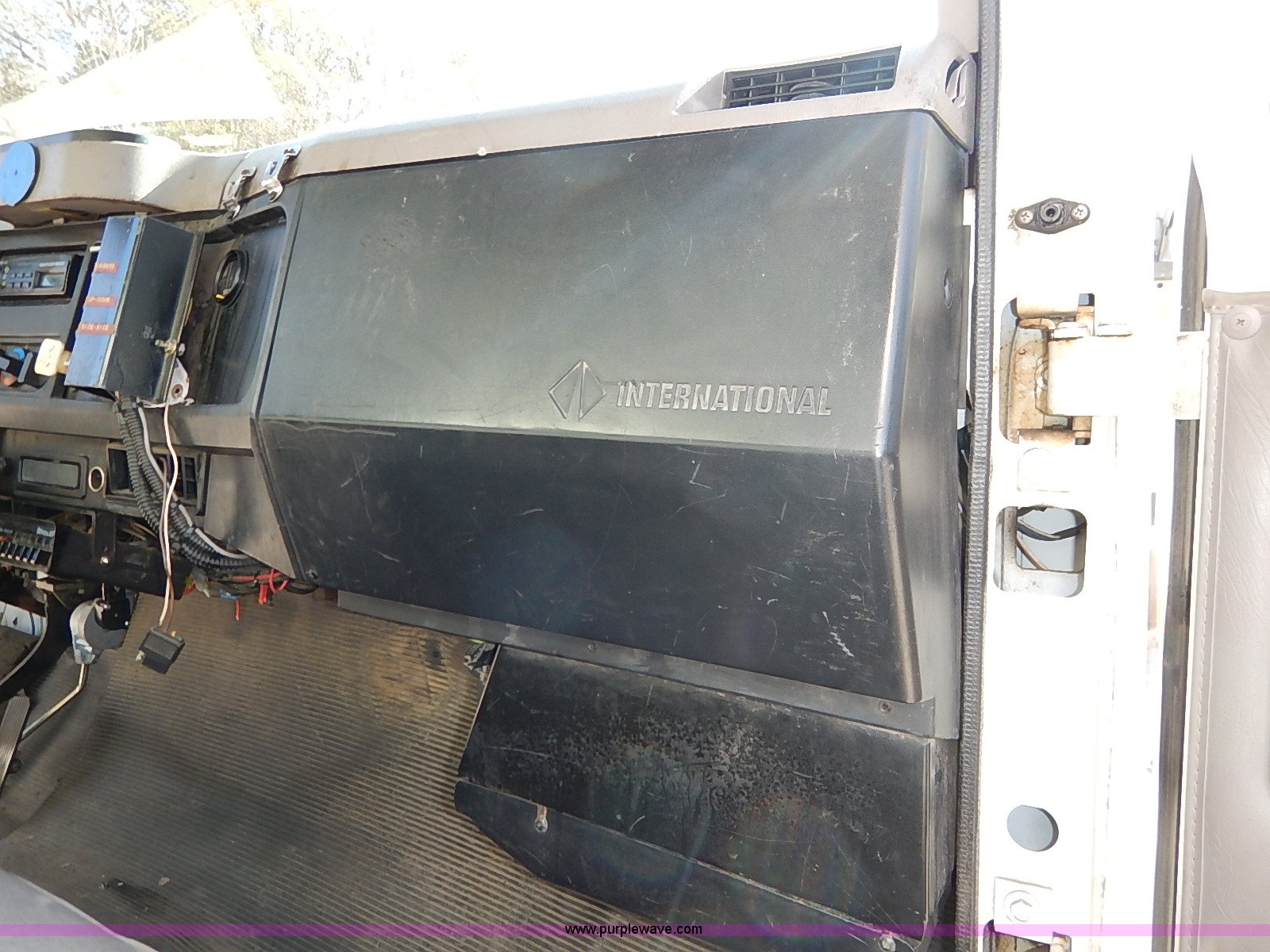 Purple Wave is selling a used Service Truck in Kansas. This item is a 2000 International 4700 scissor lift truck with the following: 93,307 miles on odometer, 7,286 hours on meter, International T444 7.3L diesel engine, 175 HP, Automatic transmission, AC and heat, Cruise, AM/FM, Air suspension seat, Vinyl interior, PTO, Knapheide utility bed, 11'L, Outriggers, Tesco Hi-lift scissor lift, 88"W x 52"D, 550 lbs maximum lift capacity, 28' maximum lift height, Serial 99-11-7177-K-01, 245/70R19.5 tires, ABS light is on, Seat torn