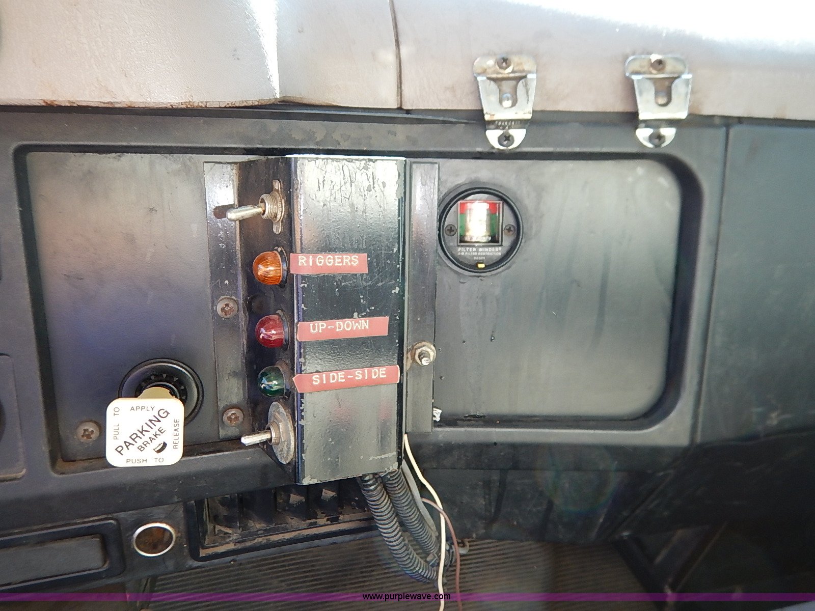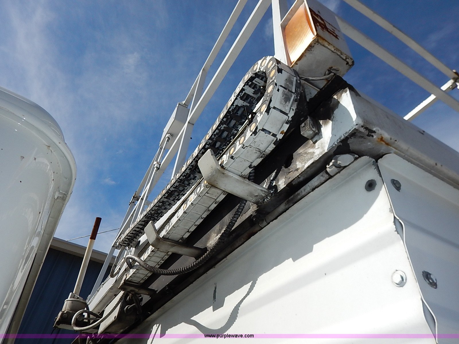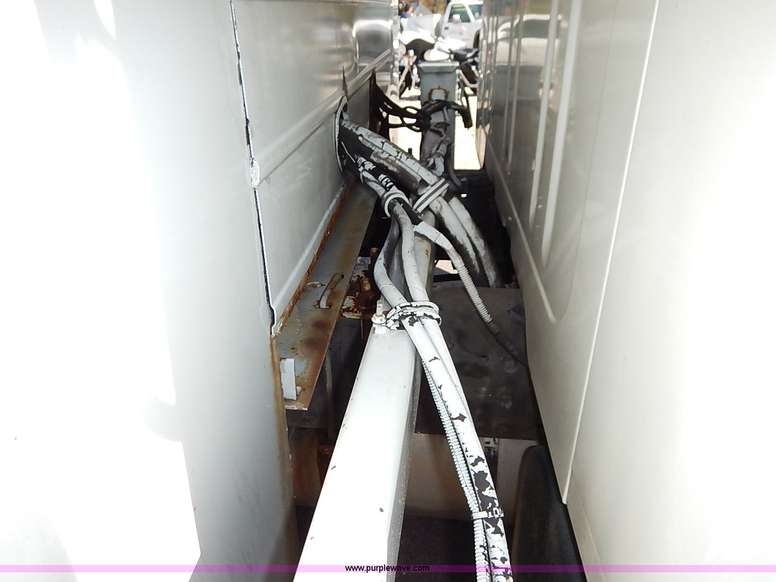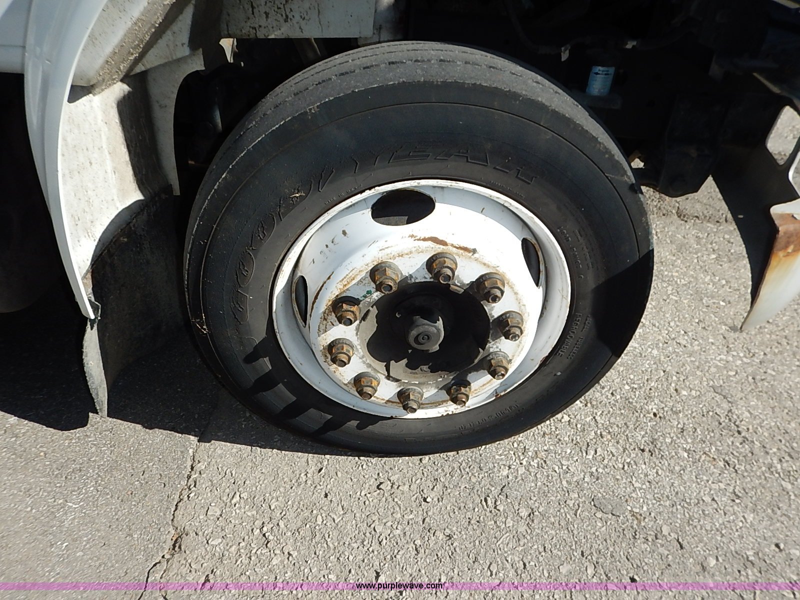 Purple Wave is selling a used Service Truck in Kansas. This item is a 2000 International 4700 scissor lift truck with the following: 93,307 miles on odometer, 7,286 hours on meter, International T444 7.3L diesel engine, 175 HP, Automatic transmission, AC and heat, Cruise, AM/FM, Air suspension seat, Vinyl interior, PTO, Knapheide utility bed, 11'L, Outriggers, Tesco Hi-lift scissor lift, 88"W x 52"D, 550 lbs maximum lift capacity, 28' maximum lift height, Serial 99-11-7177-K-01, 245/70R19.5 tires, ABS light is on, Seat torn