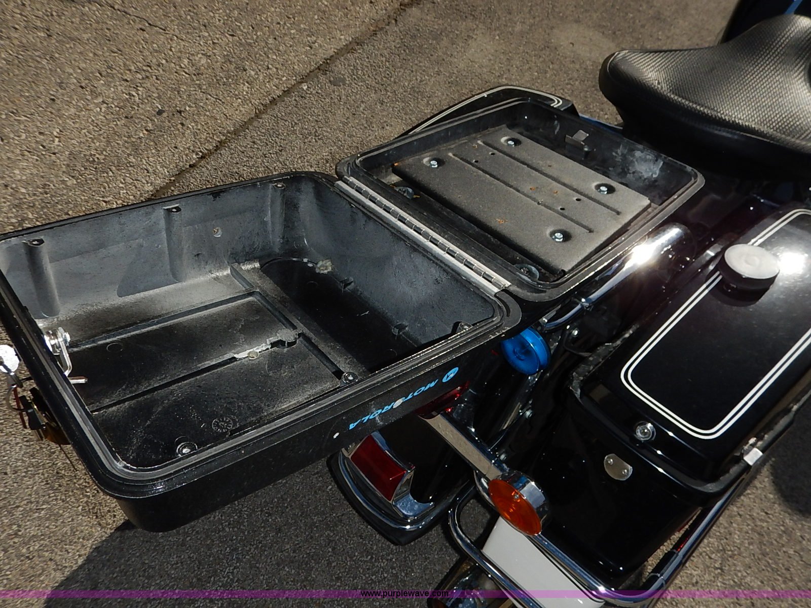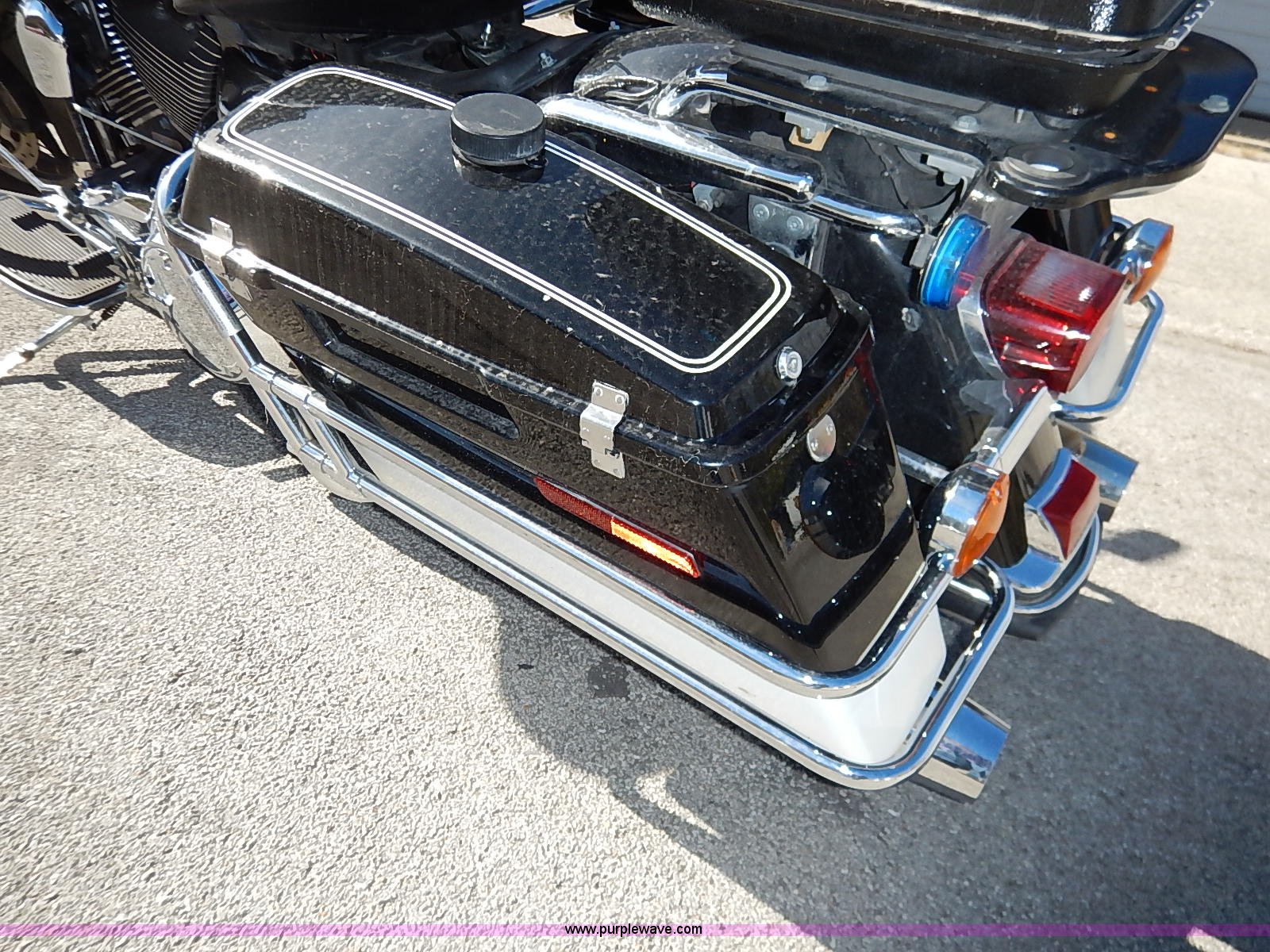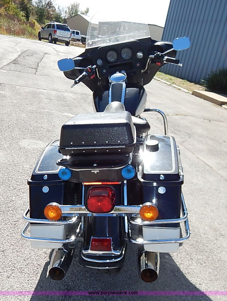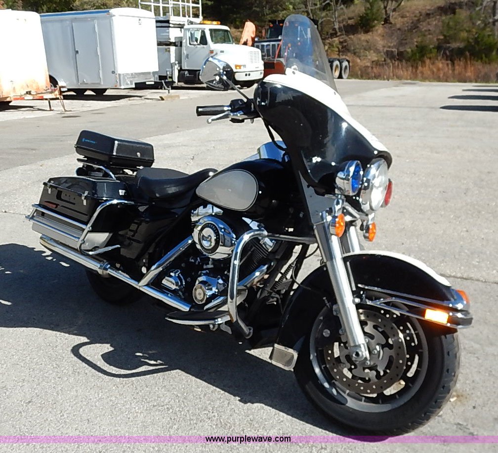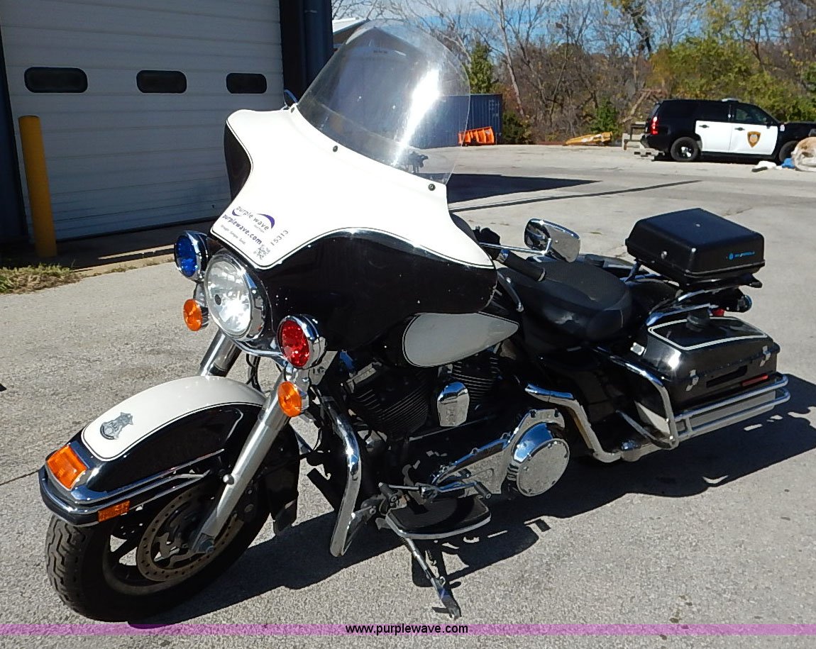 Purple Wave is selling a used Motorcycle in Kansas. This item is a 2008 Harley Davidson FLHTP police motorcycle with the following: 25,064 miles on odometer, 1,688cc gas engine, Six speed transmission, Hard storage container, Windshield, 90B16 front tire, 90R16 rear tire
