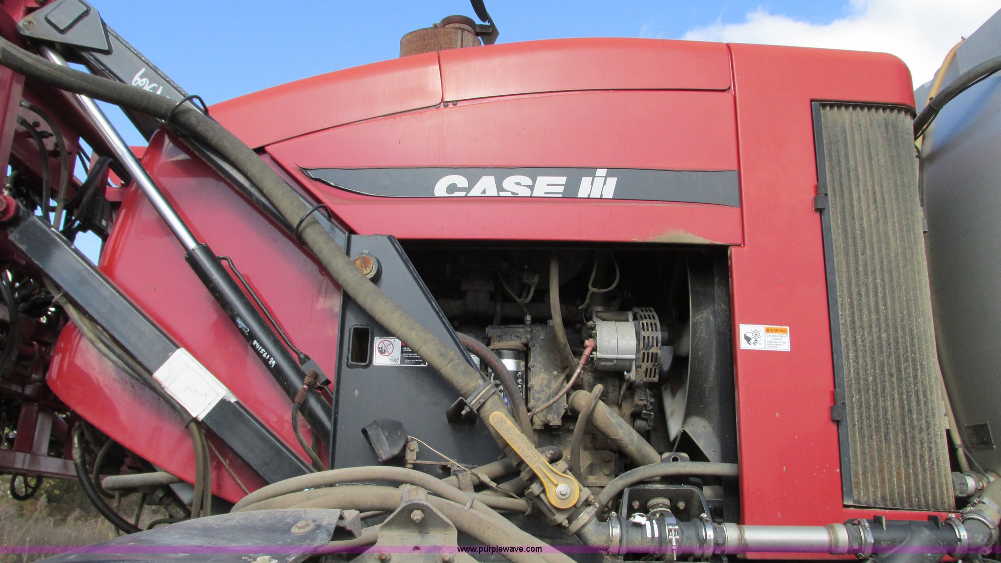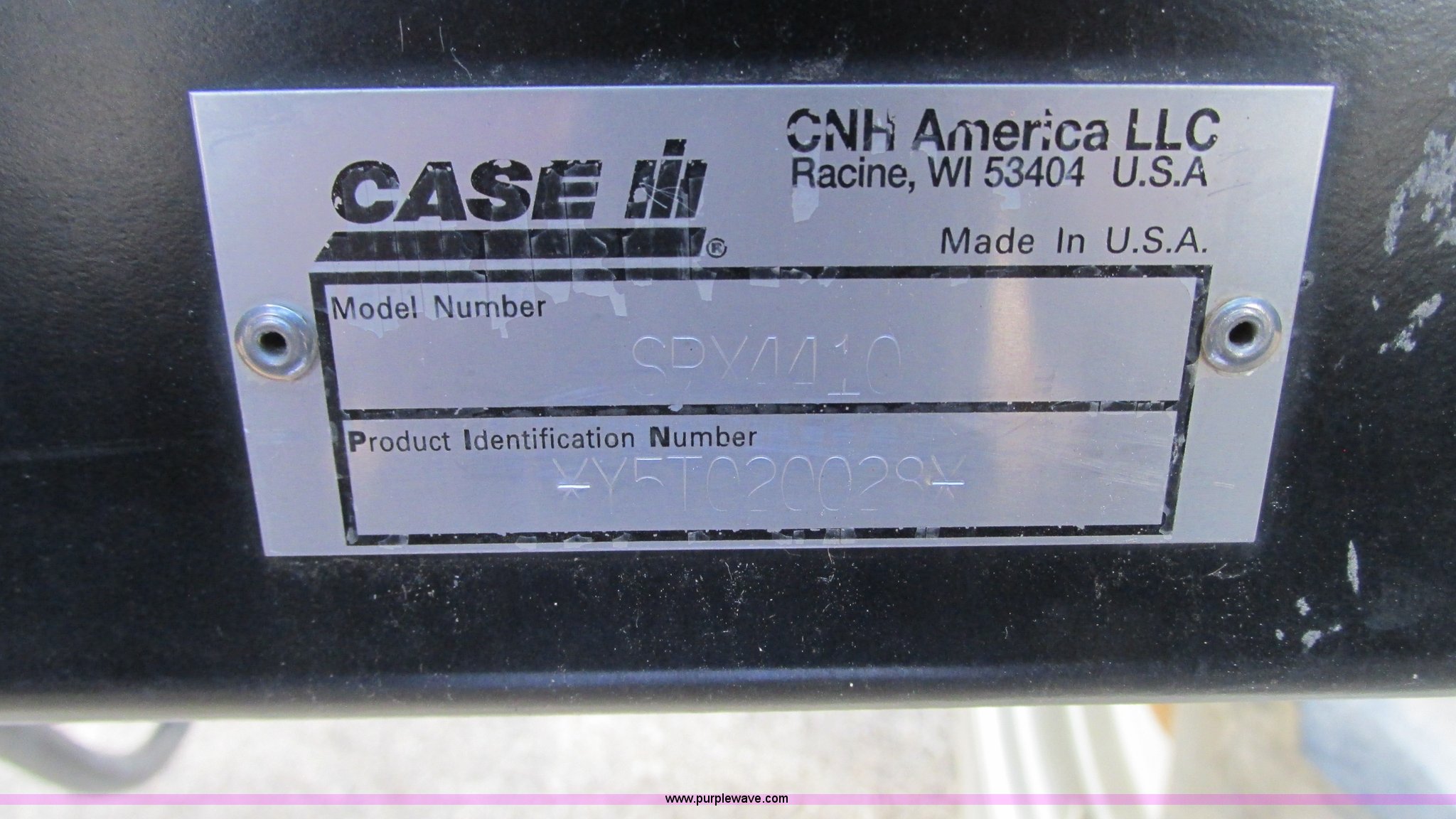 Purple Wave is selling a used Applicator Self Propelled in Illinois. This item is a 2005 Case IH SPX4410 Patriot self-propelled sprayer with the following: 3,493 hours on meter, Case IH 8.3L engine, 280 HP, Hydrostatic transmission, 3F gears, Four wheel drive, 1,200 gallon induction tank, 70 gallon rinse tank, Aim Command spray control system, 55 gallon foam marker tank, Chemical eductor, 90' to 132' boom, (5) boom sections, 20" nozzle spacing, Capstan Ag nozzle bodies, Hydraulic boom fold, Hydraulic height adjustment, Phoenix telescoping aluminum boom system, AC and heat, AM/FM/CD, Spring suspension seat, Raven GPS, Raven light bar, Manuals, 140 gallon fuel tank, 150" wheelbase, Spring/shock suspension, 280/90R46 tires, 25,080 lbs. base operating weight, Serial Y5T020028