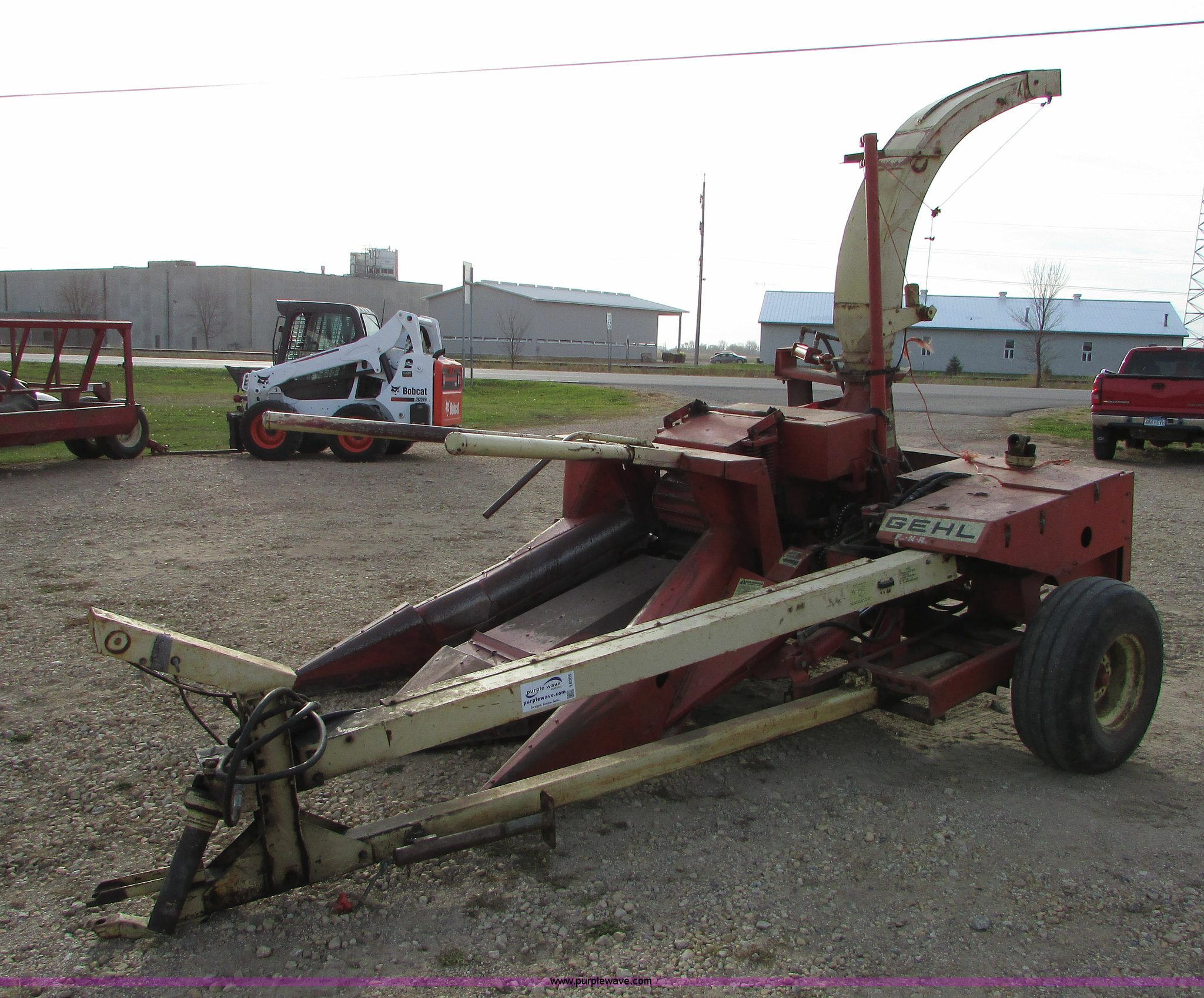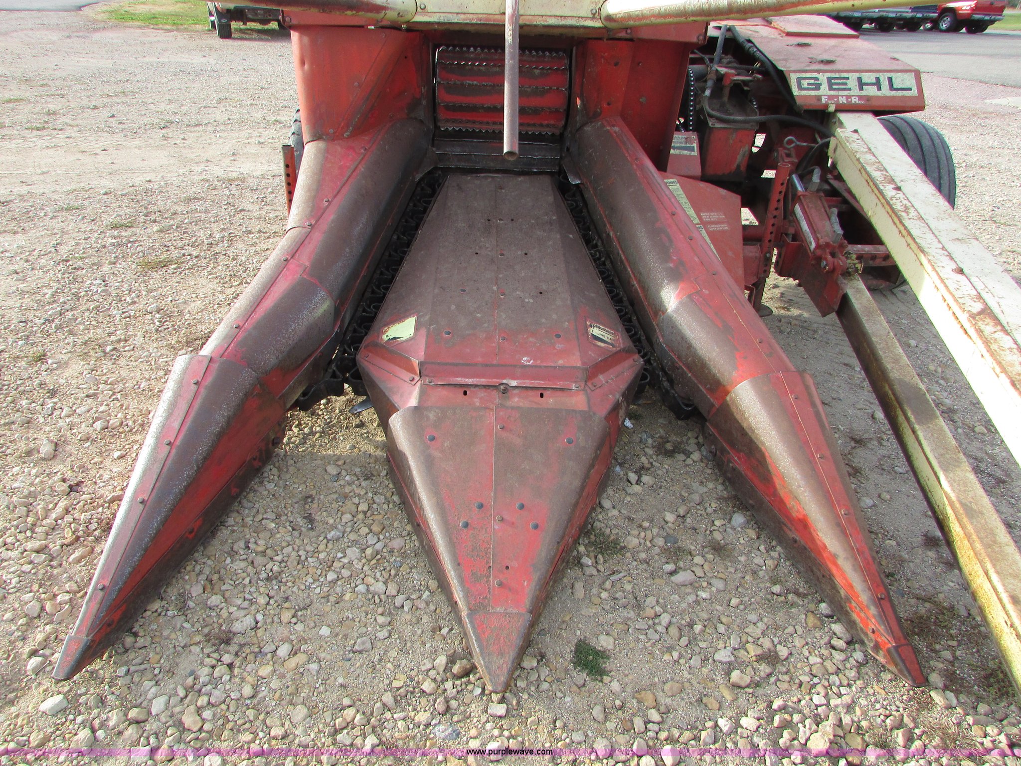 Purple Wave is selling a used Corn or Row Head in Minnesota. This item is a Gehl C13 two row corn chopper with the following: 1000 PTO, Two row corn head, Model TR3038, Serial 6558, Chopper, Model HS781, Serial 1666, Hydraulic spout adjustment, Hydraulic height head adjustment, Rear pin hitch, Pin hitch, Jack stand, 12R15LT tires, 12.5L-15 tires, Cosmetic damage, Serial 3741