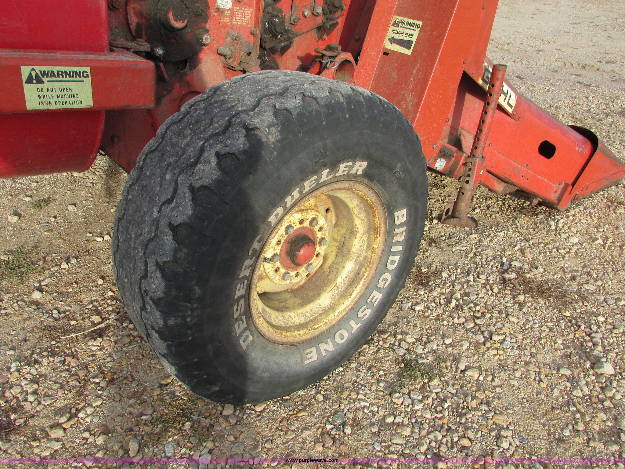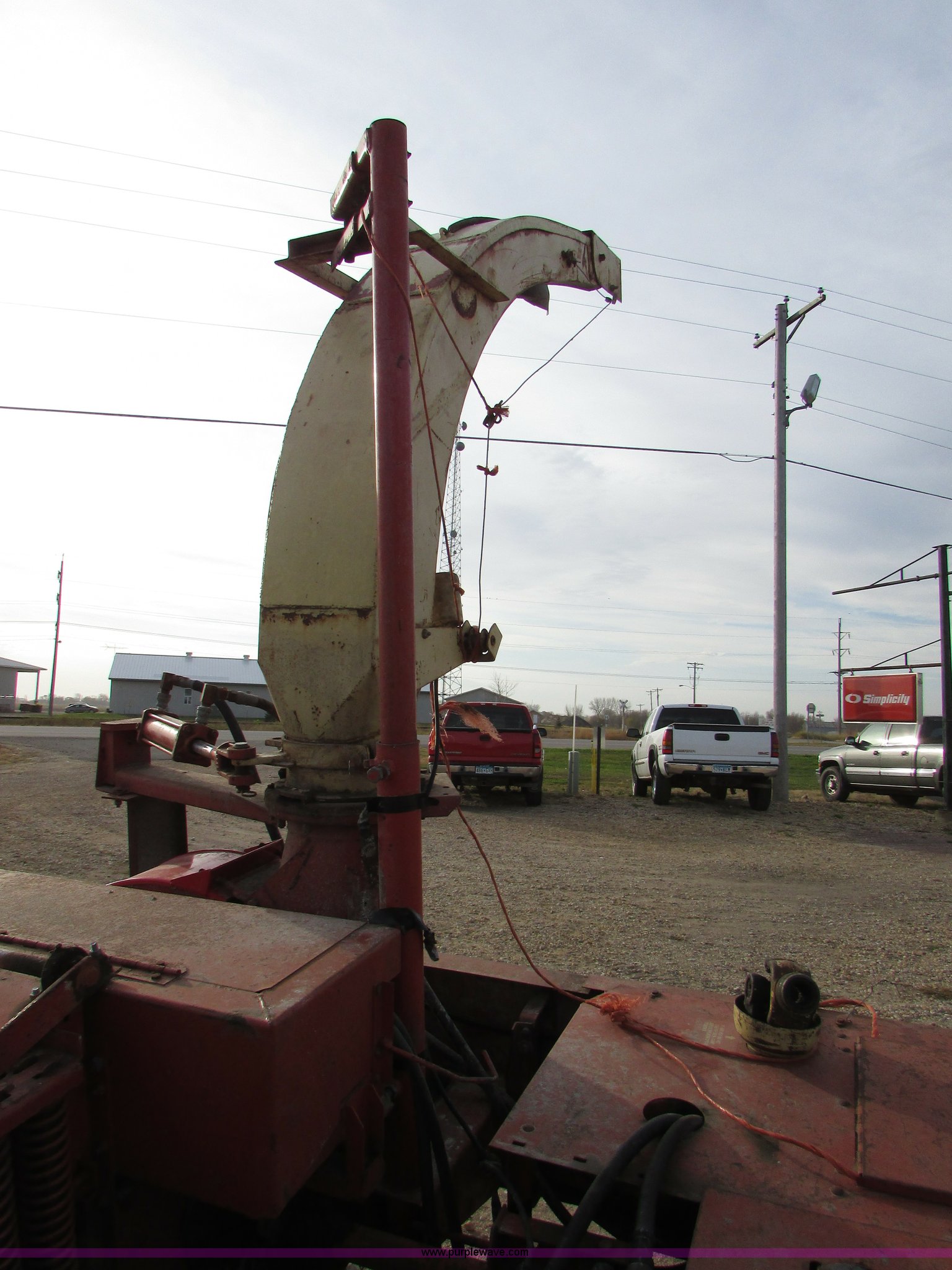 Gehl C13 two row corn chopper. 1000 PTO, Two row corn head Model TR3038, Serial 6558, Chopper Model HS781, Serial 1666, Hydraulic spout adjustment, Hydraulic height head adjustment, Rear pin hitch, Pin hitch, Jack stand, 12R15LT tires, 12.5L-15 tires, Cosmetic damage, Serial 3741. 230 E Jefferson. Gaylord, MN 55334