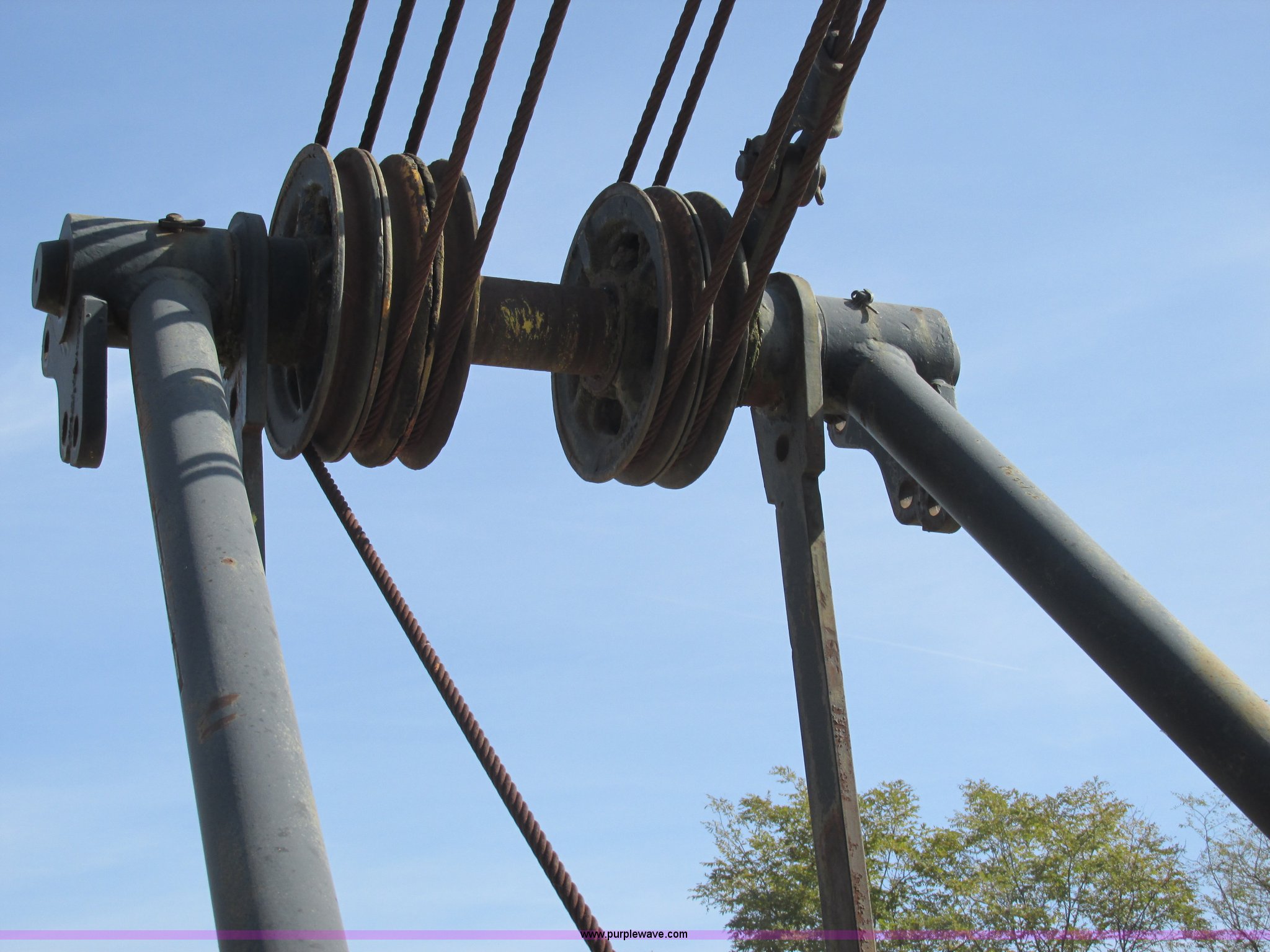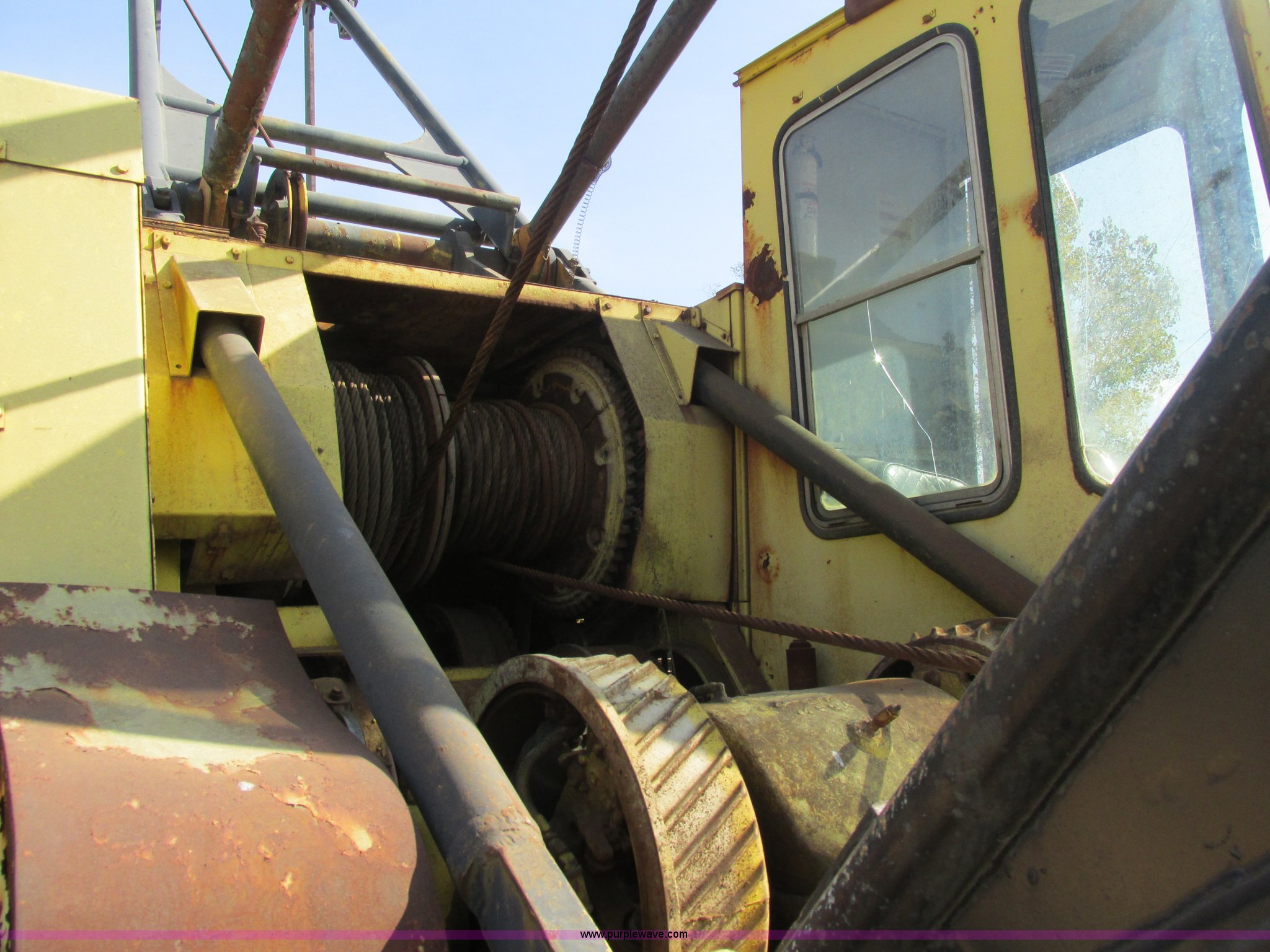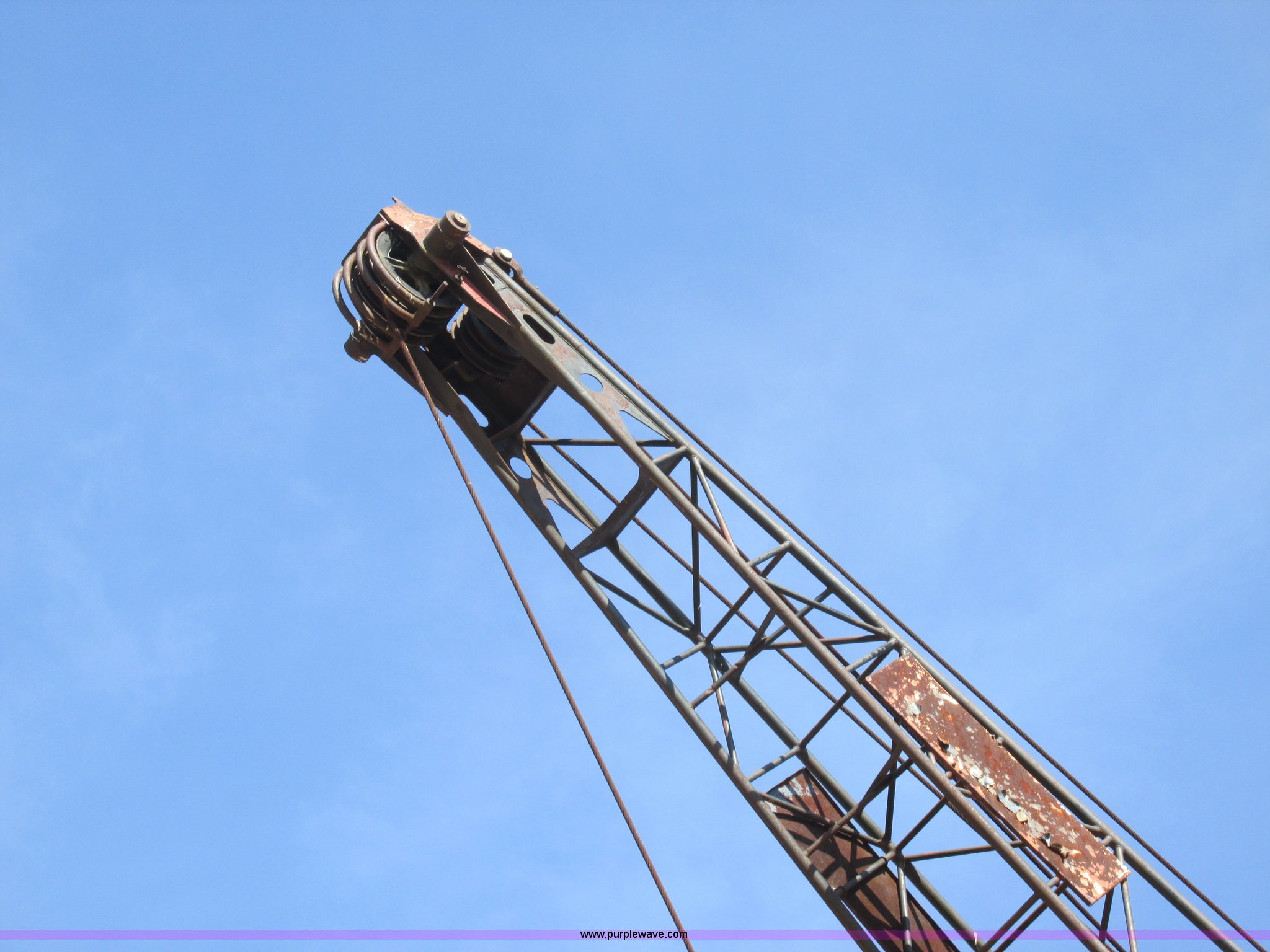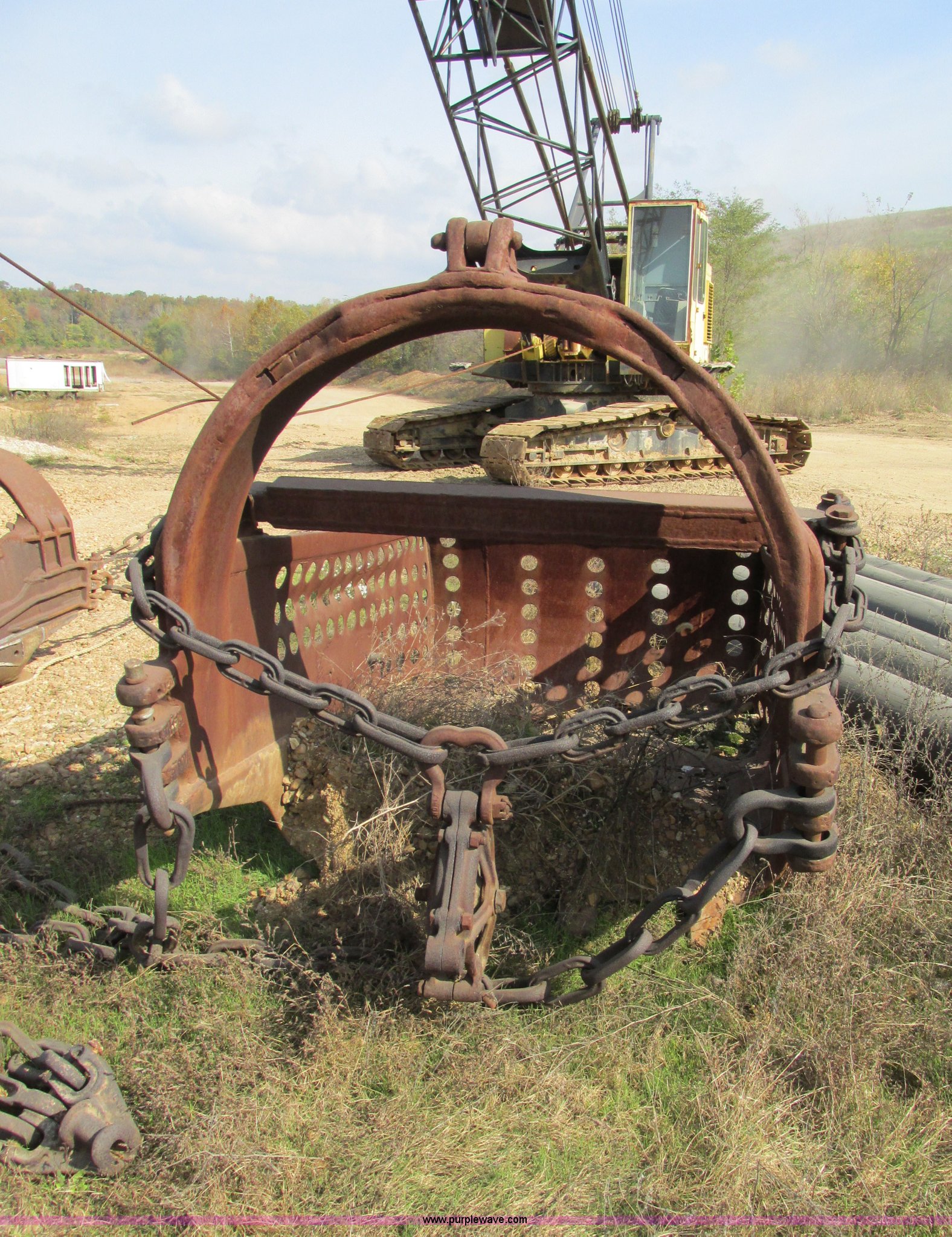 Purple Wave is selling a used Crawler Crane in Missouri. This item is a Lima 45-SC crane with the following: Caterpillar 333 six cylinder diesel engine, 45 ton capacity, 80' tube boom, Double drum winch, Page Automatic rock drag line bucket, 1.5 cubic yard capacity, Pulleys and chains, (4) shanks, (3) teeth, 91"L x 63"W x 32"H side wall, 56" from rear to cutting edge, Serial 63593, Hendrix sand and gravel drag line bucket, Two cubic yard capacity, Chains and pulley, Four teeth/shanks, 7'L x 56"W x 32"D, Serial 6360, Hendrix 3/4T/S drag line bucket, 3/4 cubic yard capacity, 5'L x 40"W x 24"D, 50 ton four line lifting block, 200 lbs cast hook block, Swing brake and lock, Battery cut off switch, Detachable counter weight, Nine bottom rollers, Two top carriers, 37"W smooth track pads, Tracks will manually collapse for transport width reduction, Hydraulic cylinder included for collapse, Interior/exterior cosmetic damage, Clutch air cylinder needs rebuilt, Serial 3543-17