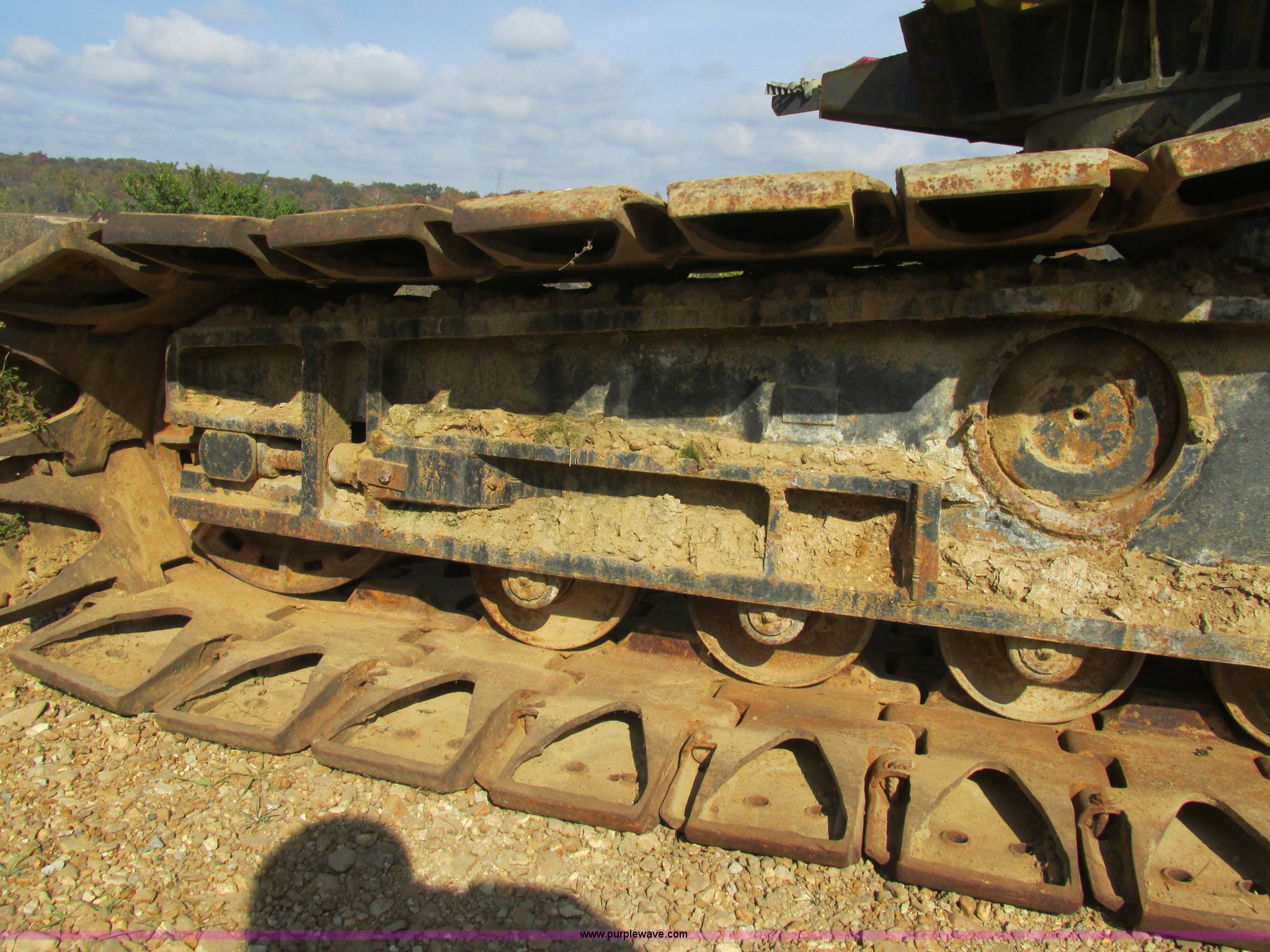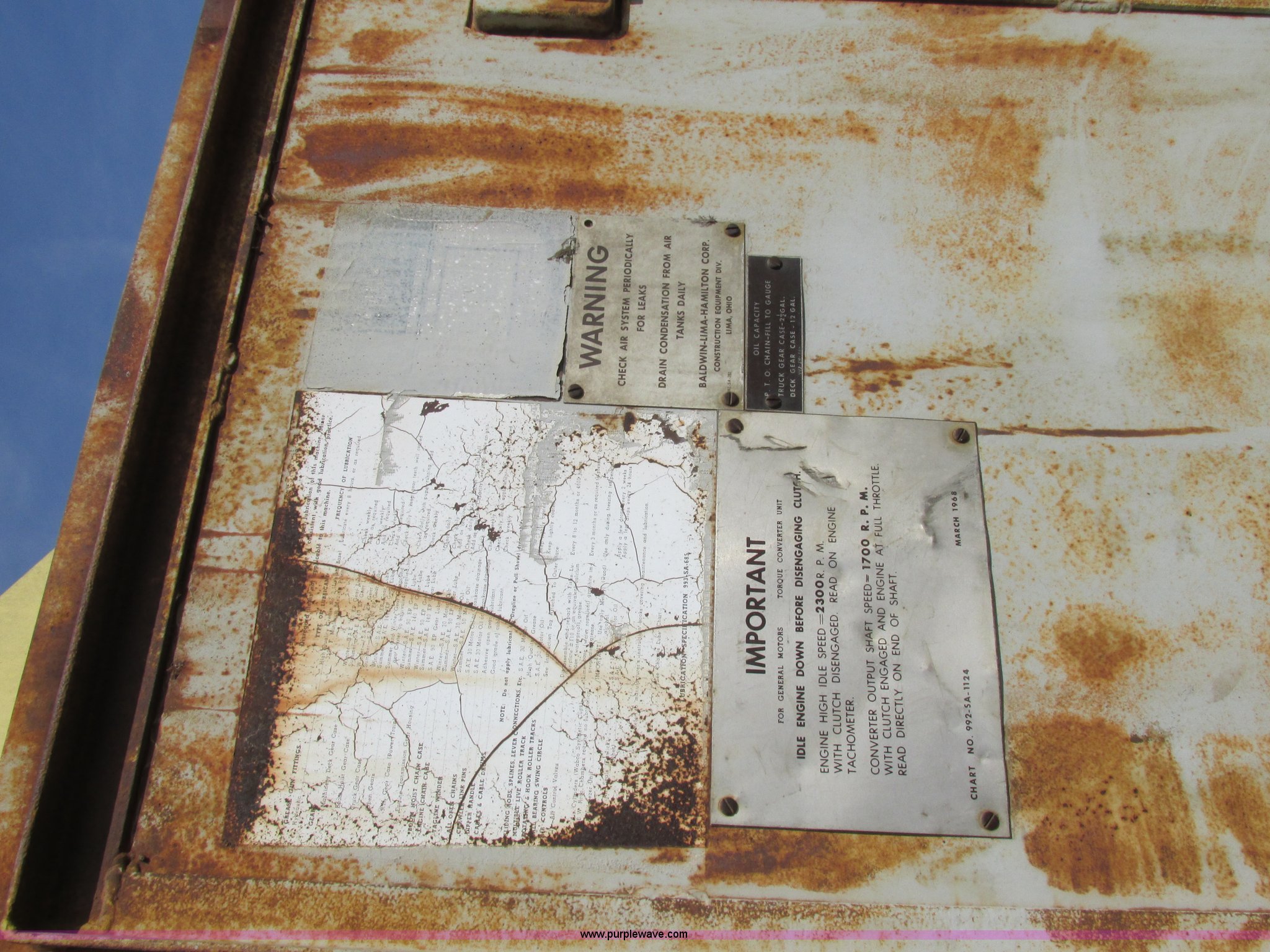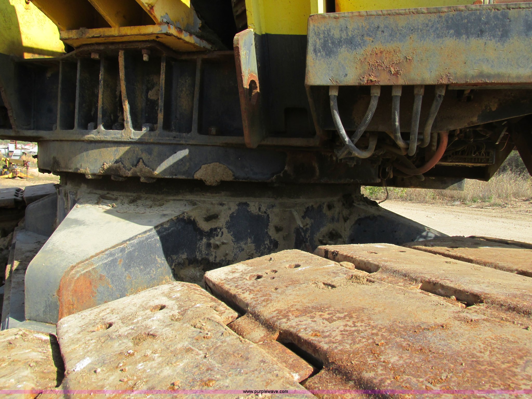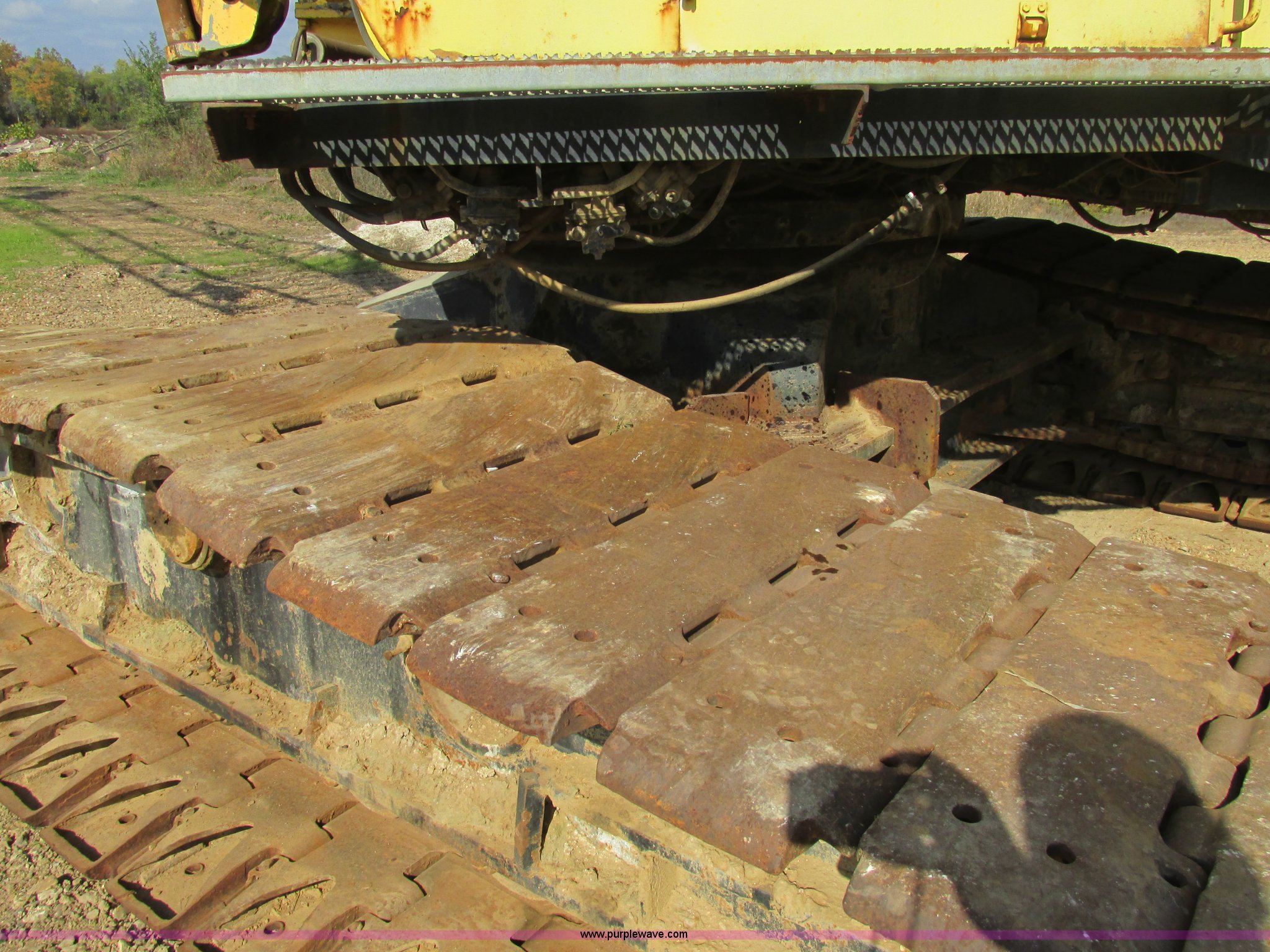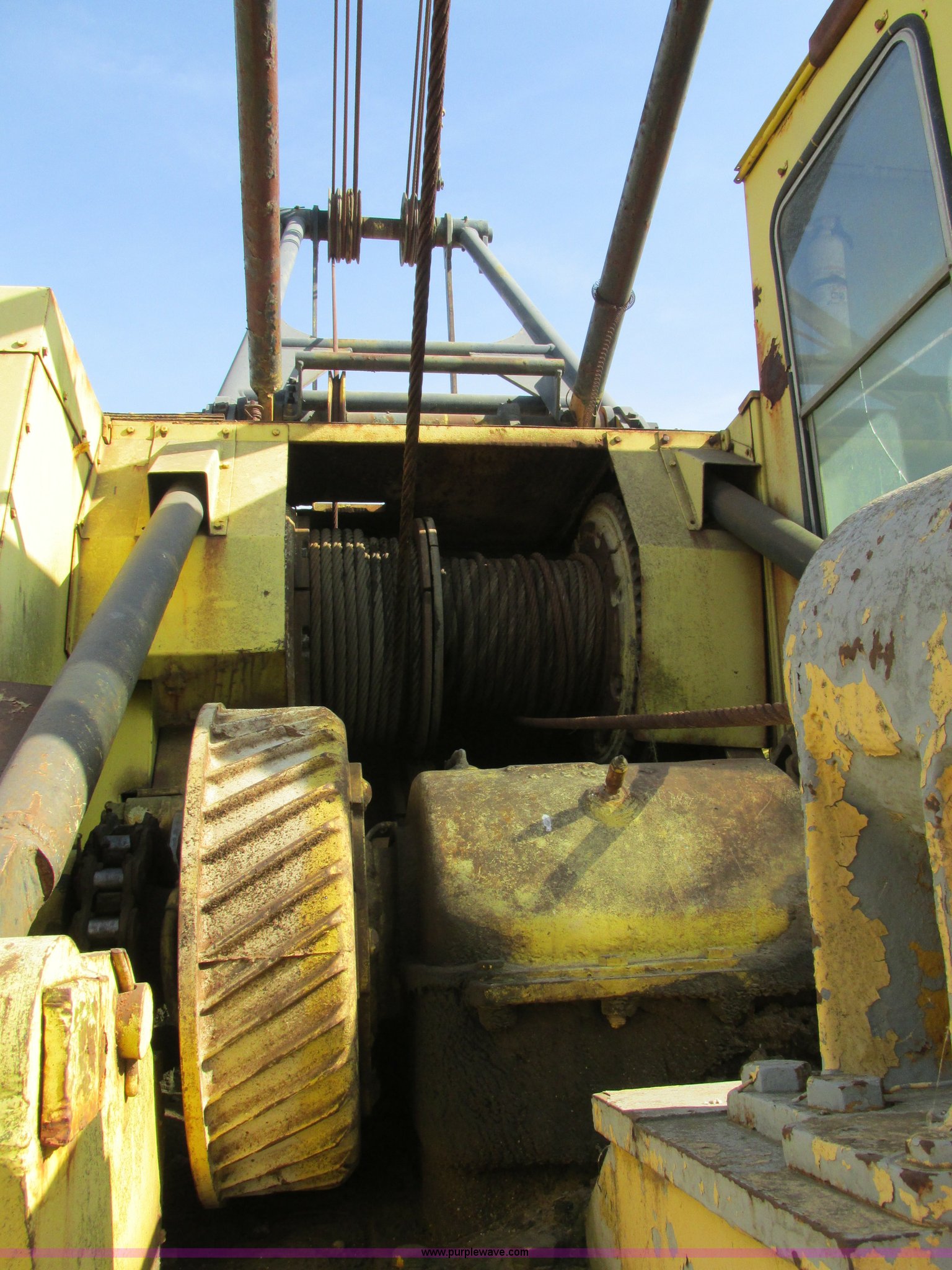 Purple Wave is selling a used Crawler Crane in Missouri. This item is a Lima 45-SC crane with the following: Caterpillar 333 six cylinder diesel engine, 45 ton capacity, 80' tube boom, Double drum winch, Page Automatic rock drag line bucket, 1.5 cubic yard capacity, Pulleys and chains, (4) shanks, (3) teeth, 91"L x 63"W x 32"H side wall, 56" from rear to cutting edge, Serial 63593, Hendrix sand and gravel drag line bucket, Two cubic yard capacity, Chains and pulley, Four teeth/shanks, 7'L x 56"W x 32"D, Serial 6360, Hendrix 3/4T/S drag line bucket, 3/4 cubic yard capacity, 5'L x 40"W x 24"D, 50 ton four line lifting block, 200 lbs cast hook block, Swing brake and lock, Battery cut off switch, Detachable counter weight, Nine bottom rollers, Two top carriers, 37"W smooth track pads, Tracks will manually collapse for transport width reduction, Hydraulic cylinder included for collapse, Interior/exterior cosmetic damage, Clutch air cylinder needs rebuilt, Serial 3543-17