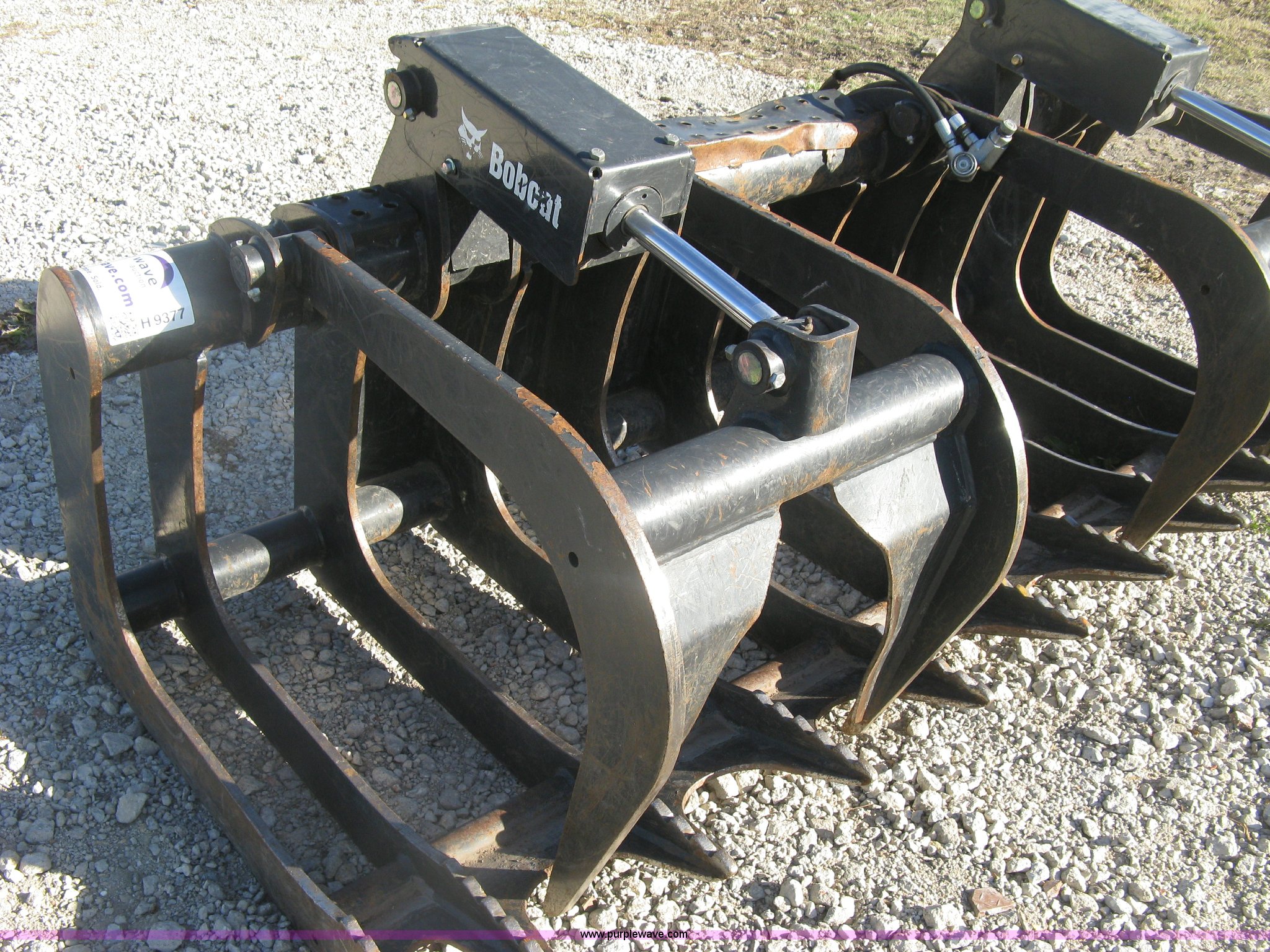 Purple Wave is selling a used Skid Steer Attach. in Kansas. This item is a 2009 Bobcat root grapple bucket with the following: 82"W, Dual hydraulic grapples, Skeleton body, Universal quick attach, Serial AF0N00225