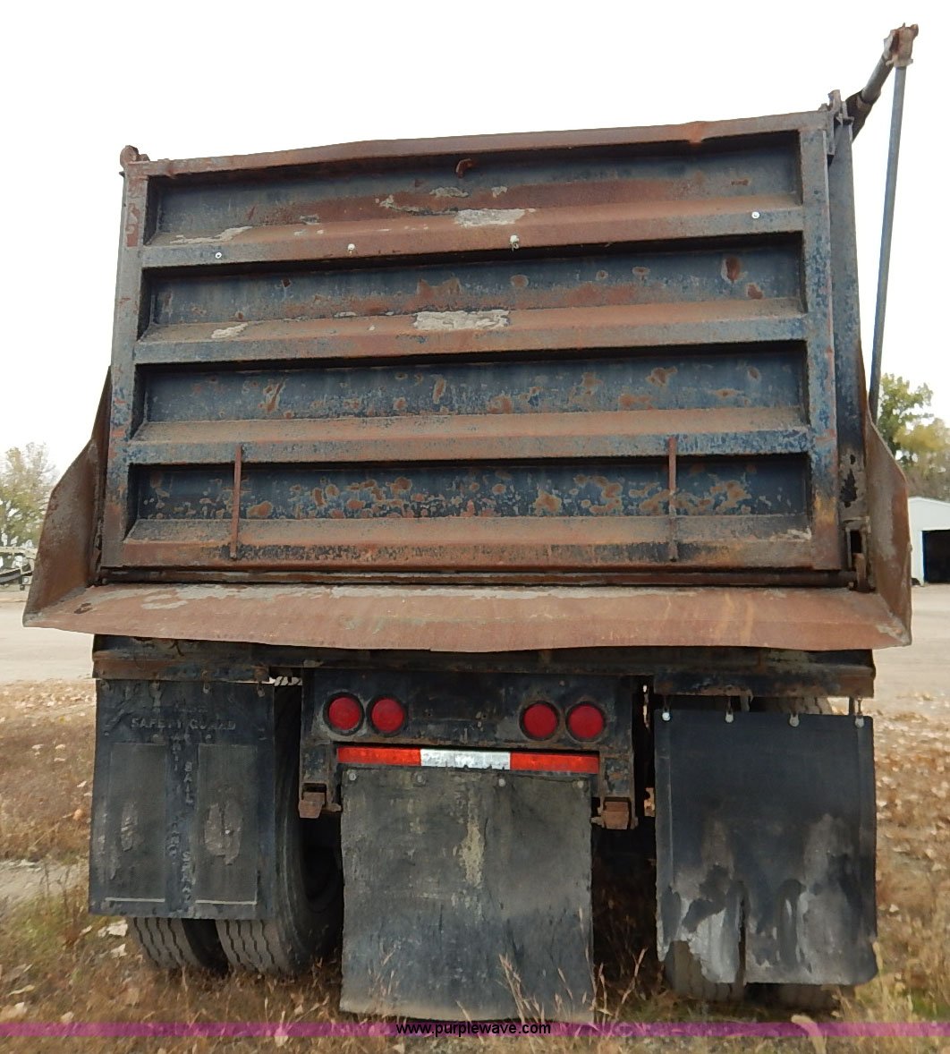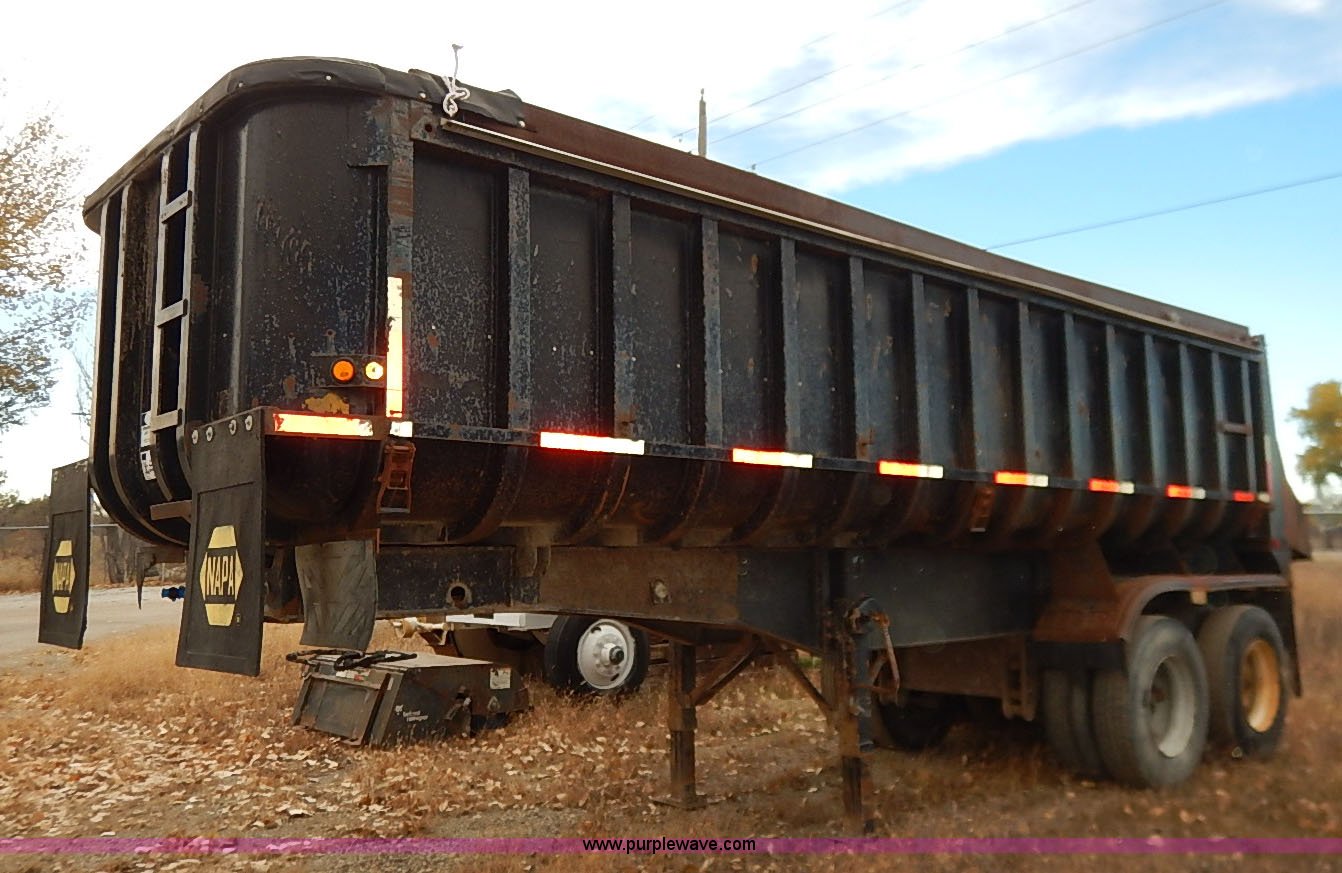 Purple Wave is selling a used End Dump Rock Trailer in Kansas. This item is a 1986 Fruehauf ND1-F2-22-7DB5-24 dump trailer with the following: 24'L x 8'W, Hot asphalt bed liner, Side ratchets, Manual roll-over tarp, Air operated end gate, Spring suspension, Air brakes, 11R22.5 tires, GVWR 19,000 lbs